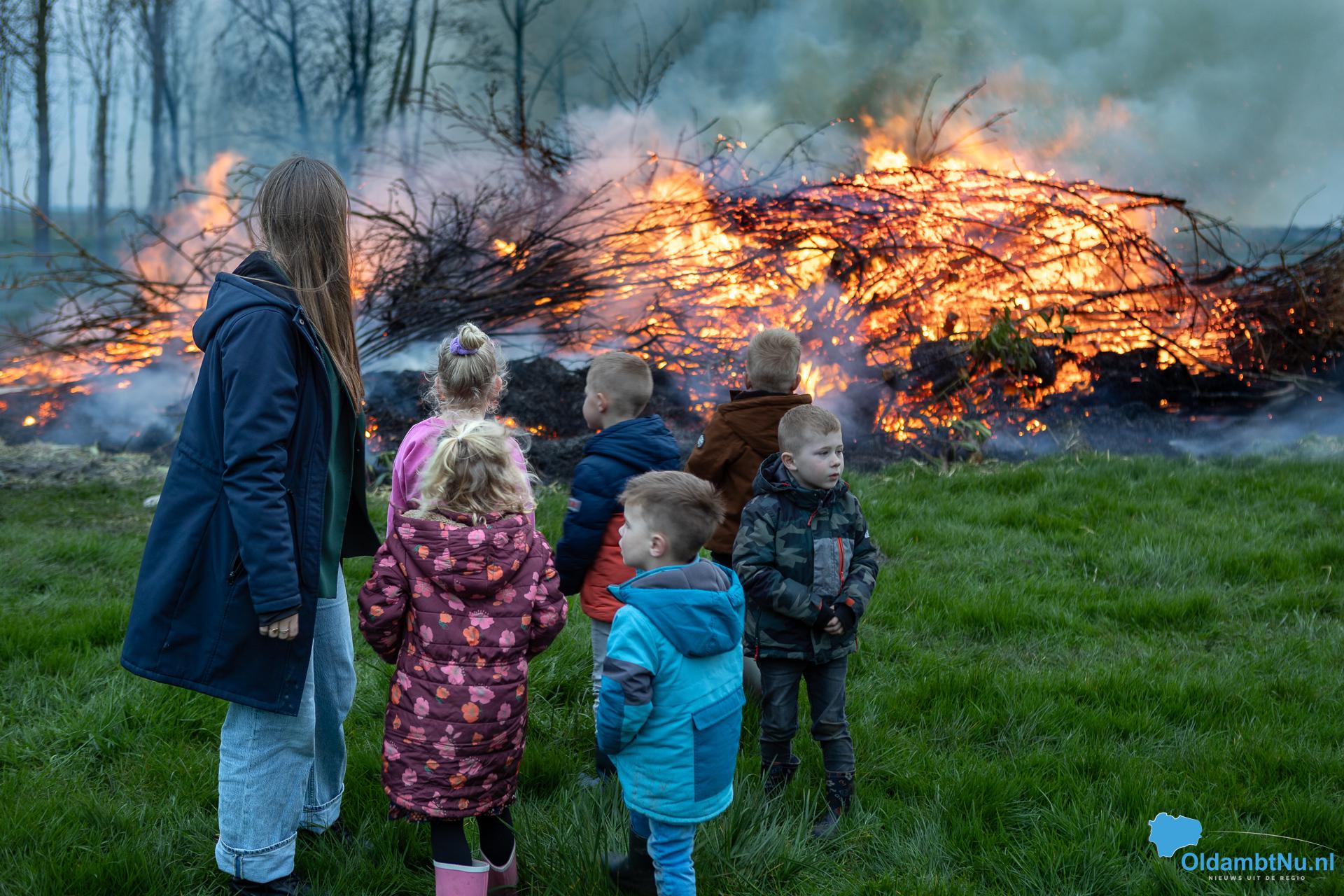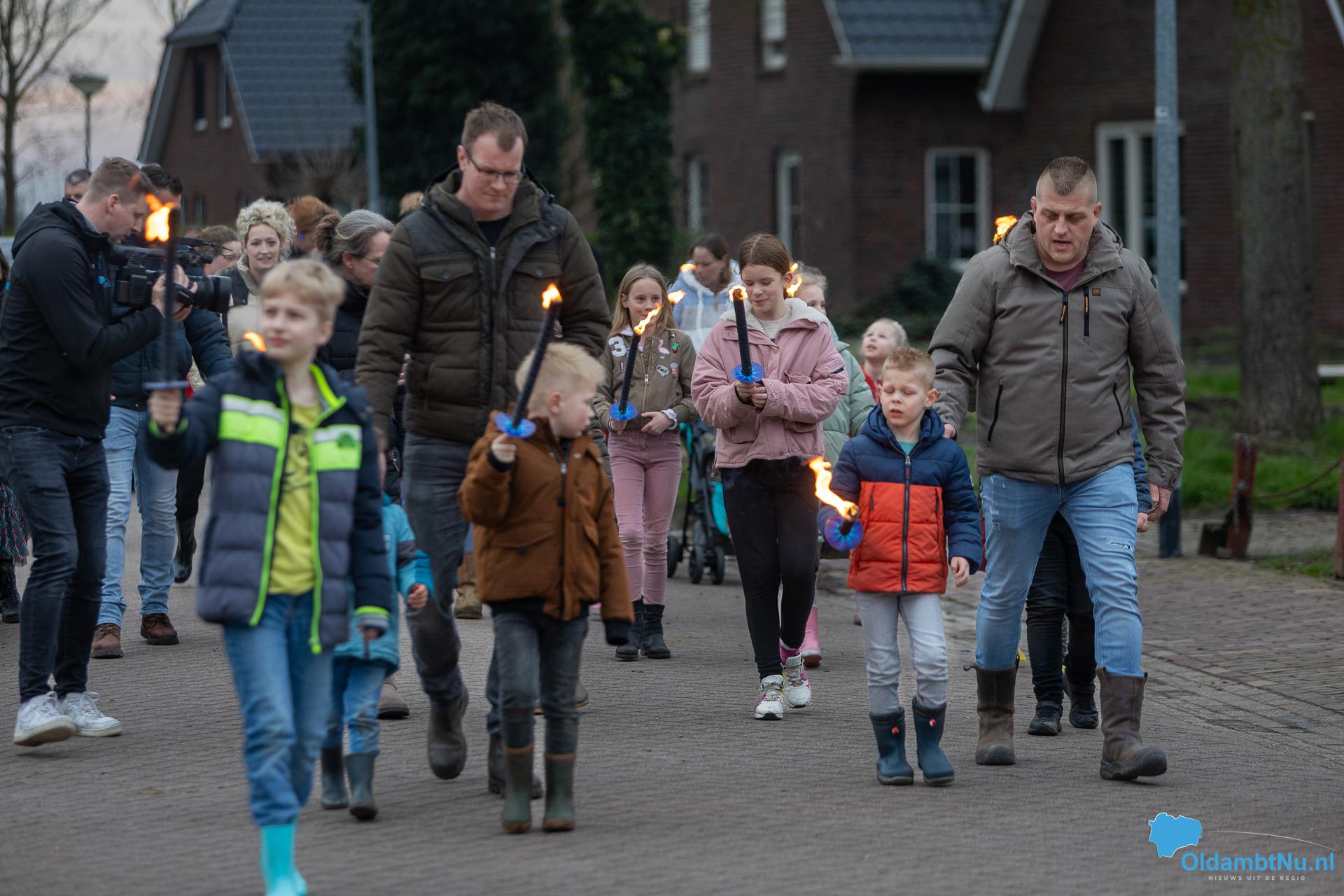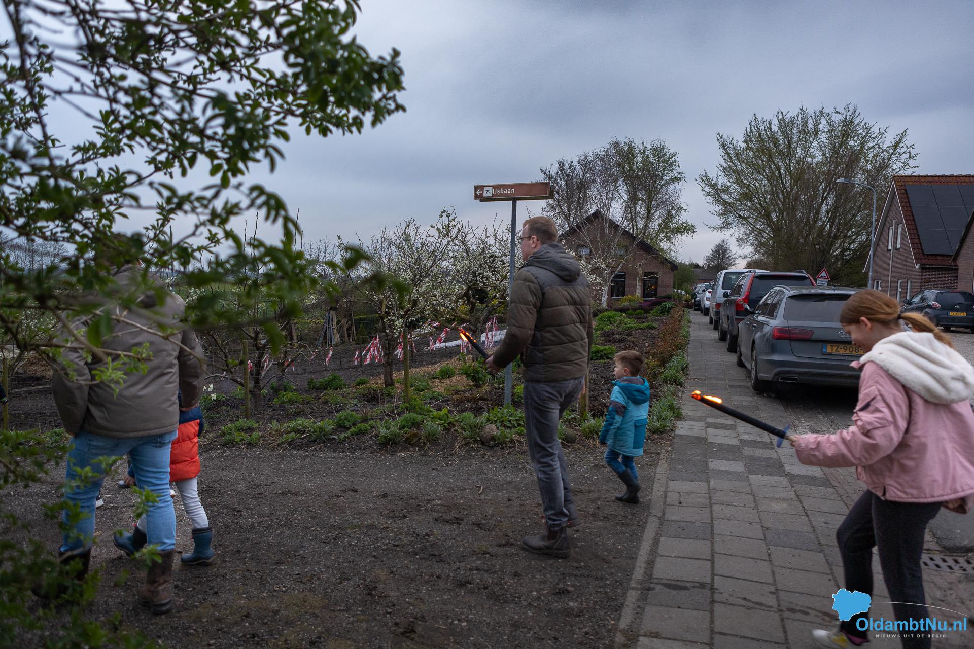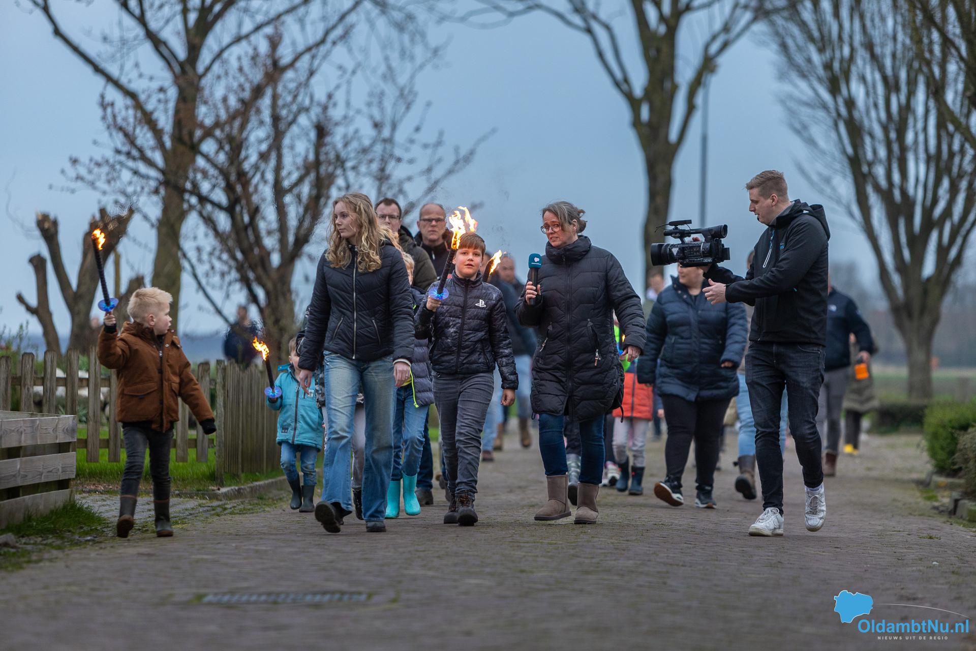 Drieborg – De traditie van een paasvuur was dit jaar in één dorp in het Oldambt, dat was in Drieborg. Bij het invallen van de schemering trok een stoet van kinderen vanaf het schoolplein door Drieborg met brandende fakkels. Het eindpunt was een paasbult op het ijsbaanterrein.