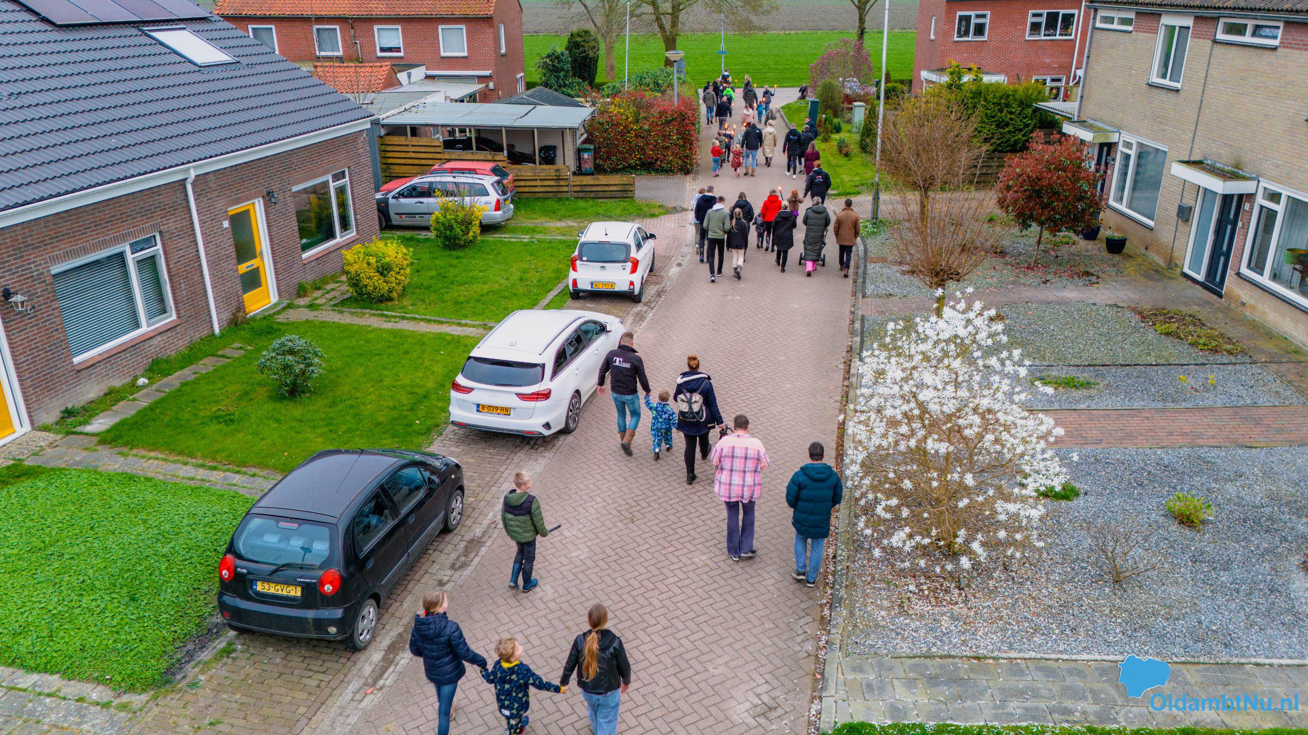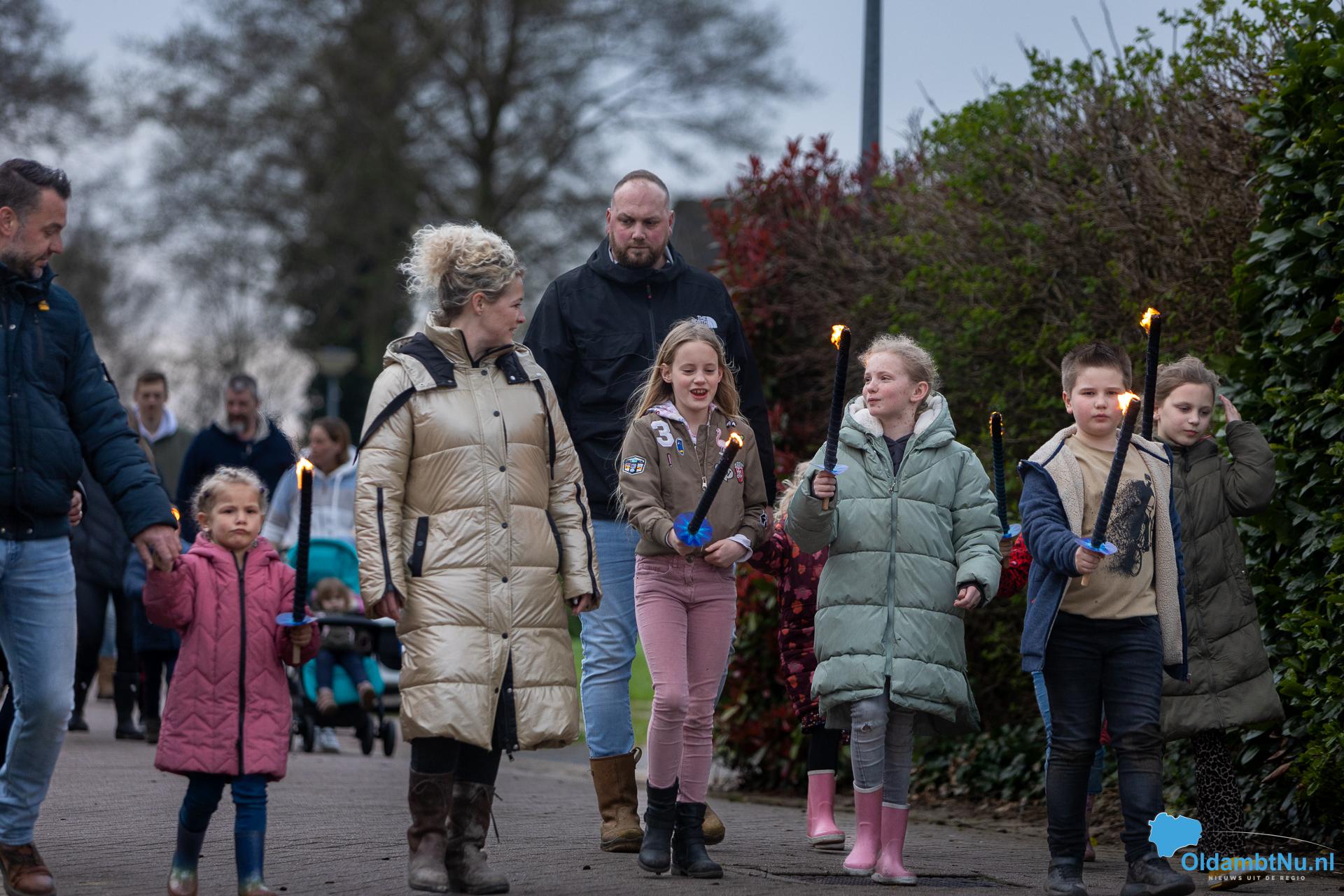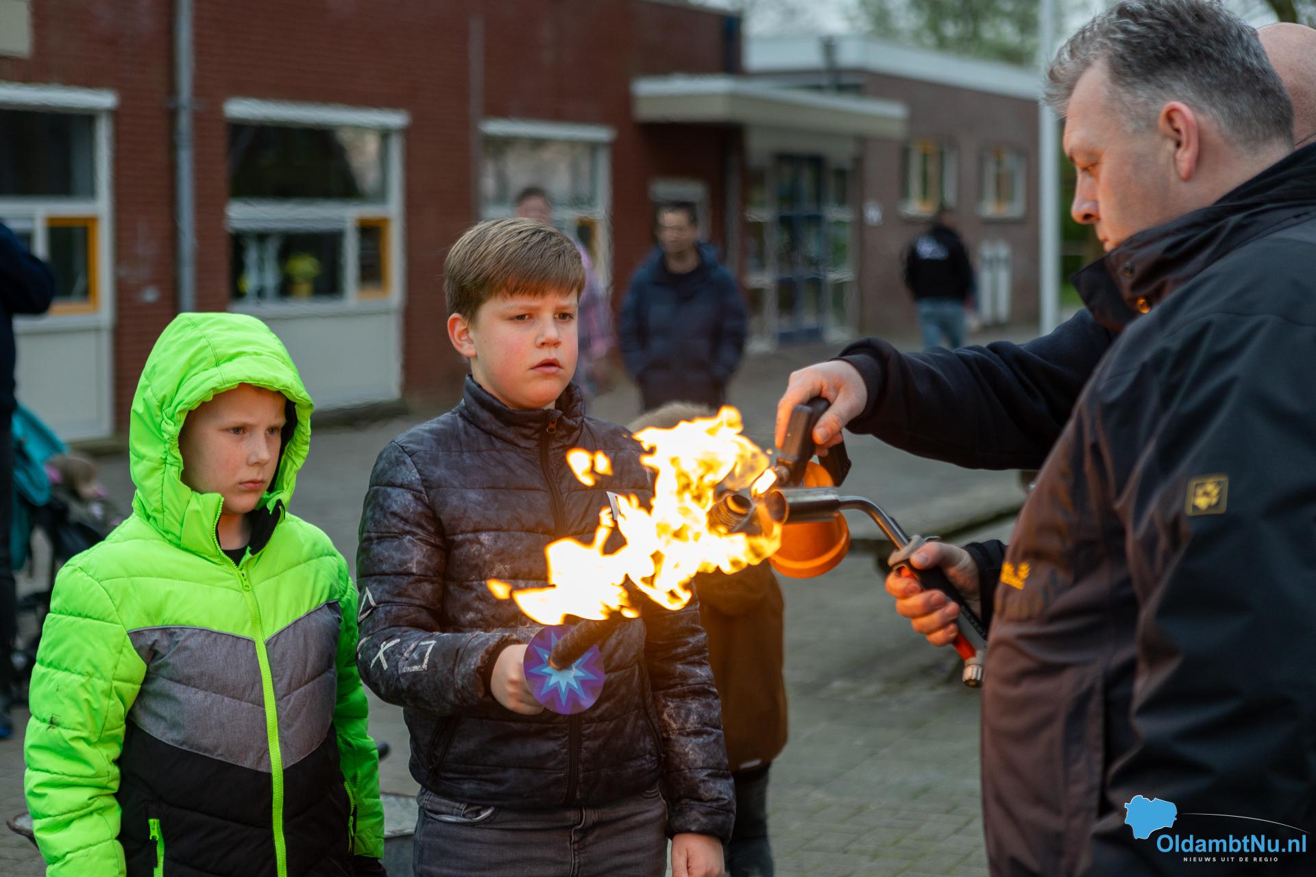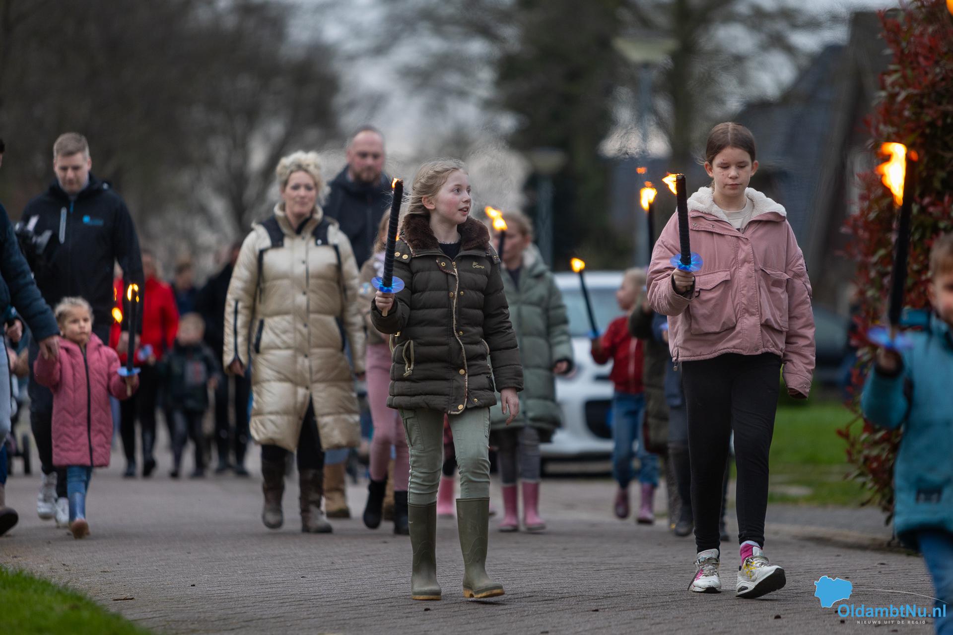 Drieborg – De traditie van een paasvuur was dit jaar in één dorp in het Oldambt, dat was in Drieborg. Bij het invallen van de schemering trok een stoet van kinderen vanaf het schoolplein door Drieborg met brandende fakkels. Het eindpunt was een paasbult op het ijsbaanterrein.