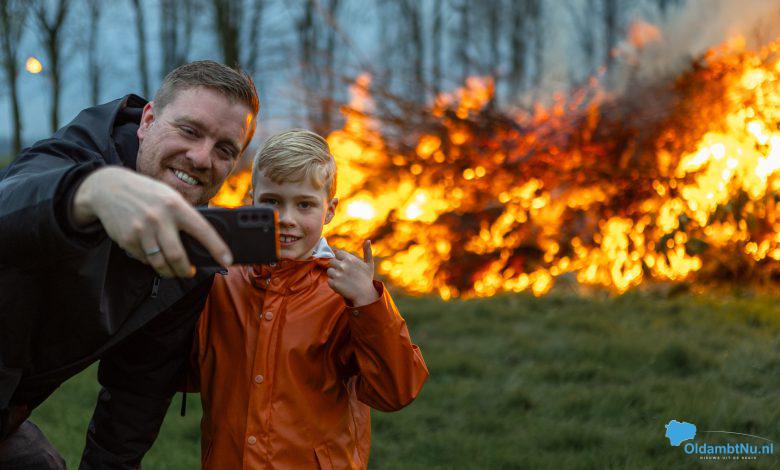 Van jong tot oud verzamelde iedereen zich gezellig rond de berg, terwijl ze samen toekeken hoe de fakkels in de bult werden geworpen, waardoor deze al snel in een vurige gloed werd gehuld.