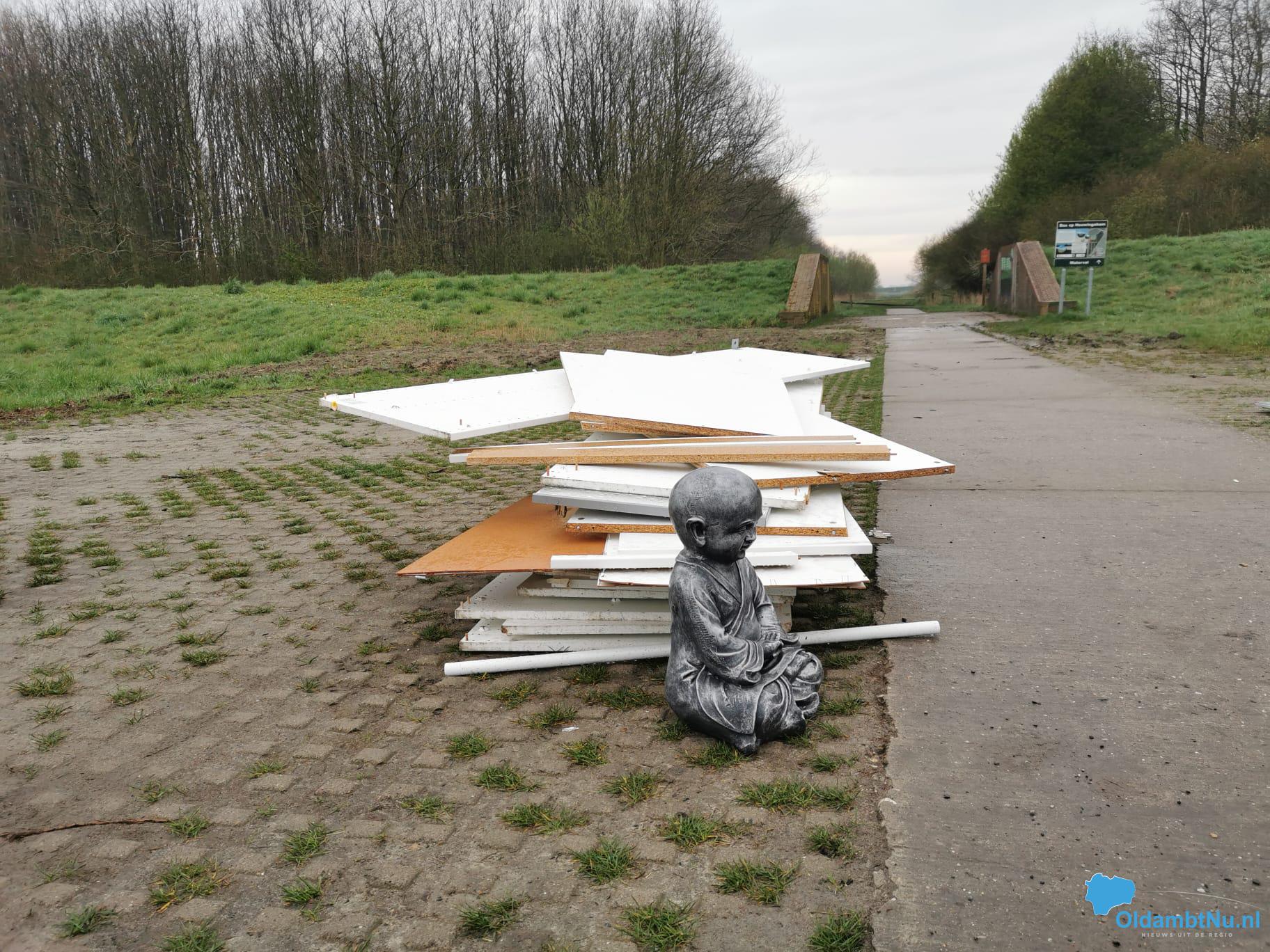 Boeddha beelden en kastplanken gedumpt in natuur Bad Nieuweschans