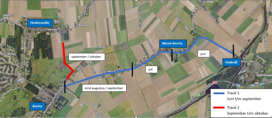 Het bestaande fietspad tussen Beerta en Bad-Nieuweschans wordt in delen tijdelijk buiten gebruik genomen om het nieuwe fietspad aan te brengen, om overlast zoveel mogelijk te beperken.