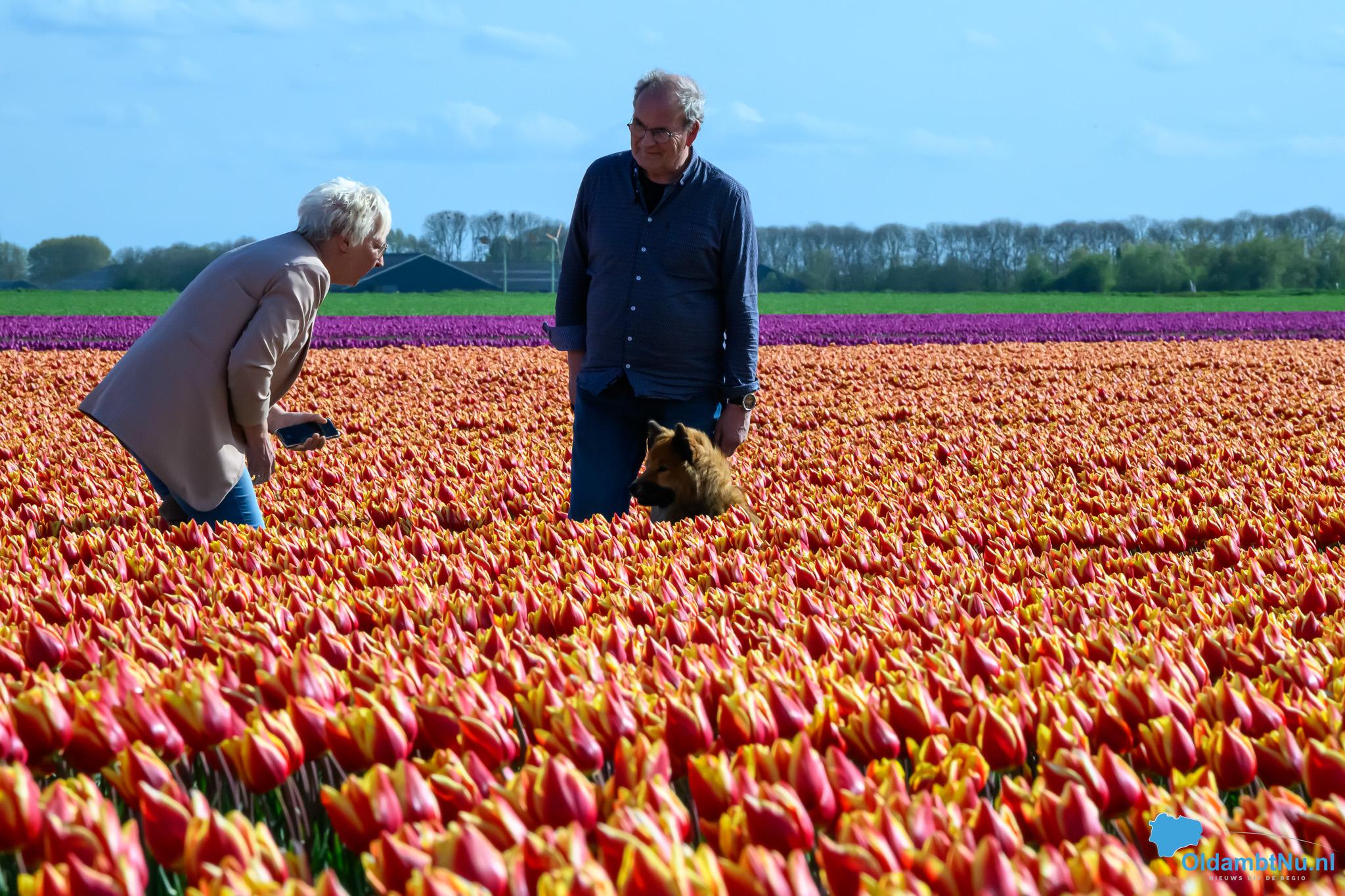 Het tulpenveld in de Reiderwolderpolder is een magneet voor liefhebbers van natuurpracht en fotografen die op zoek zijn naar het perfecte lentekiekje. Bezoekers genieten niet alleen van het aanzicht van de bloemenzee, maar grijpen ook naar hun camera’s om dit typische lentefenomeen vast te leggen.
