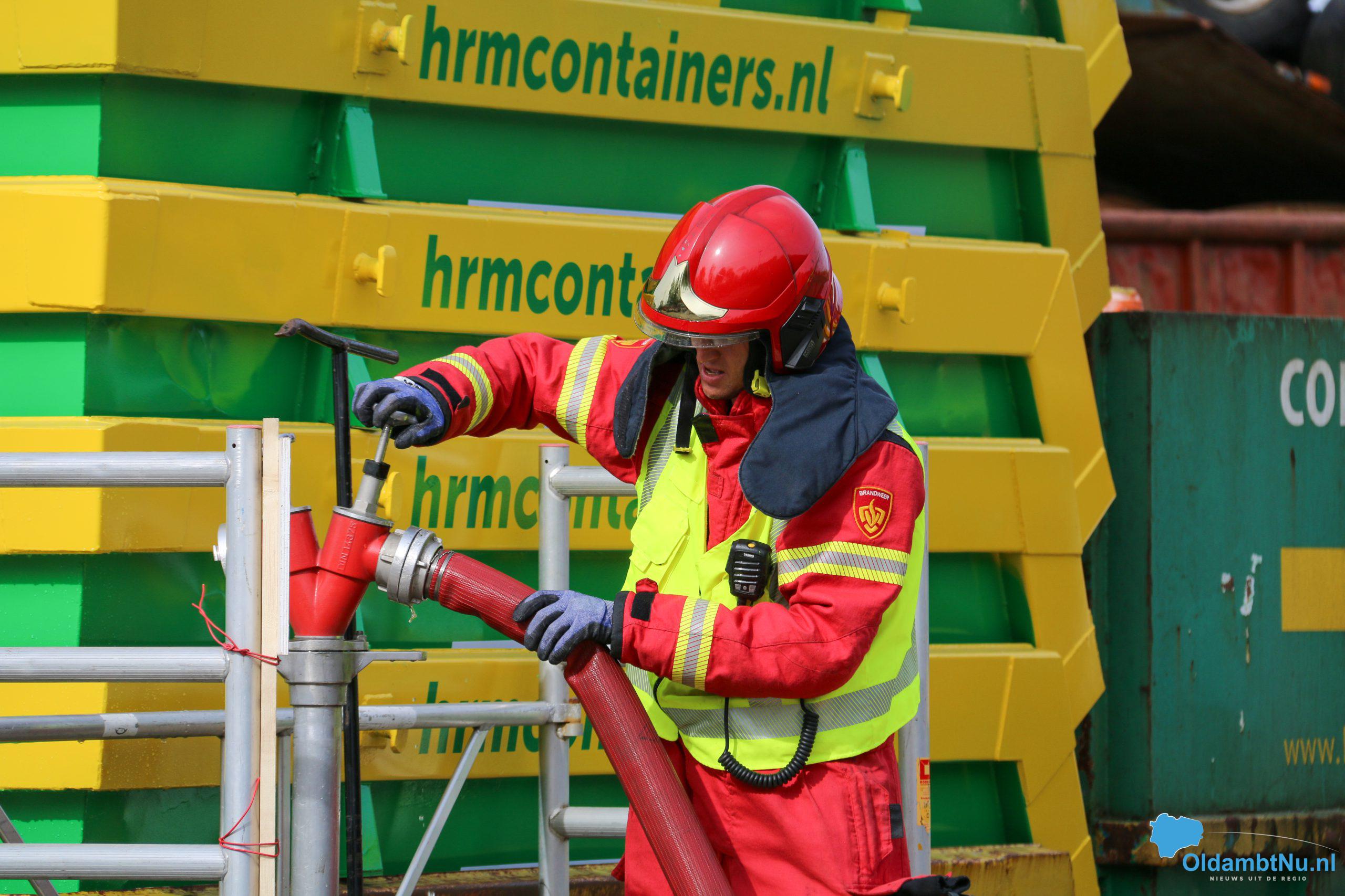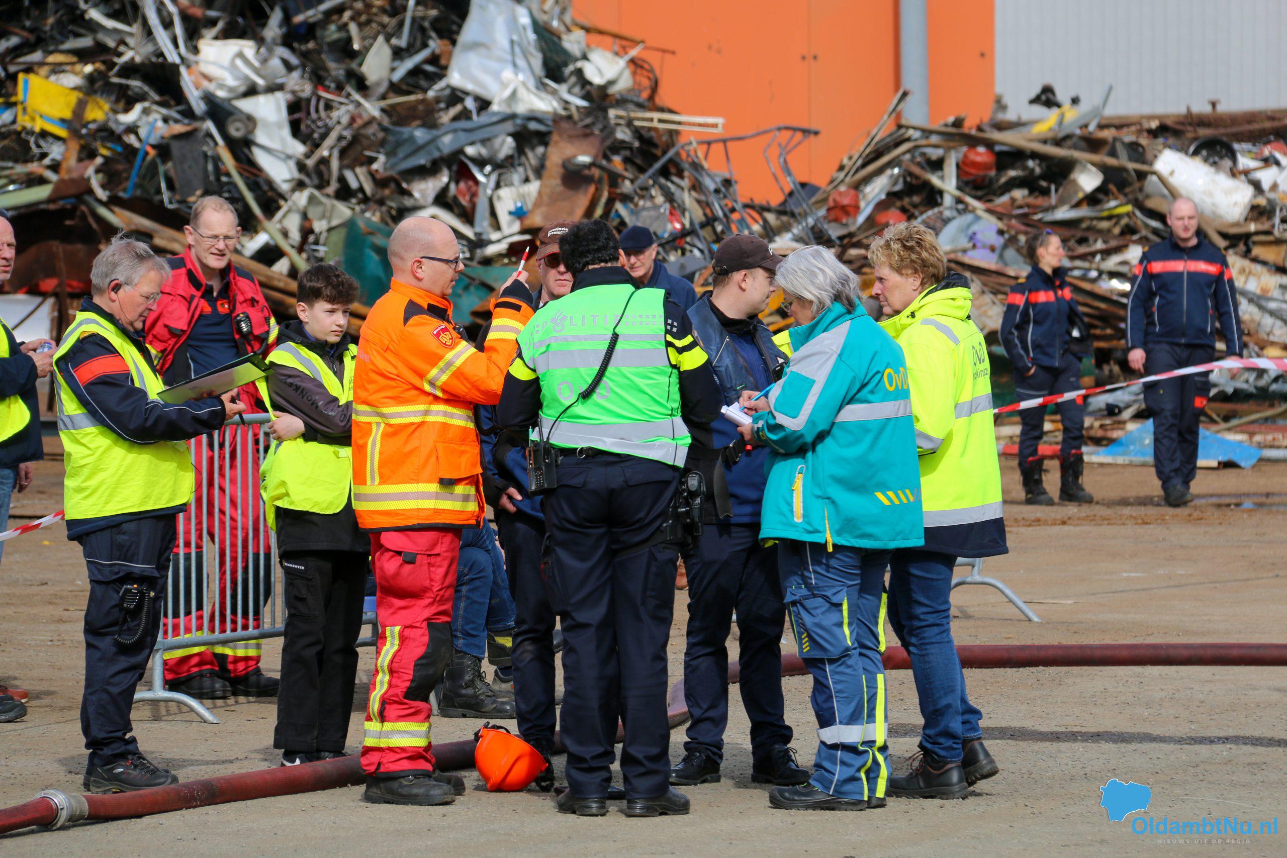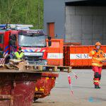 In een grote loods op het terrein was een kraan in de muur gereden, waarbij brand ontstond. Tegelijkertijd zat er een persoon vast op de eerste verdieping van de loods in een brandende ruimte, en lag er een persoon bekneld onder een dikke stalen plaat die van een andere kraan was gevallen. De brandweer moest alle personen bevrijden en de brand blussen, wat een uitdagende opgave bleek te zijn binnen de gestelde tijdslimiet.