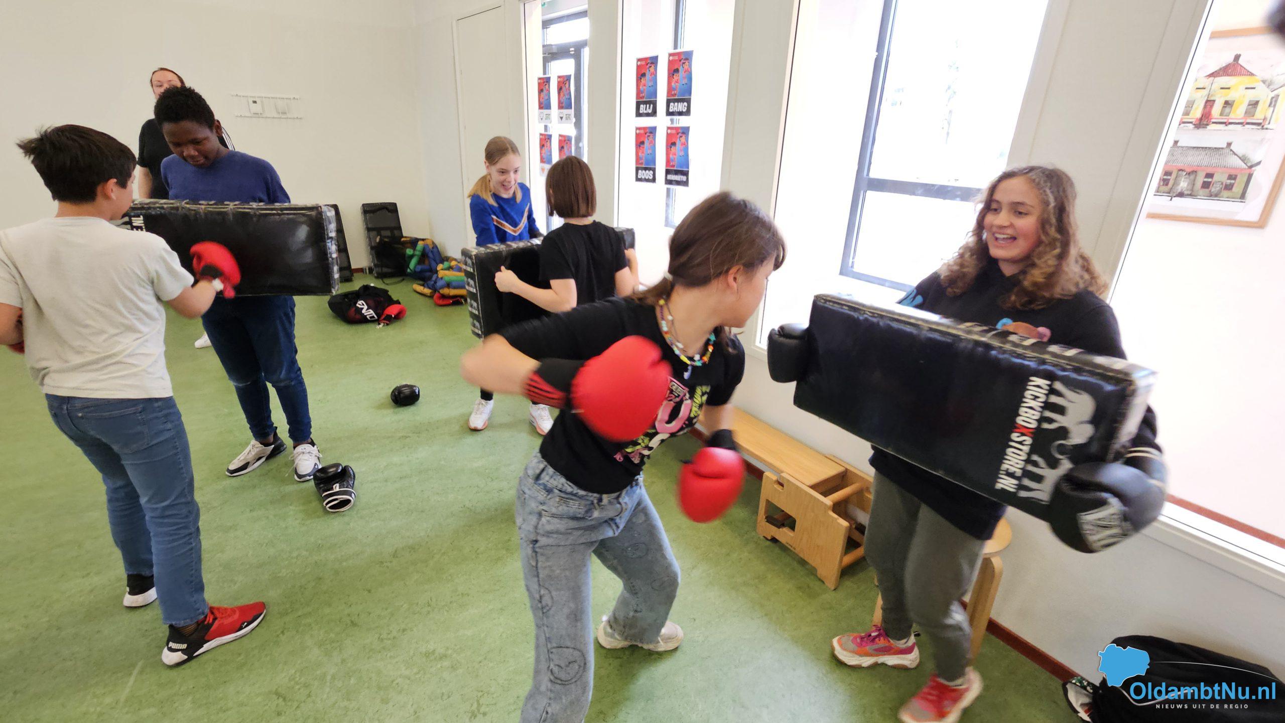 Leerlingen van KC Houwingaham leren tijdens bokslessen om beter om te gaan met een conflict