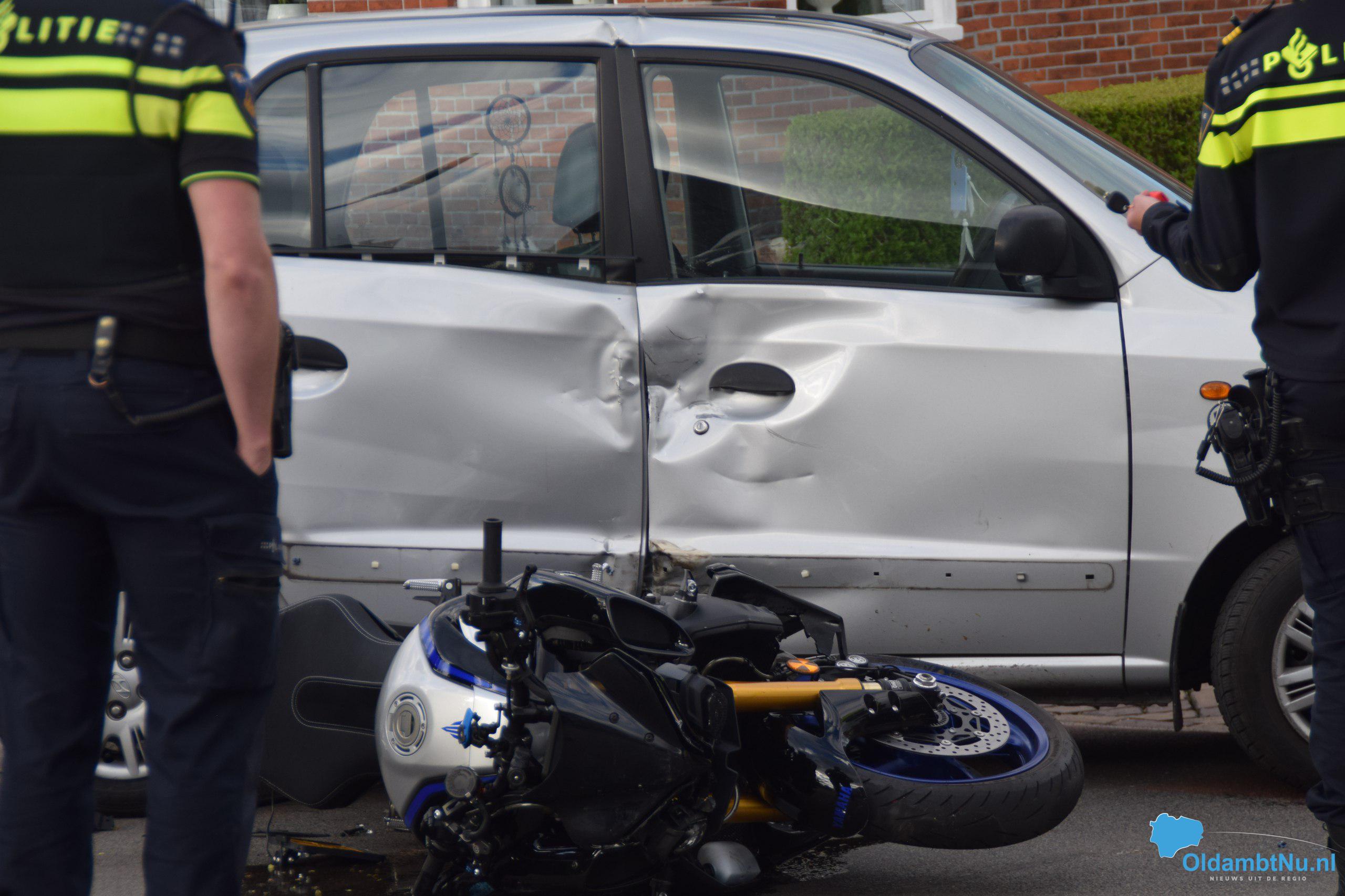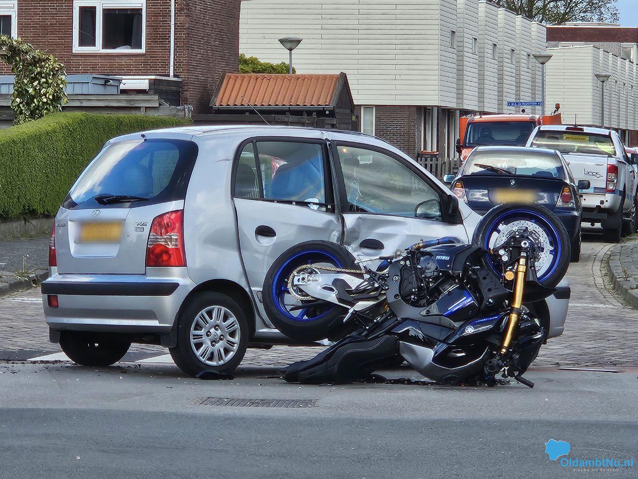 De motorrijder raakte hierbij gewond en is overgebracht naar het ziekenhuis. Berger Fruitema heeft de auto en motor afgesleept.