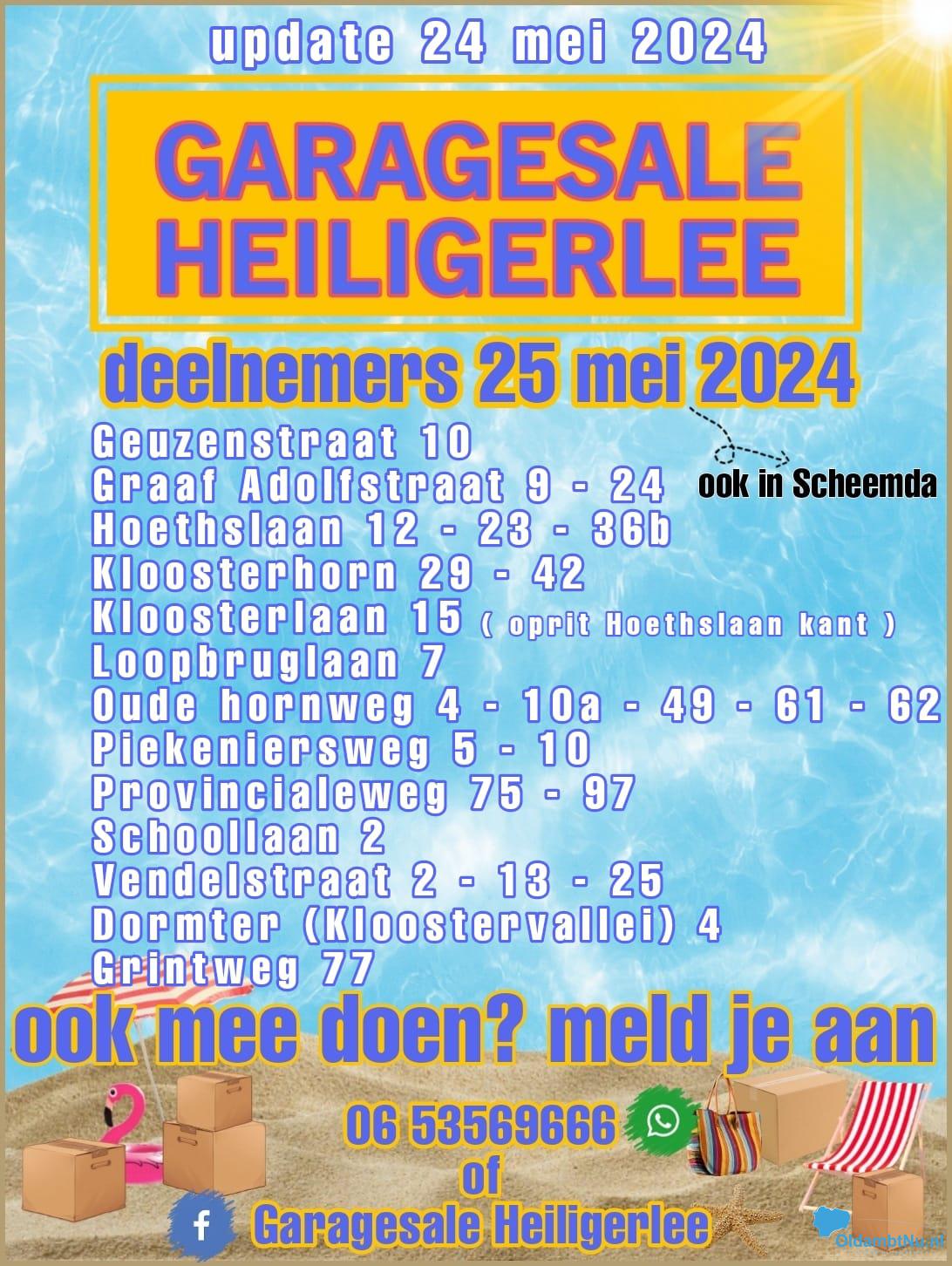 - Voor vragen over Garagesale Heiligerlee kun je contact opnemen met Saskia Koning via 0653569666.