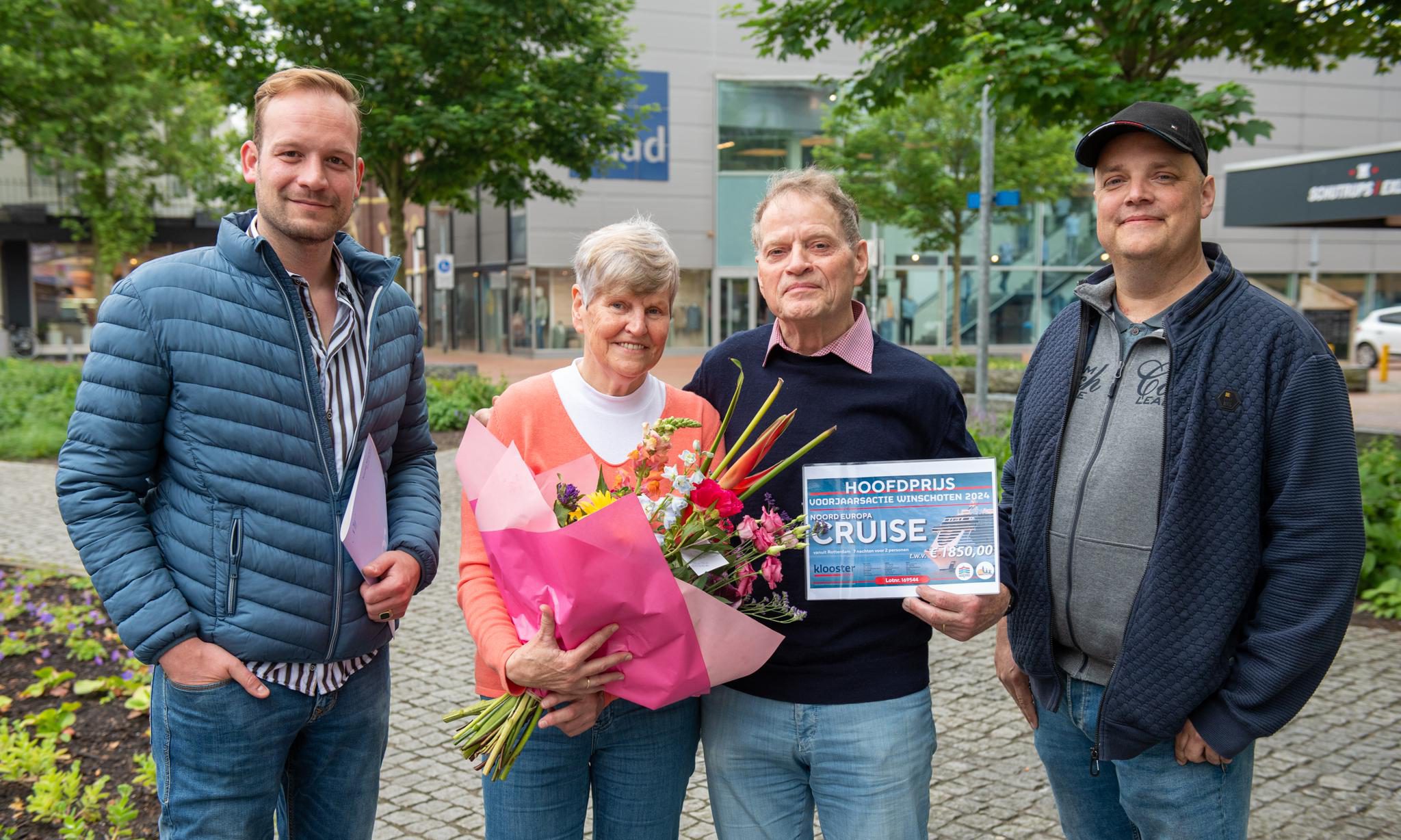 Winschoten – Meneer en mevrouw Zuiderveen uit Bellingwolde zijn de gelukkige winnaars van de hoofdprijs van de Voorjaarsactie Winschoten! Het echtpaar verzilverde hun prijs zaterdagochtend bij het bestuur van City Club Winschoten met hun winnende lotnummer 169544, dat zij hadden gekregen na een aankoop bij Holland & Barrett aan het Israelplein in Winschoten.