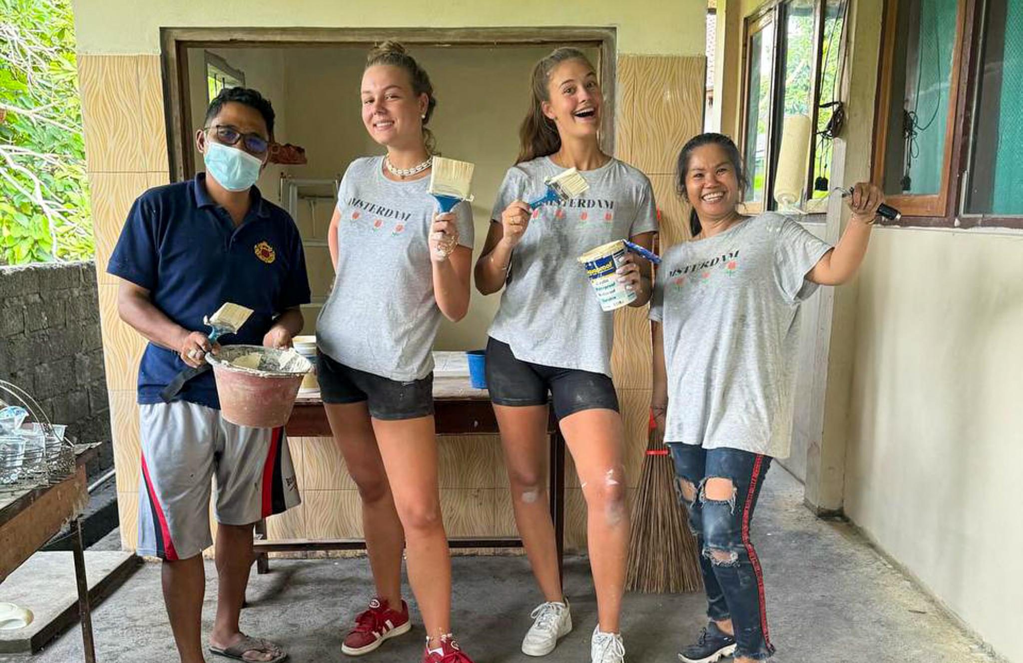 Bali Fenniek Jager (20) uit Westerlee en Amber van Heesch (21) uit Tiel verblijven momenteel op het Indonesische eiland Bali, waar ze zich inzetten voor lokale gemeenschappen. In de zomer van 2023 ontmoetten ze elkaar bij toeval tijdens hun individuele reizen door Bali.