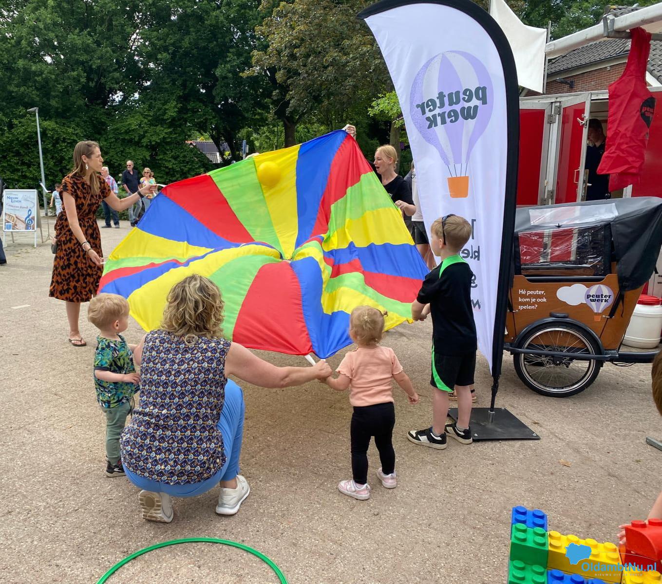 Bij de kraam van Peuterwerk konden kinderen zich vermaken met diverse activiteiten zoals pittenzakjes gooien en blokken bouwen. Maar het hoogtepunt van de dag was toch wel de grote, kleurrijke parachute. Samen speelden de kinderen spelletjes waarbij ze een bal omhooghielden, onder de parachute doorrenden en nog veel meer. Het plezier was van de gezichtjes af te lezen.