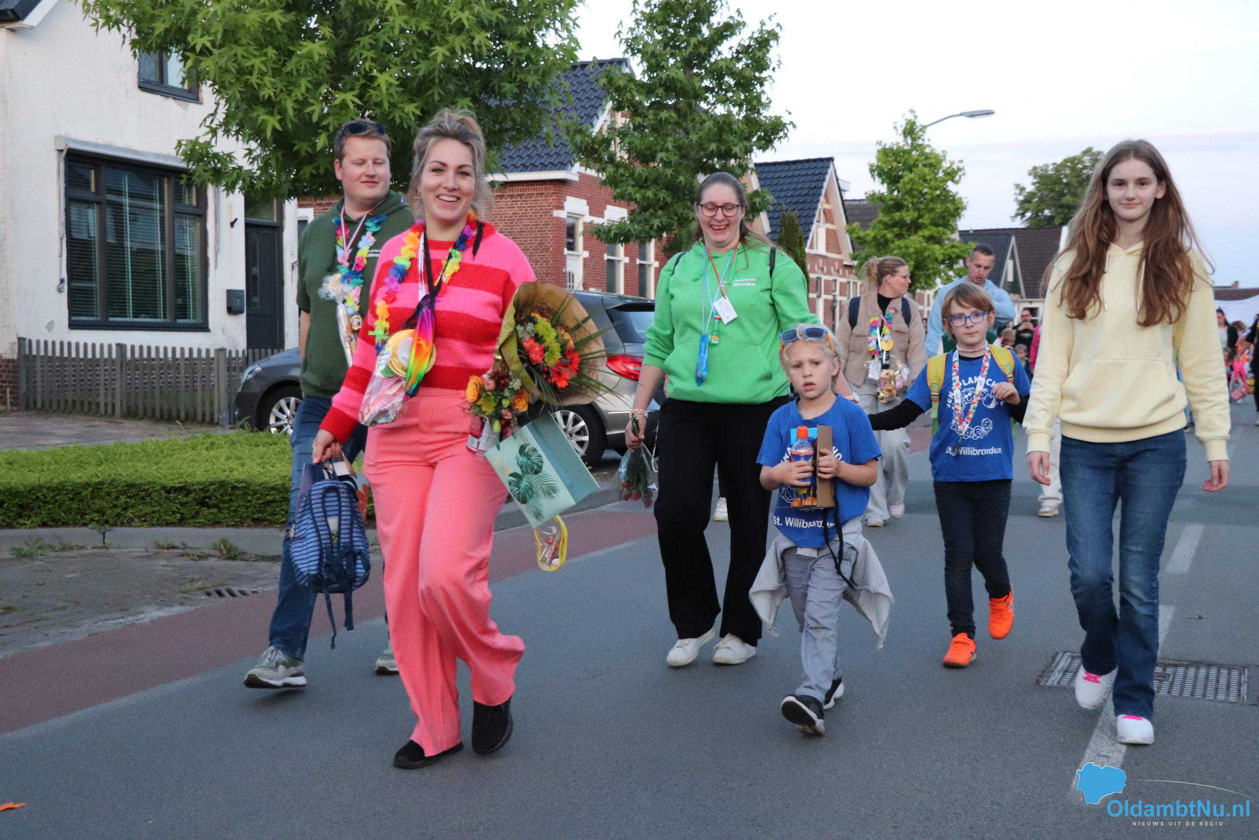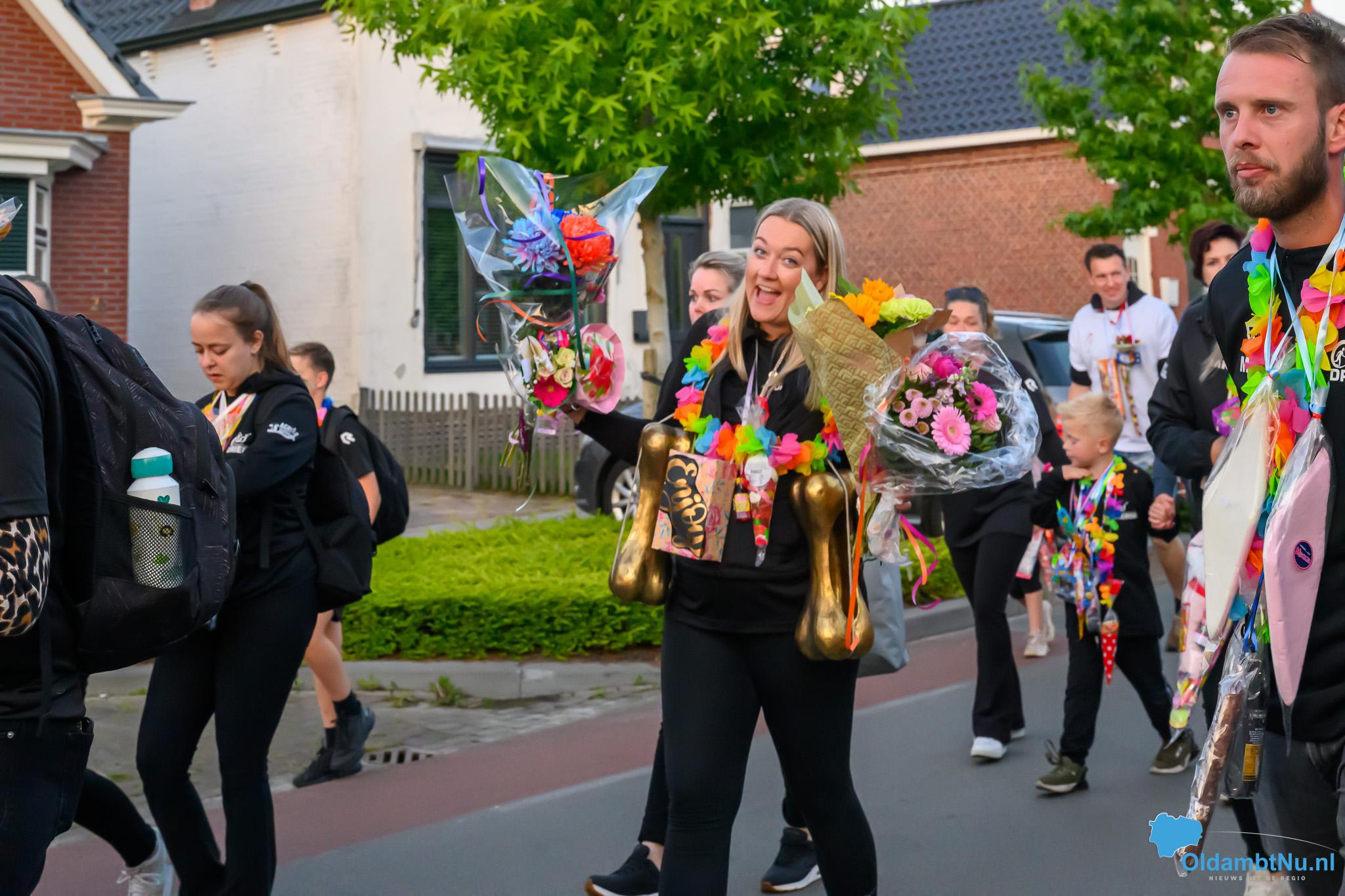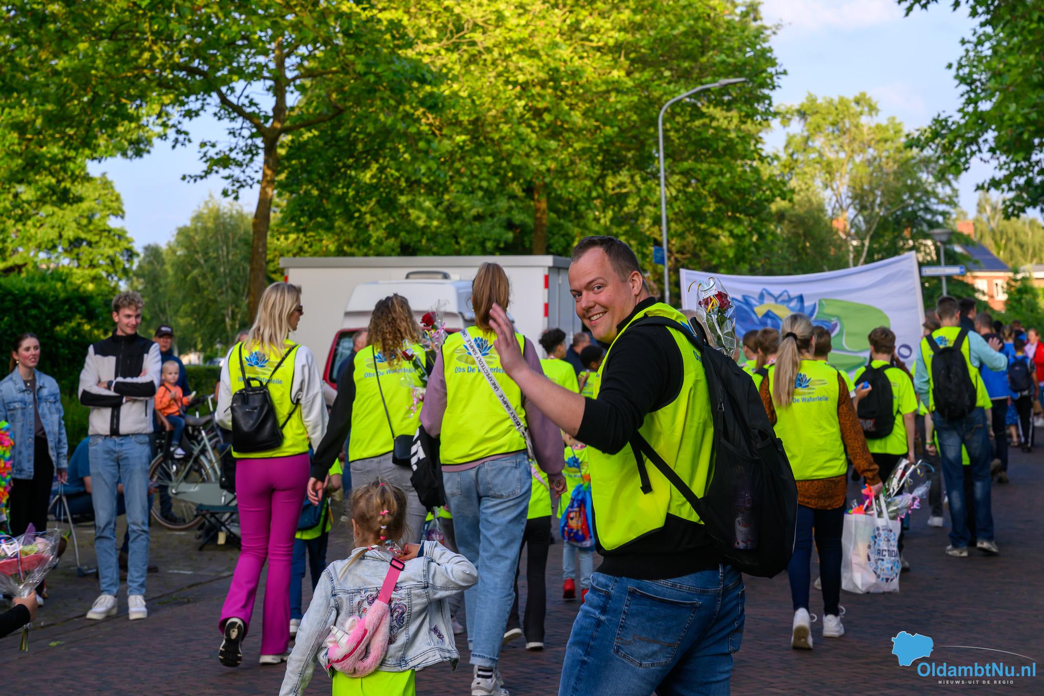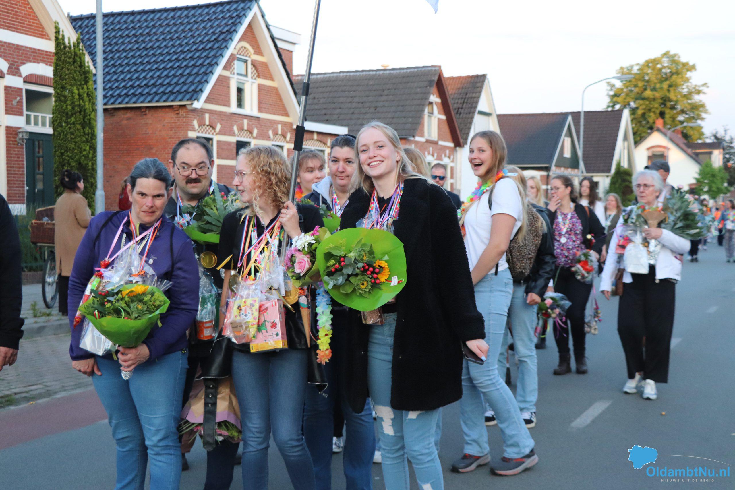 De deelnemers, variërend van jong tot oud, ontvingen bij aankomst op het WVV terrein hun welverdiende medaille. Familie en vrienden stonden langs de hele route en verrasten de wandelaars met bloemen, lekkernijen en cadeautjes, waardoor de sfeer nog feestelijker werd.
