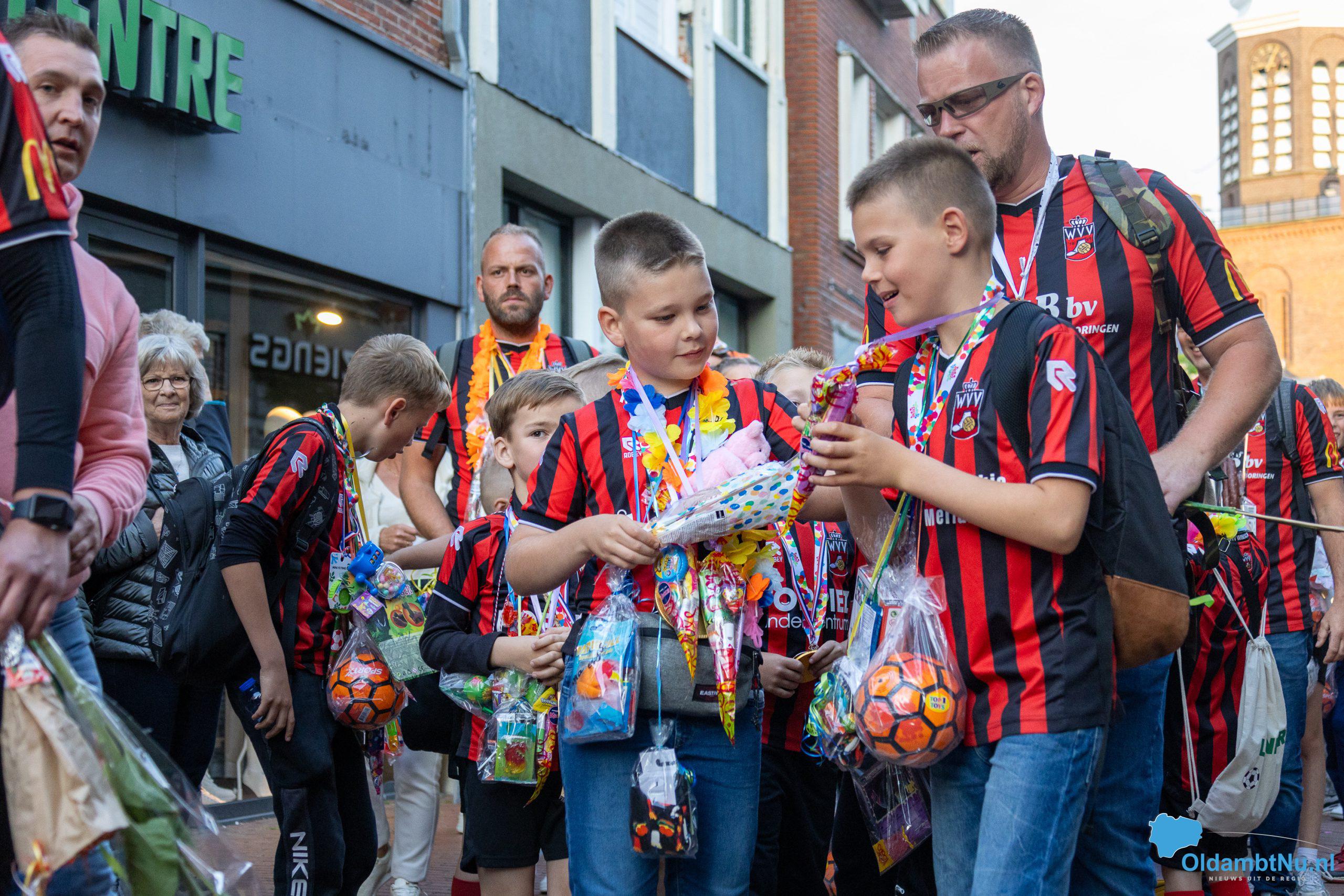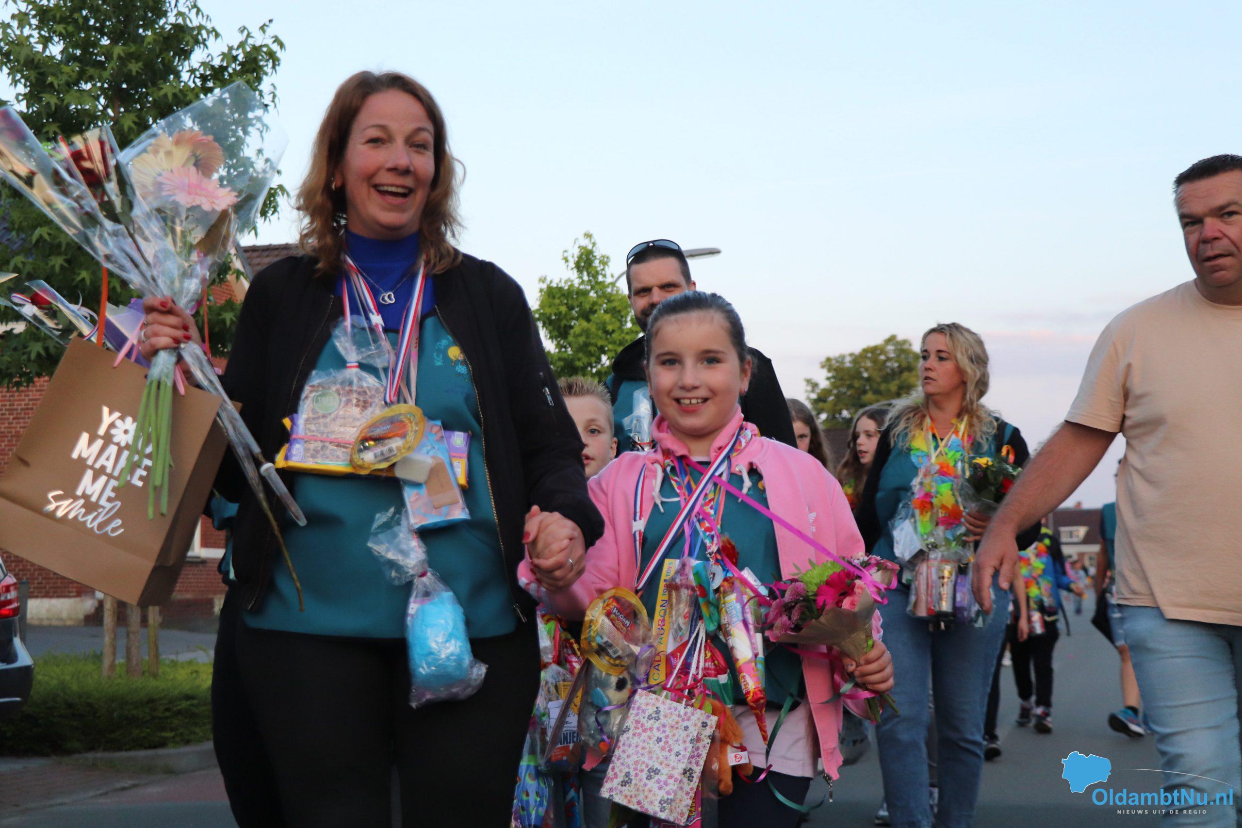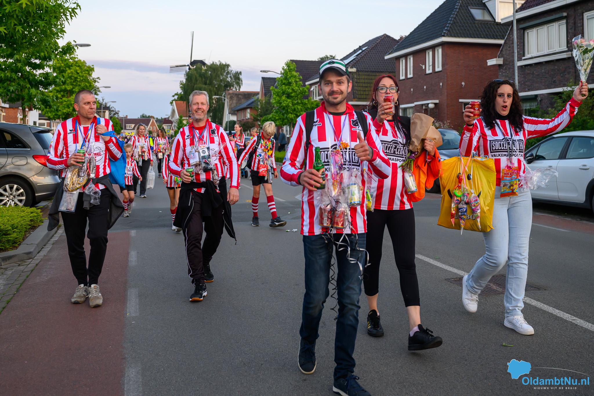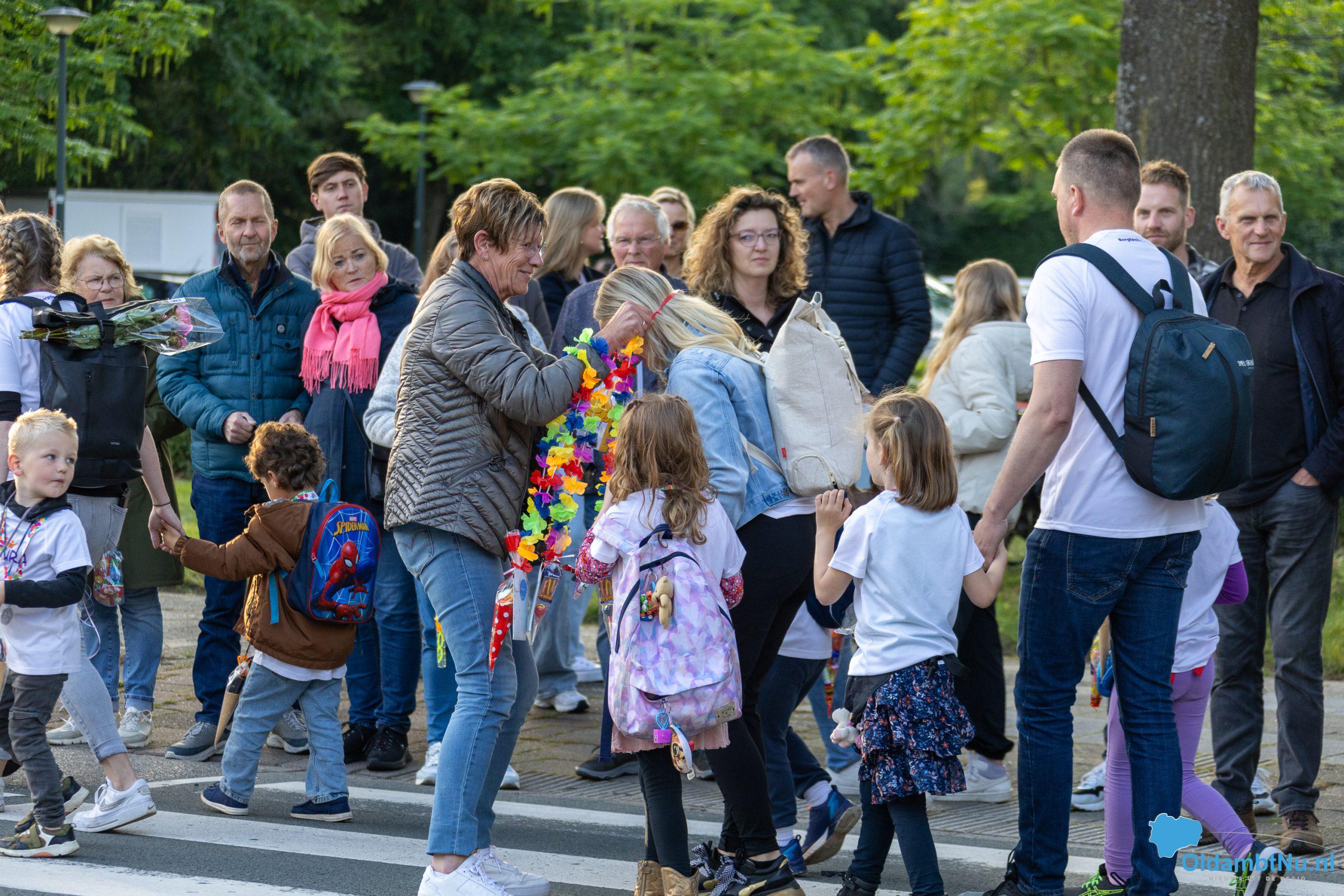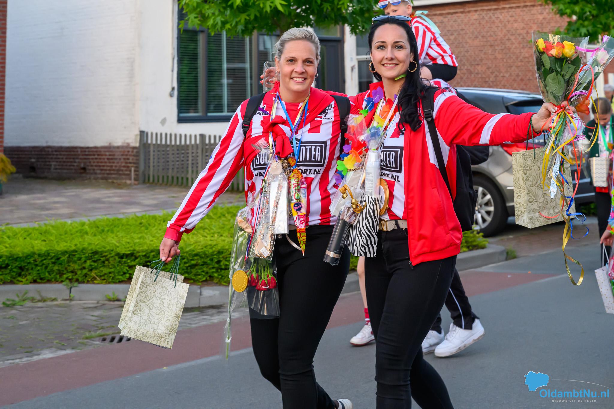 De deelnemers, variërend van jong tot oud, ontvingen bij aankomst op het WVV terrein hun welverdiende medaille. Familie en vrienden stonden langs de hele route en verrasten de wandelaars met bloemen, lekkernijen en cadeautjes, waardoor de sfeer nog feestelijker werd.