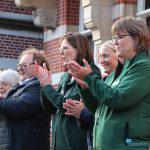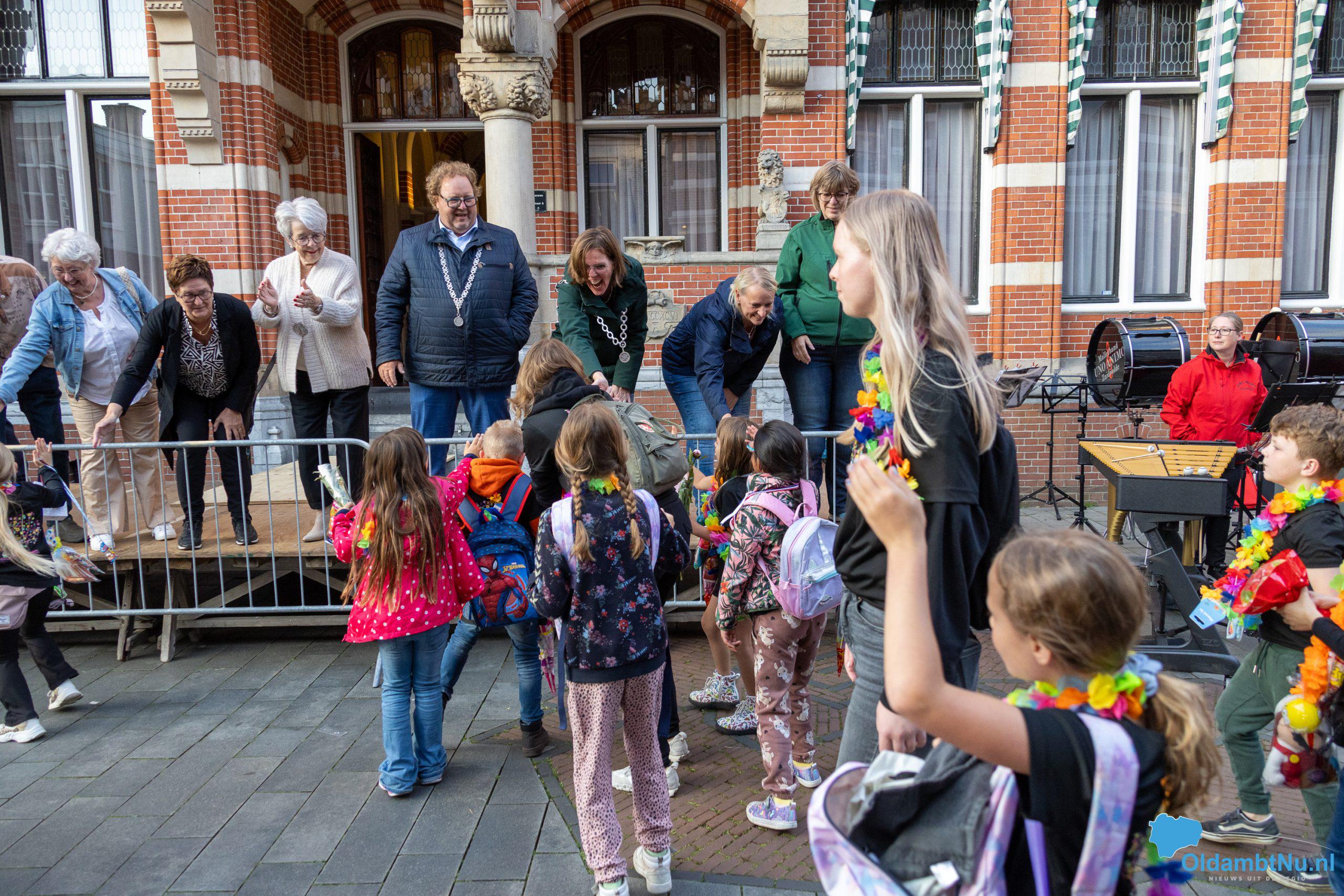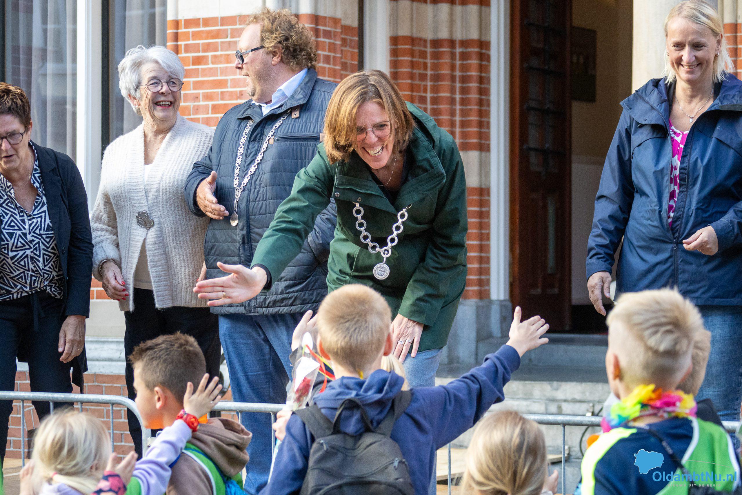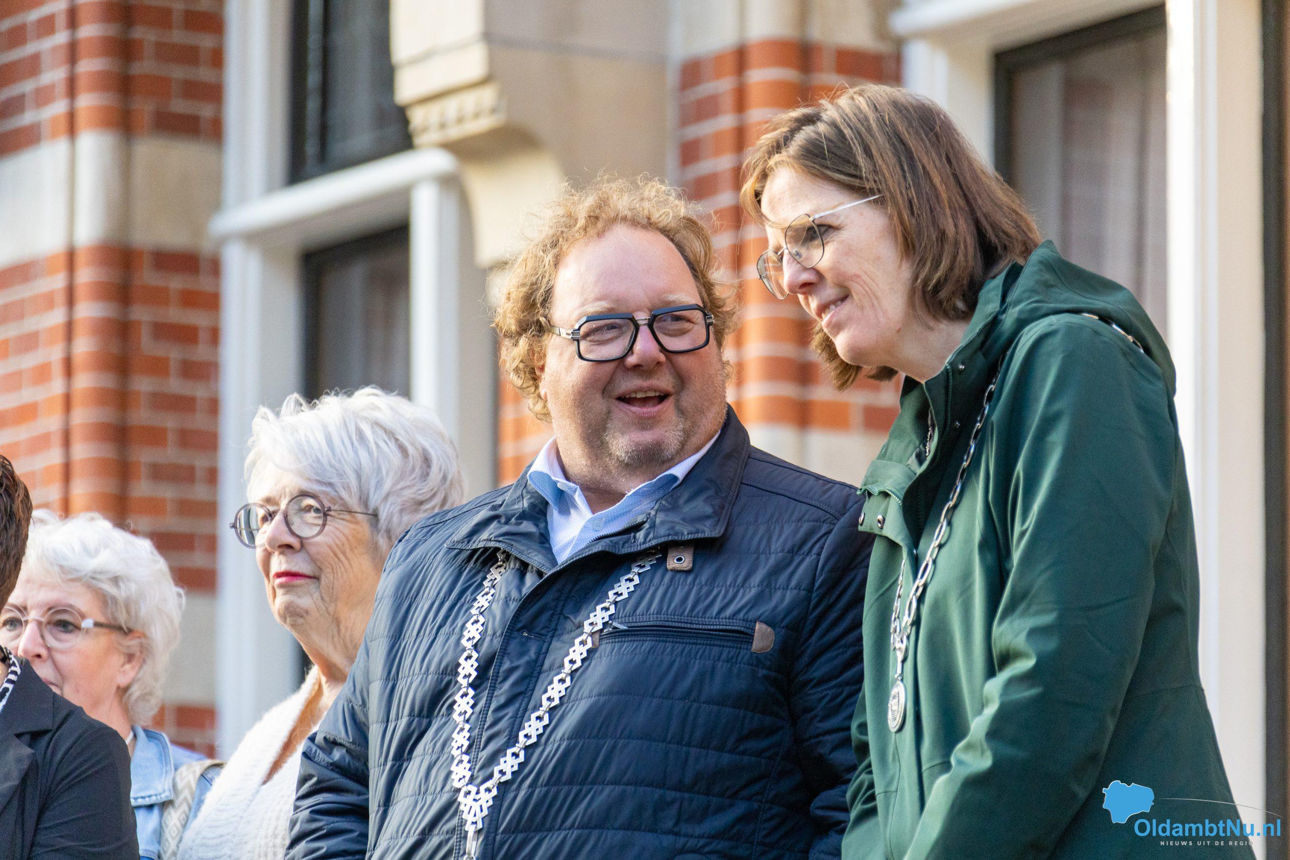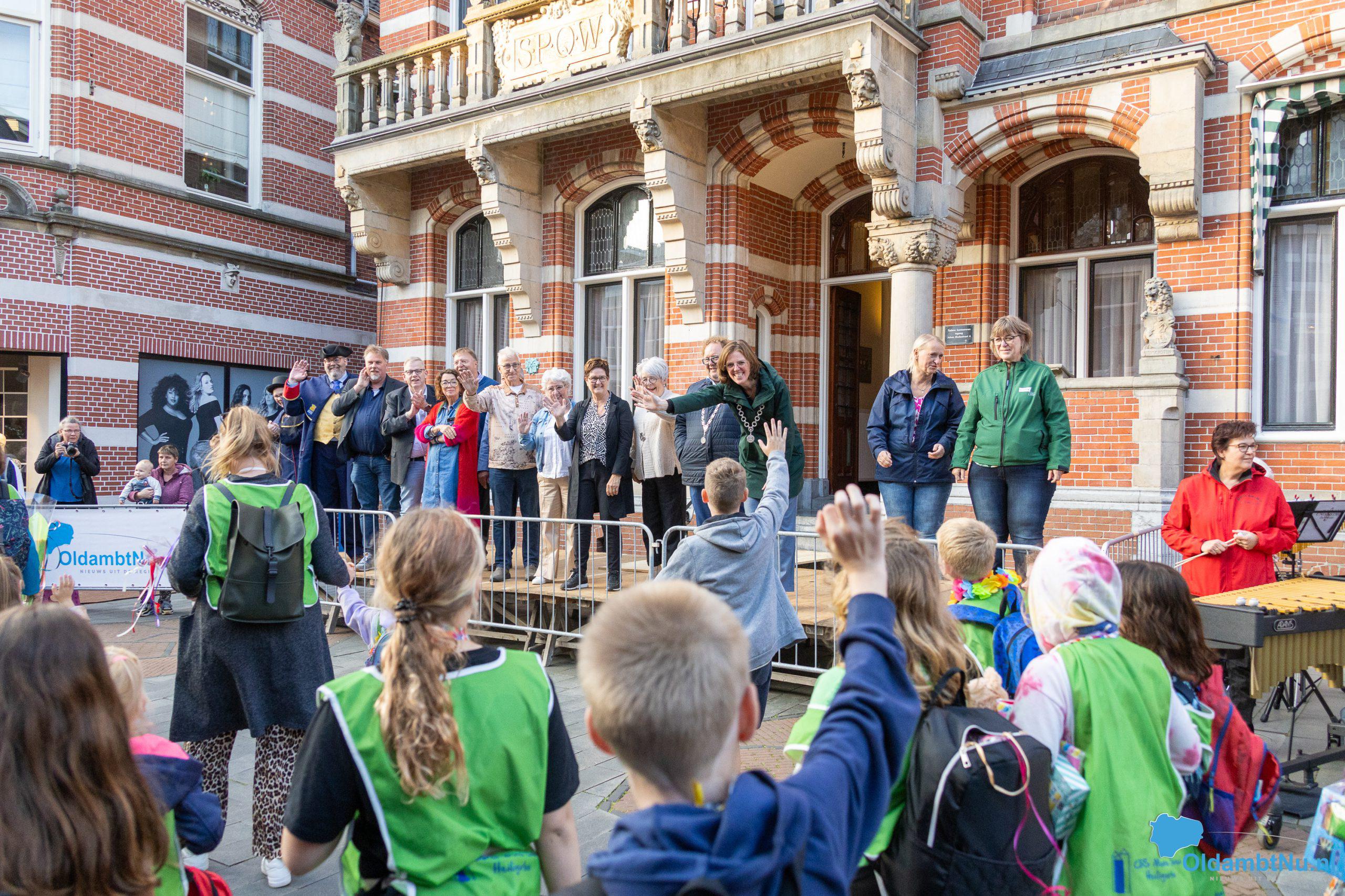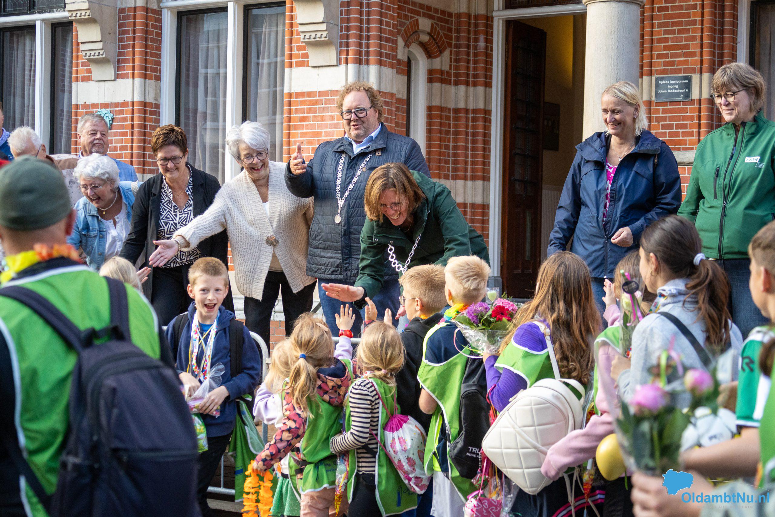 Tijdens het defilé langs het Stadhuis aan de Langestraat stonden op het bordes burgemeester Cora-Yfke Sikkema (Oldambt) en burgemeester Jaap Kuin (Pekela), vergezeld door college- en gemeenteraadsleden, de stadsomroeper en vrijwilligers van de organisatie SV Bovenburen en vertegenwoordigers van de landelijke wandelbond om de wandelaars toe te juichen.