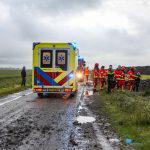 De personenauto liep aanzienlijke schade op. Naast de auto kwam ook de aanhanger, die het voertuig trok, in de berm terecht. Het is vooralsnog onduidelijk hoe het ongeval precies heeft kunnen gebeuren.