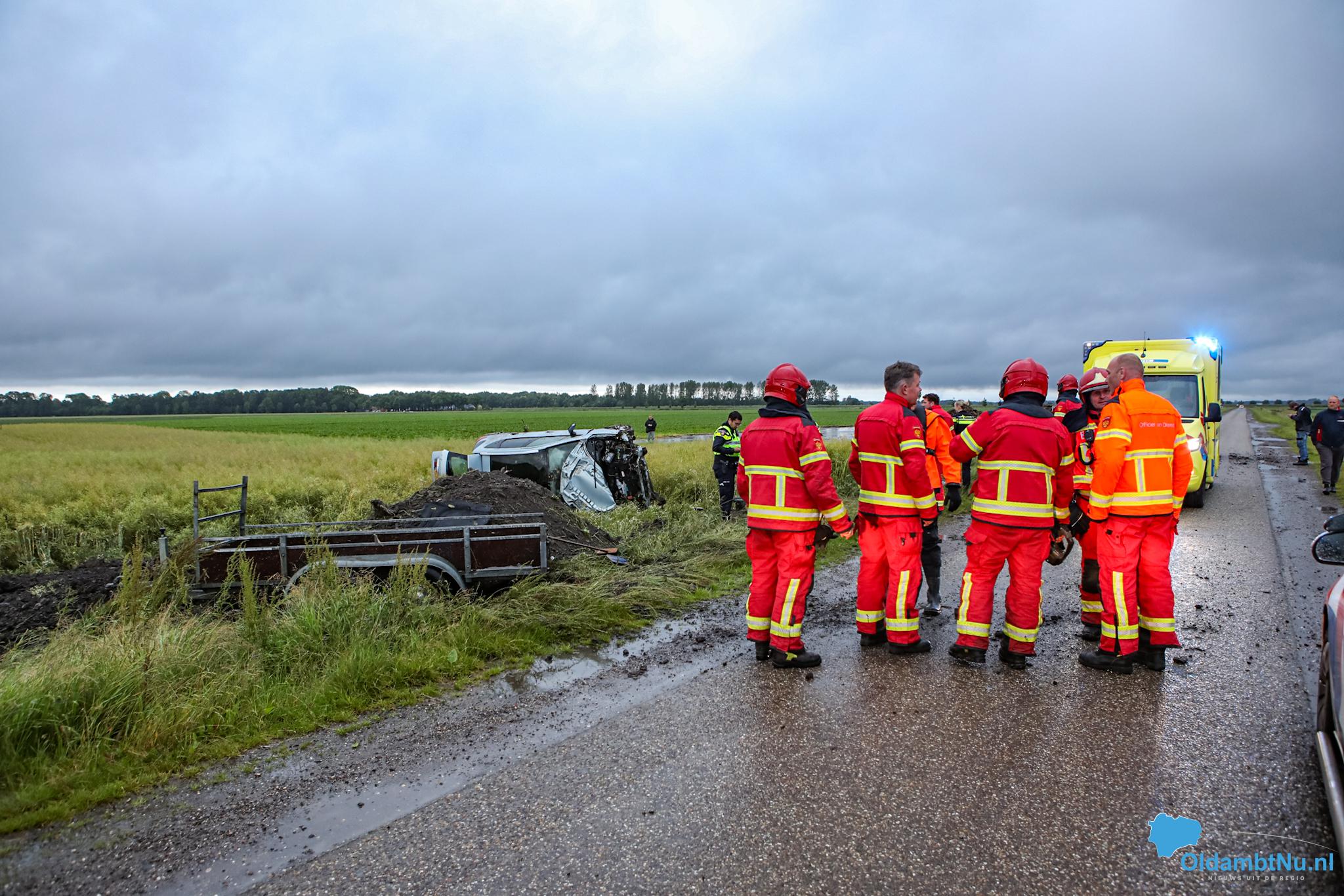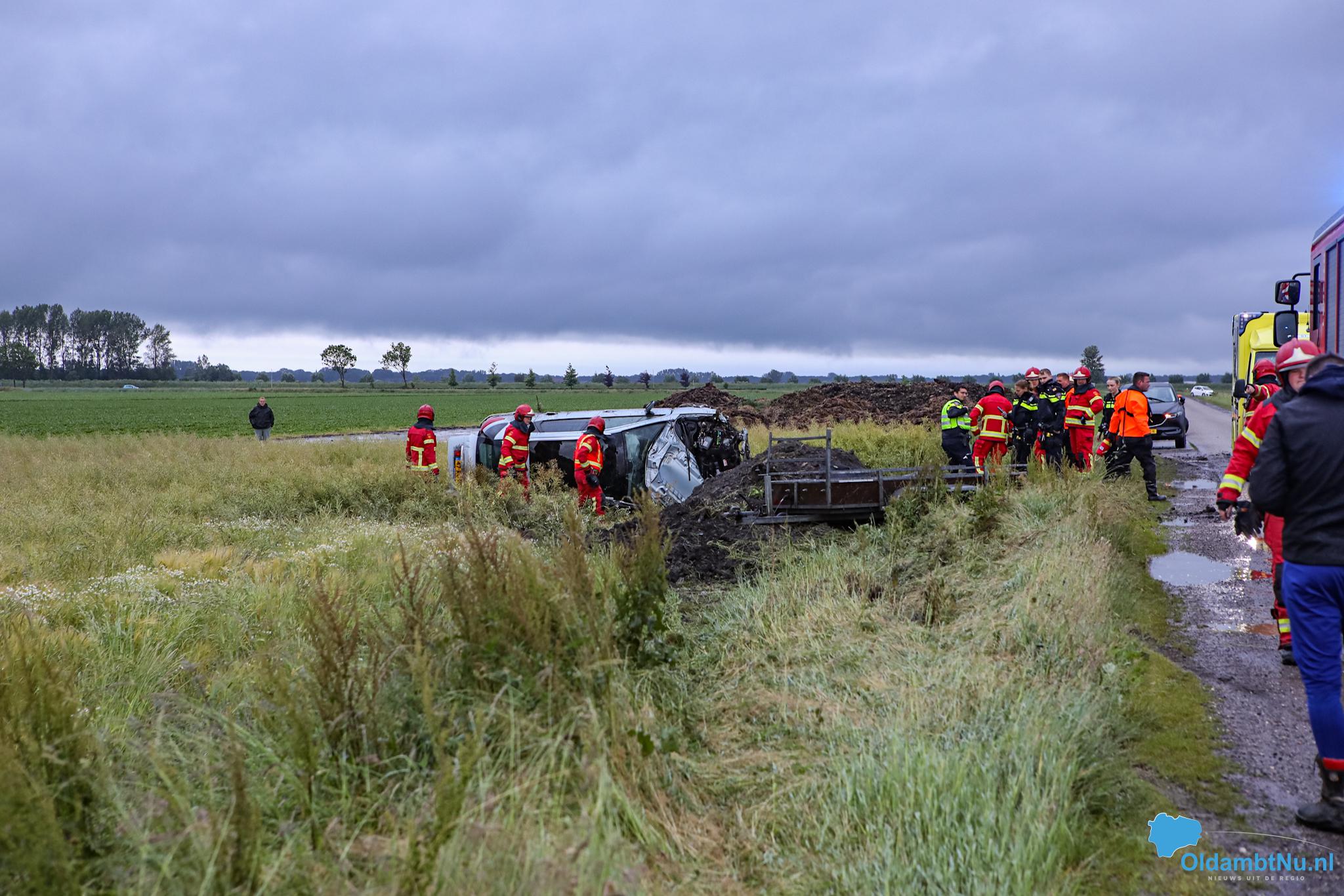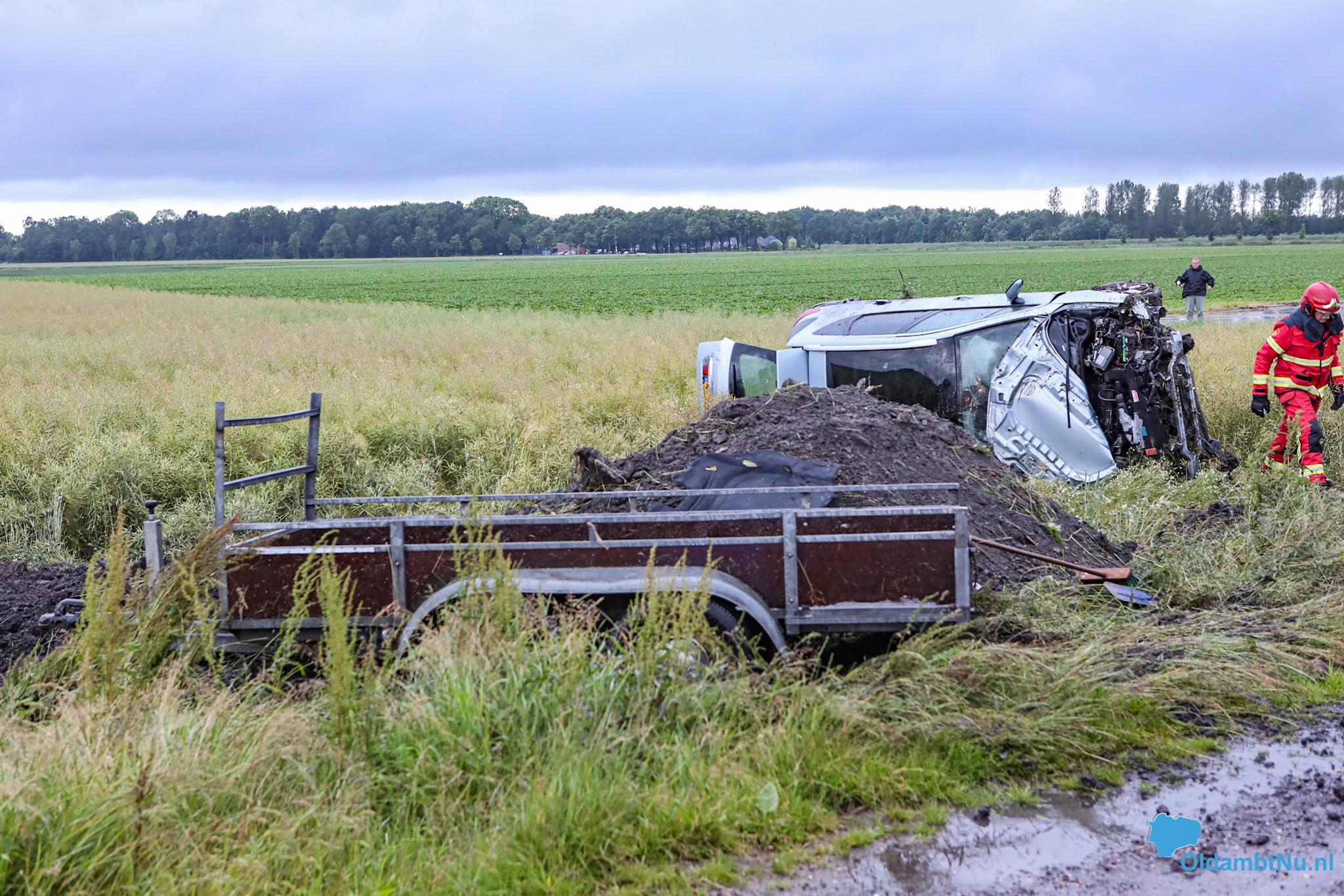 De personenauto liep aanzienlijke schade op. Naast de auto kwam ook de aanhanger, die het voertuig trok, in de berm terecht. Het is vooralsnog onduidelijk hoe het ongeval precies heeft kunnen gebeuren.