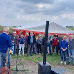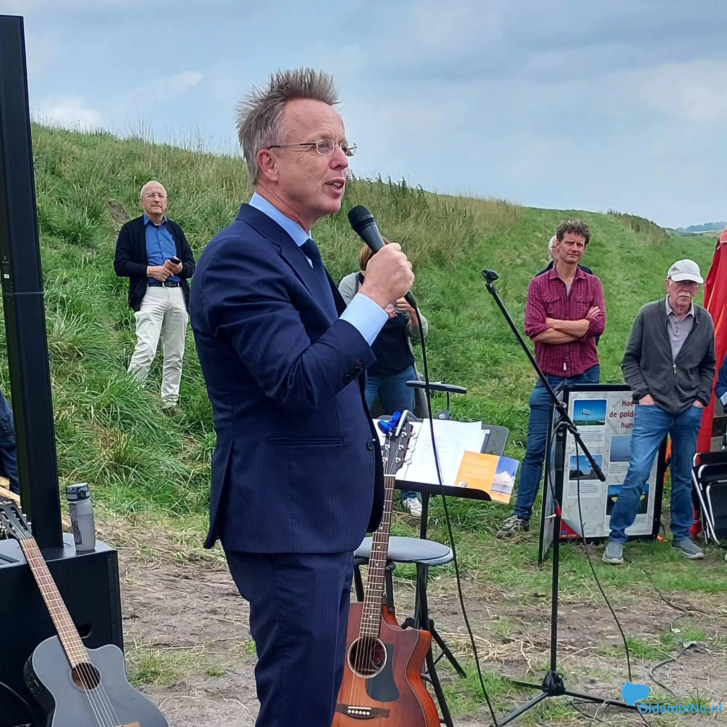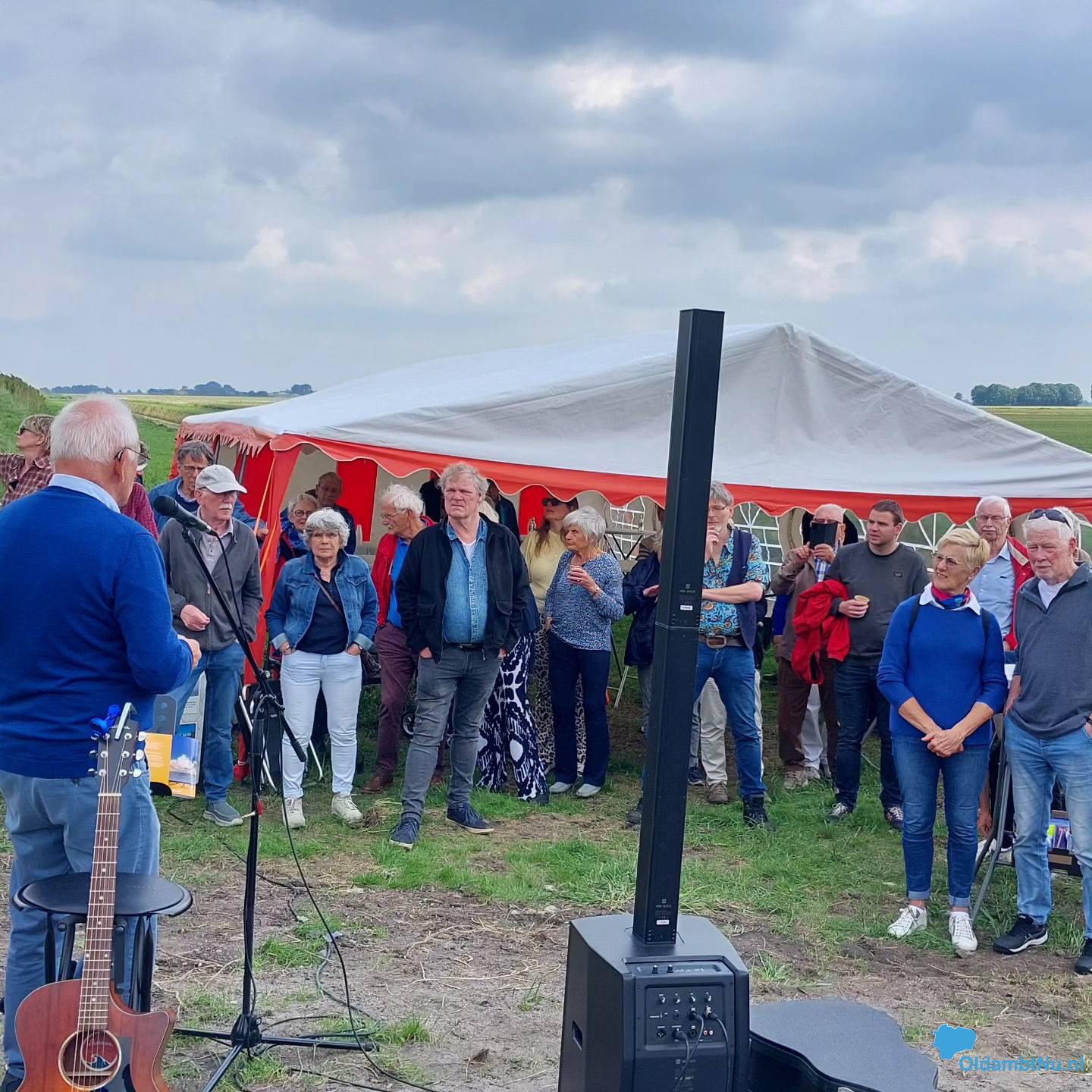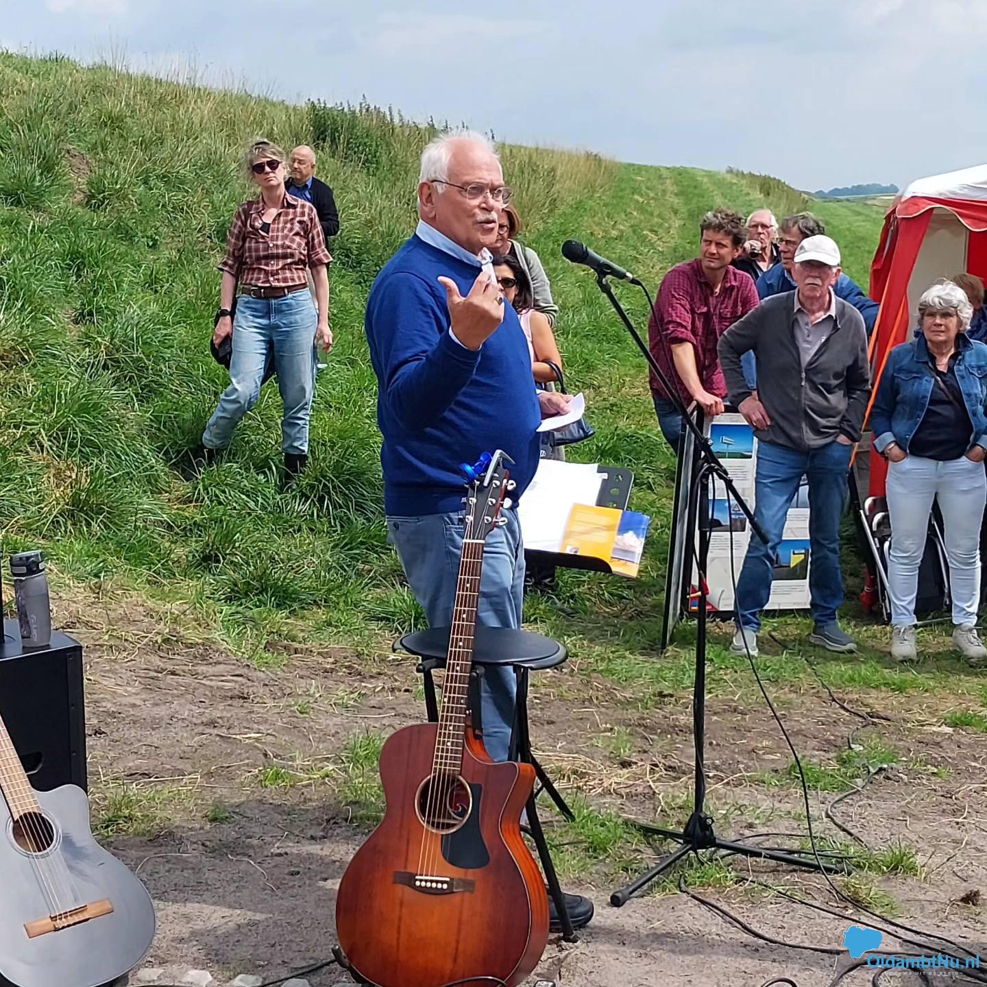 Carel Coenraadpolder – Afgelopen zaterdag is er stilgestaan bij 100 jaar Carel Coenraadpolder. De feestelijke bijeenkomst vond plaats bij de het pas gerestaureerde gele dijkgat met op de dijk het schotbalkhuisje. Alle aanwezigen werden allereerst welkom geheten door voorzitter van Stichting Landschap Oldambt Harm Evert Waalkens.