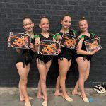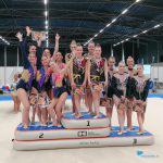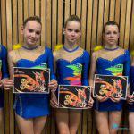 Op zondag mochten ook nog de junioren twee oefeningen draaien. Dit team is nieuw in samenstelling en liet zien veel progressie te maken. Ze draaiden hun beste oefeningen van het seizoen en behaalden uiteindelijk een 7e en 8e plaats.