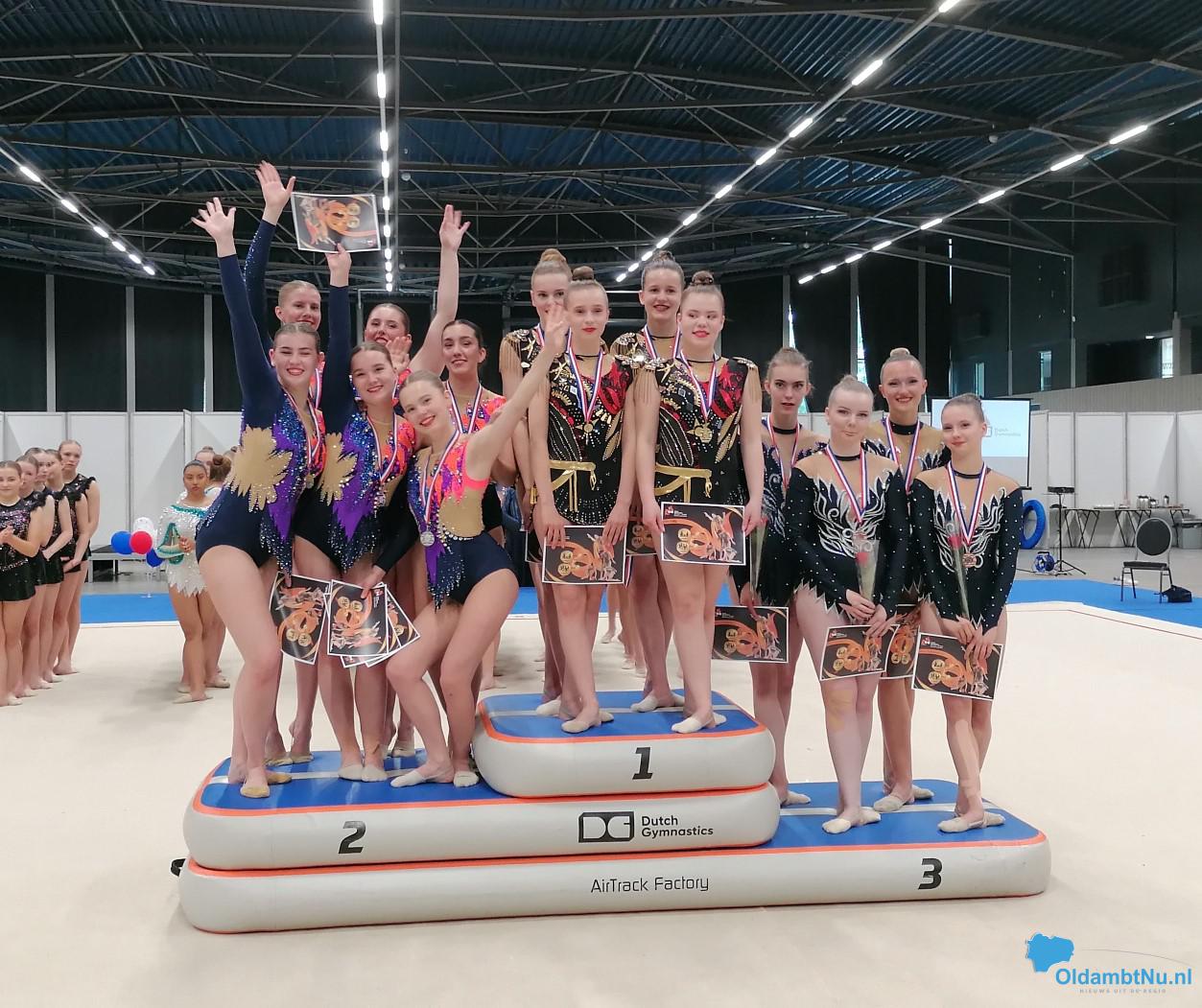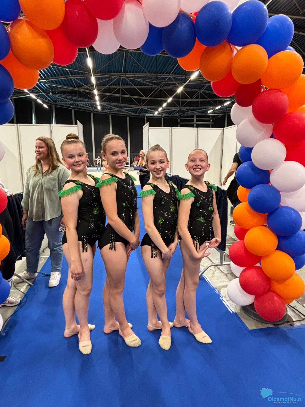 Met hun hoepel oefening behaalden ze een keurige 5e plaats en toen werd het spannend. Want ze waren helemaal als laatste aan de beurt met hun bal-oefening. Deze verliep zeer goed en ze werden met een hoge score beloond welke voldoende was voor het zilver en dus 2 e van Nederland.