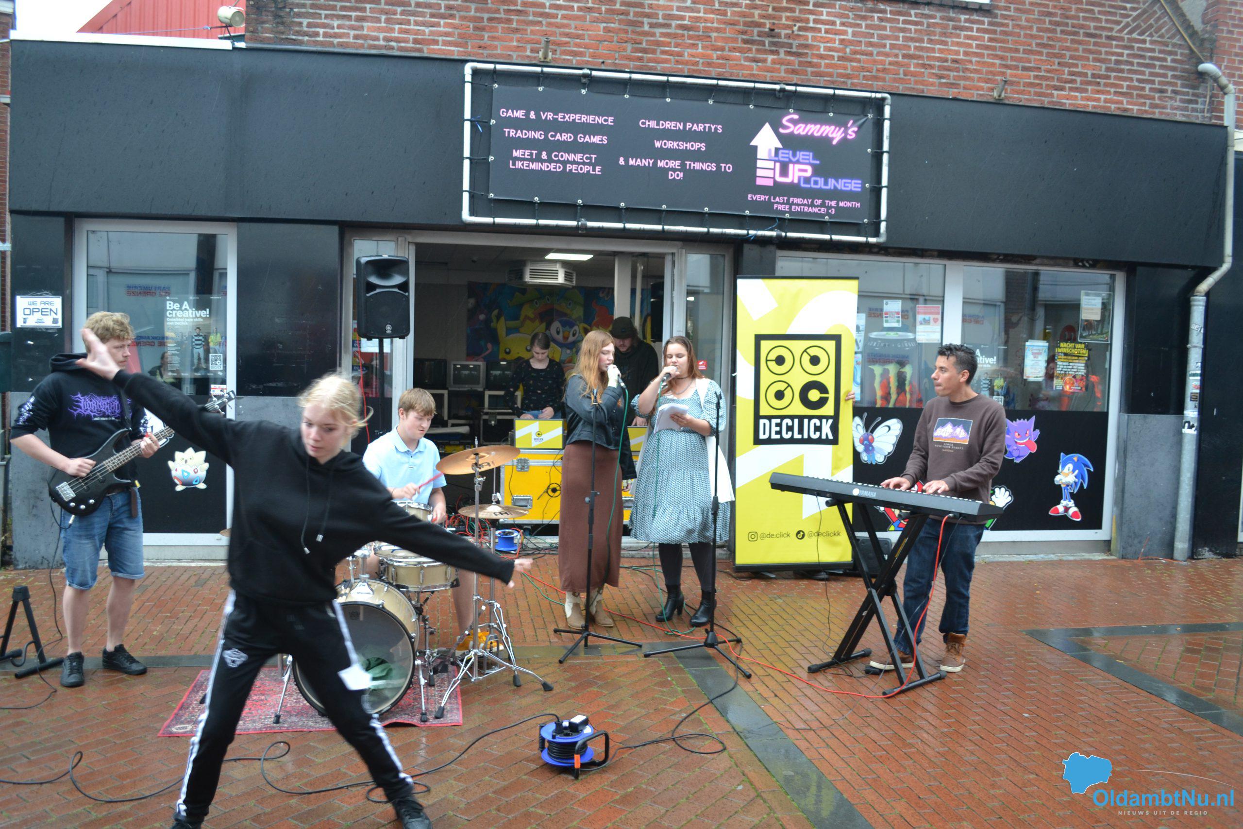 Winschoten – Net voordat de regen met bakken uit de lucht kwam vallen, was er gistermiddag in de Langestraat een ‘Flashmob’ vanuit Sammy’s Gameshop. Deze spontane act is gespeeld door deelnemers van DeClick.
