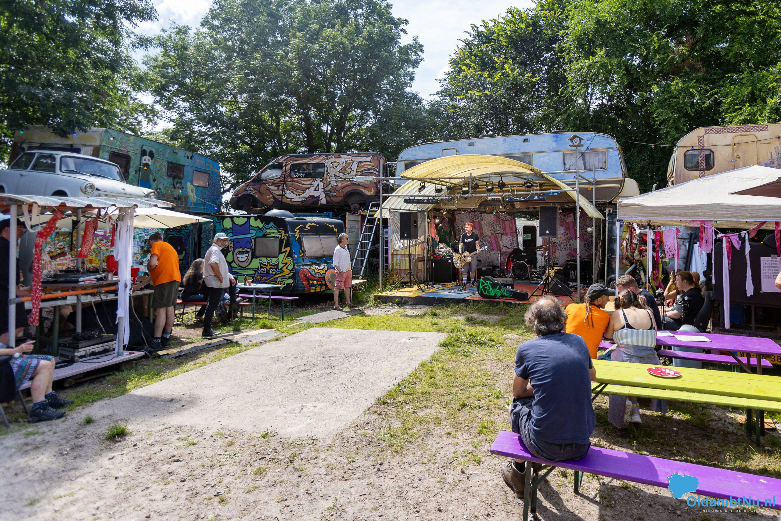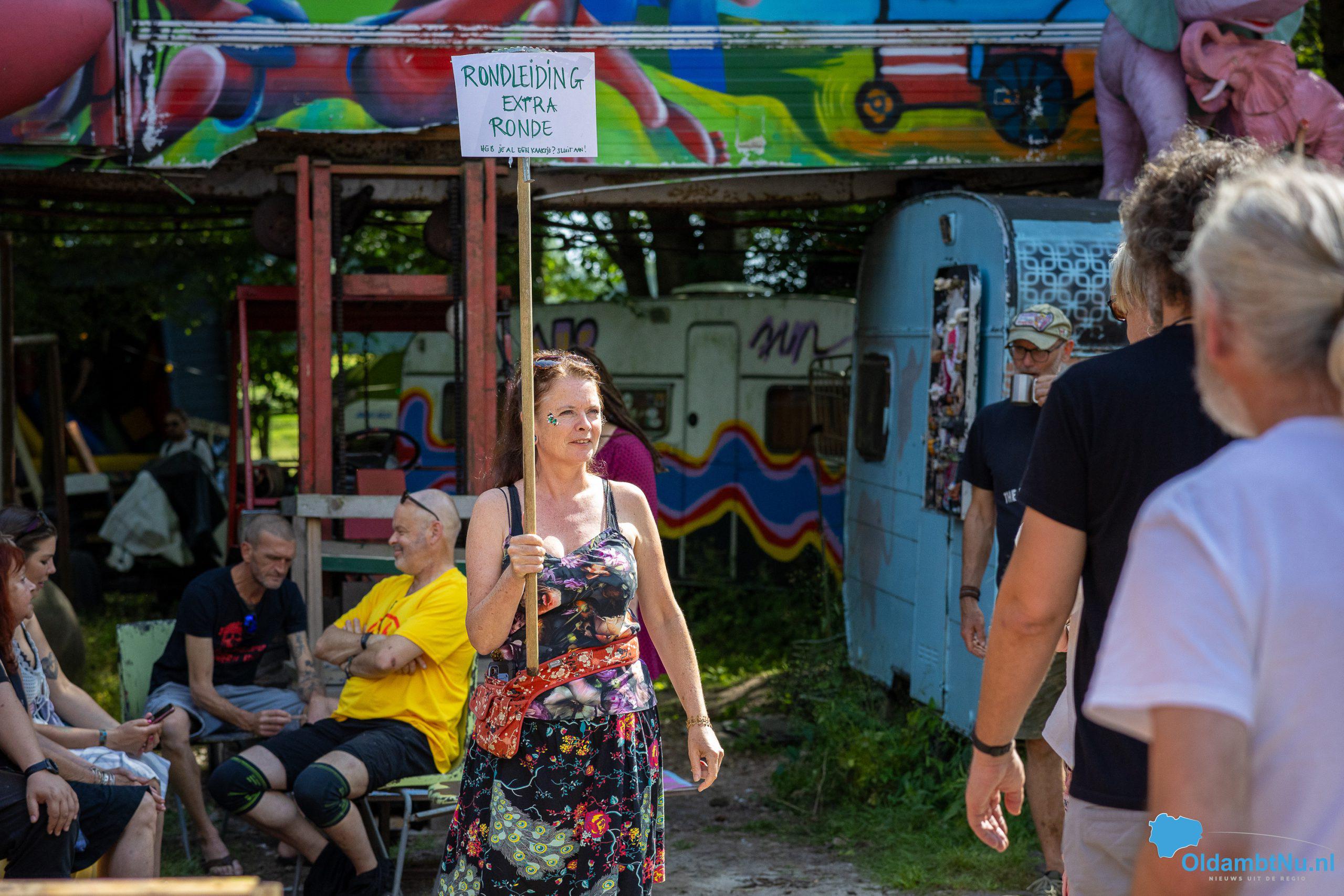 Op het terrein achter de boerderij vind je opgestapelde beschilderde caravans, vaak met een thema, een oud klein vliegtuig, een Trabant, een Connexion bus, eigenlijk te veel om allemaal te benoemen. Tijdens dit Zuiderveen Festival is natuurlijk ook aan de inwendige mens gedacht, met een kleine bar, voor frisdrank en alcoholische dranken. Ook voor een prima hamburger was er een uitstalling.