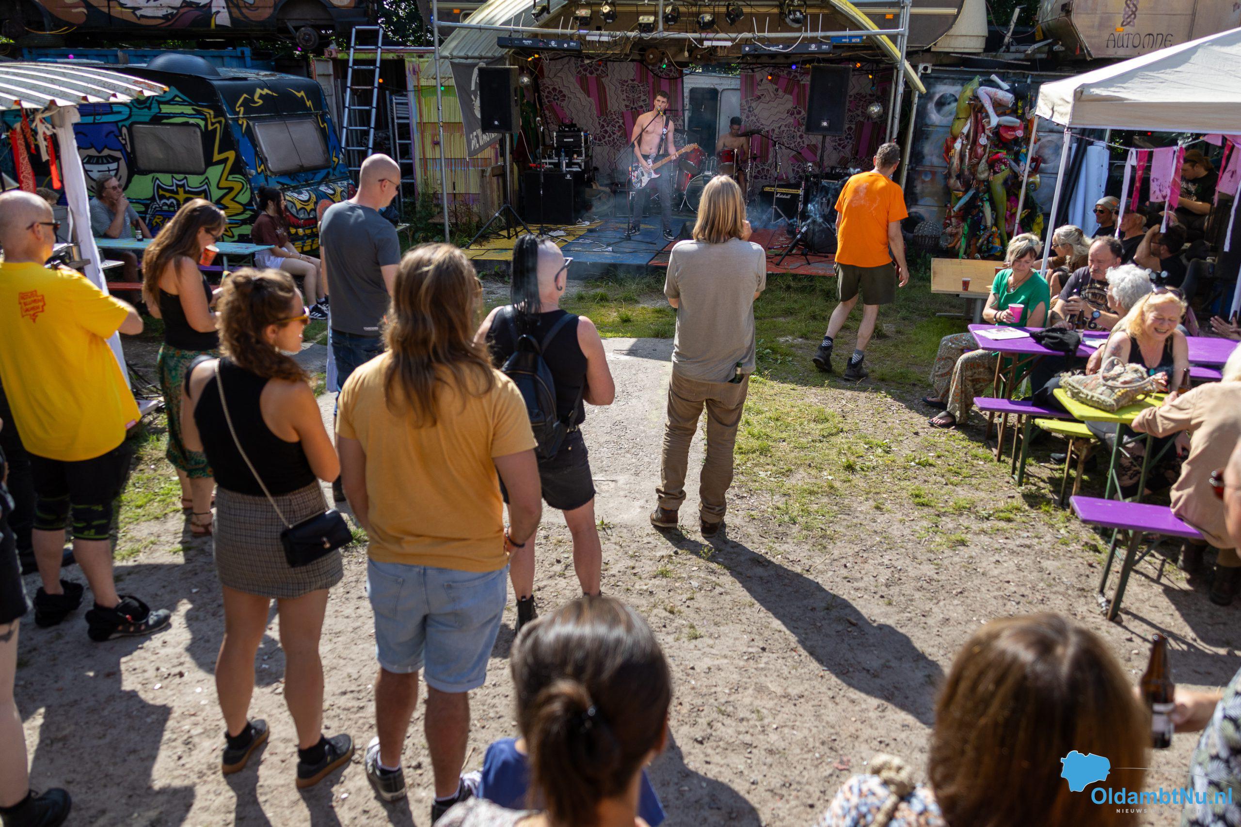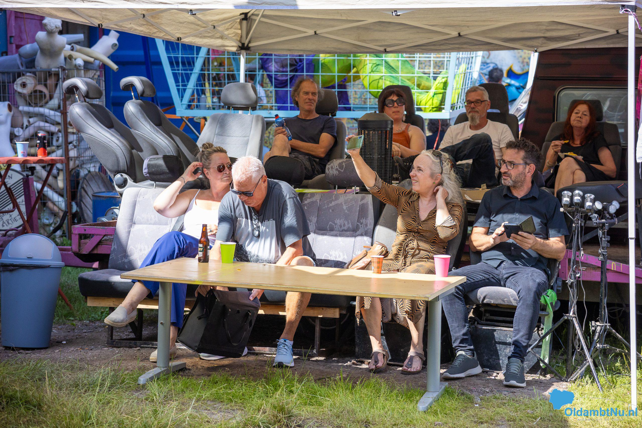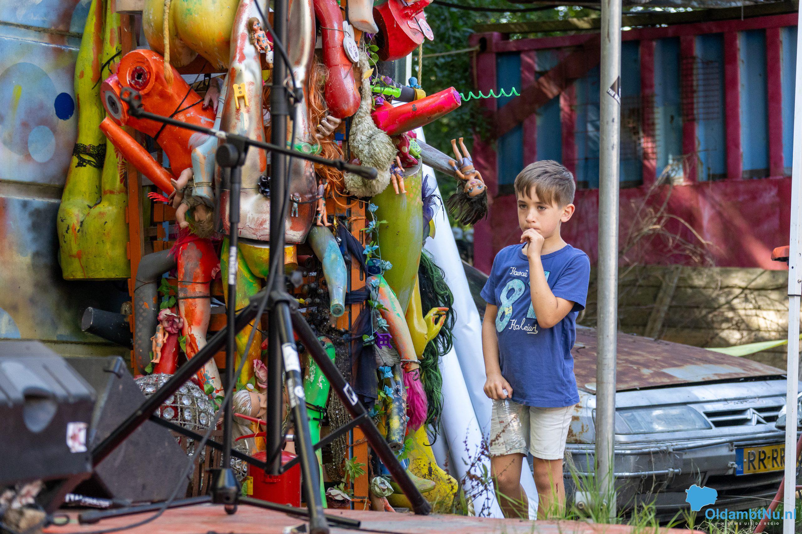 Zo’n 60 vrijwilligers heeft Pet om zich heen verzameld om nu al weer voor de 7e keer het Zuiderveen festival op poten te zetten. In eerste instantie denk je misschien als je het terrein op komt ‘wat een oude bende’, maar kort daarna ontdek je een wereld, waarin kunst en oude spullen samenkomen en waarin je je snel thuis voelt.