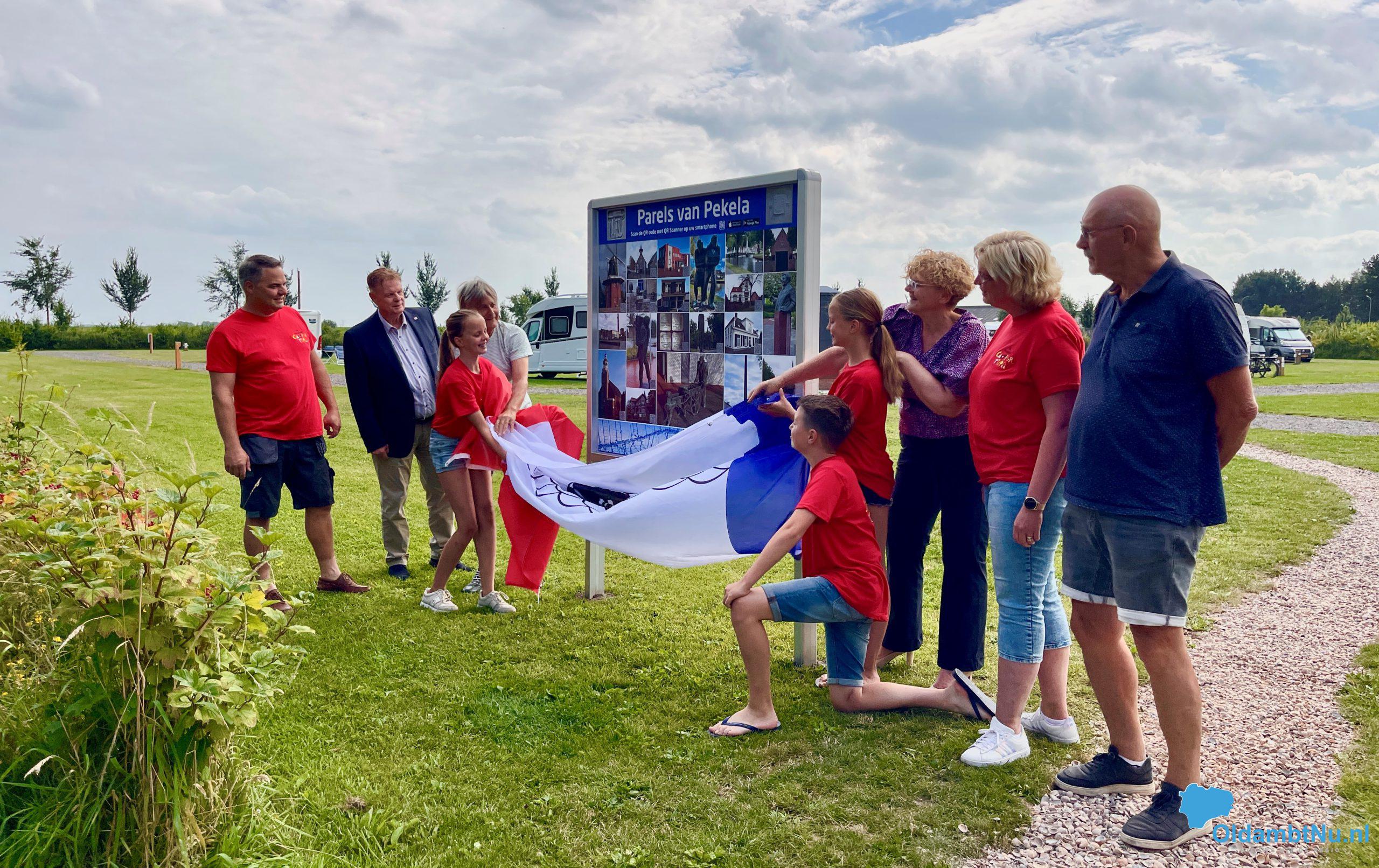 Het informatiebord werd onthuld door wethouders Ellen van Klaveren en Reiny Kuiper samen met de familie Woltjer van de Campertuin. De camperplaats is nog maar nauwelijks twee weken open maar nu al komen ze van heinde en verre naar Nieuwe Pekela. ‘Echt bijzonder’, vertelt Renate Woltjer. ‘Duitsland, België maar ook uit Noorwegen en Spanje. We hebben nog niet eens echt reclame gemaakt en nu staan er al zo’n vijf campers per dag. En allemaal vinden ze Pekela prachtig.’