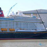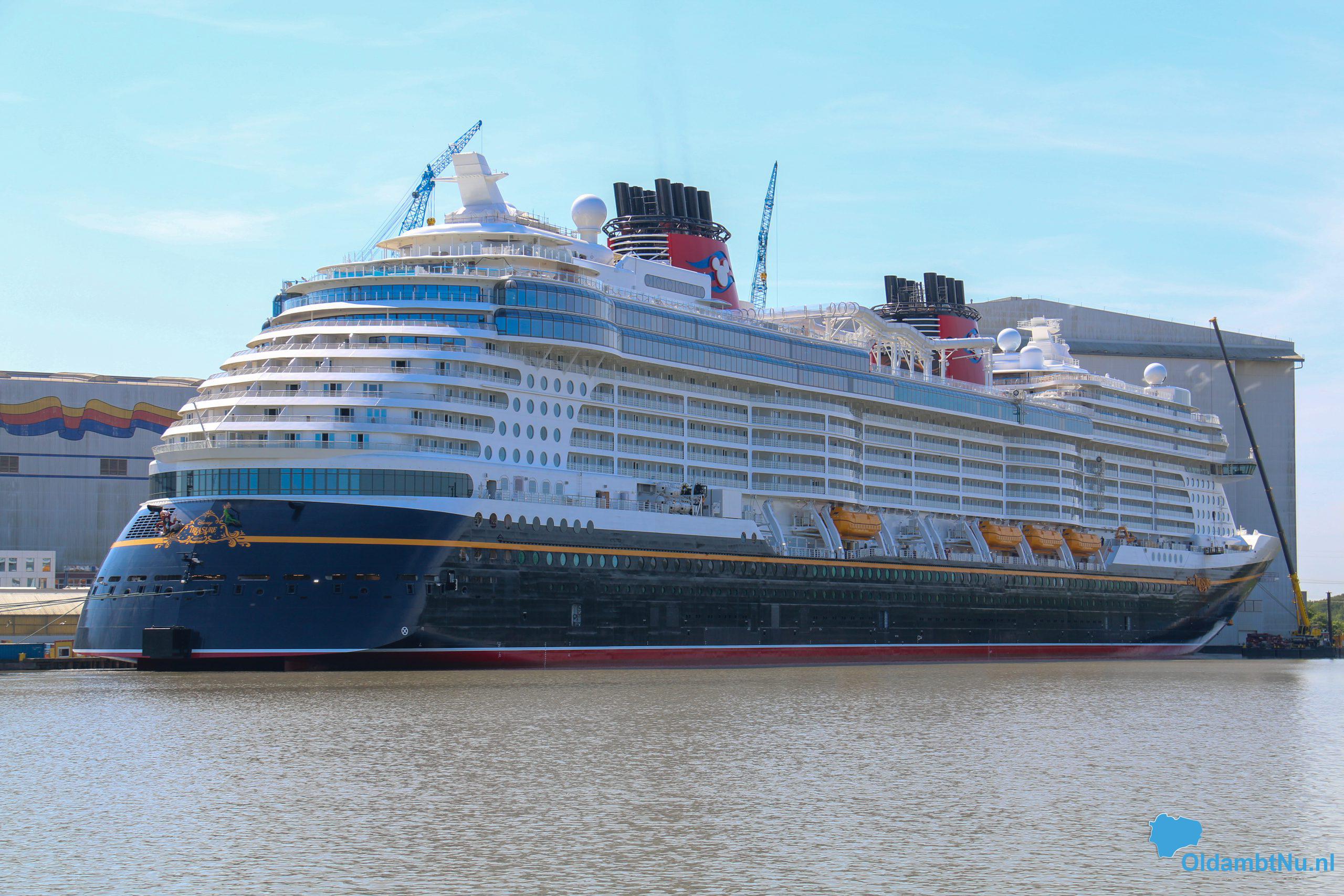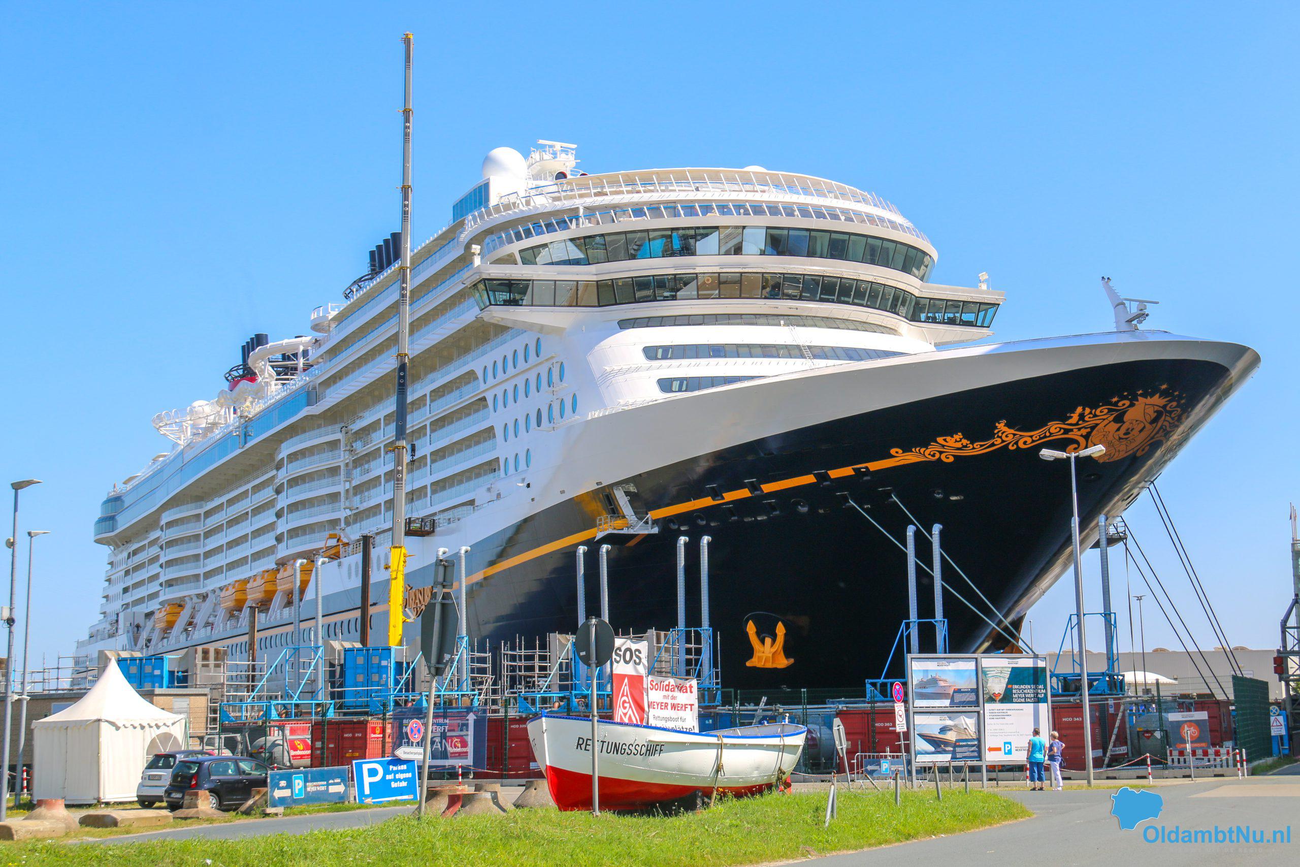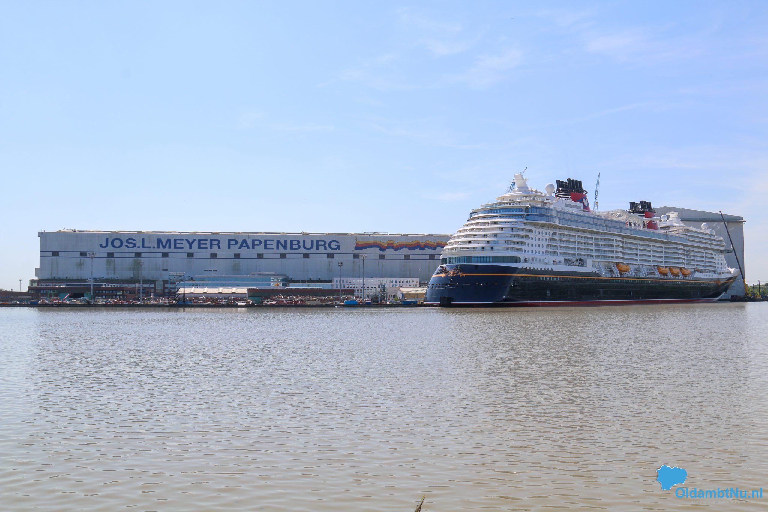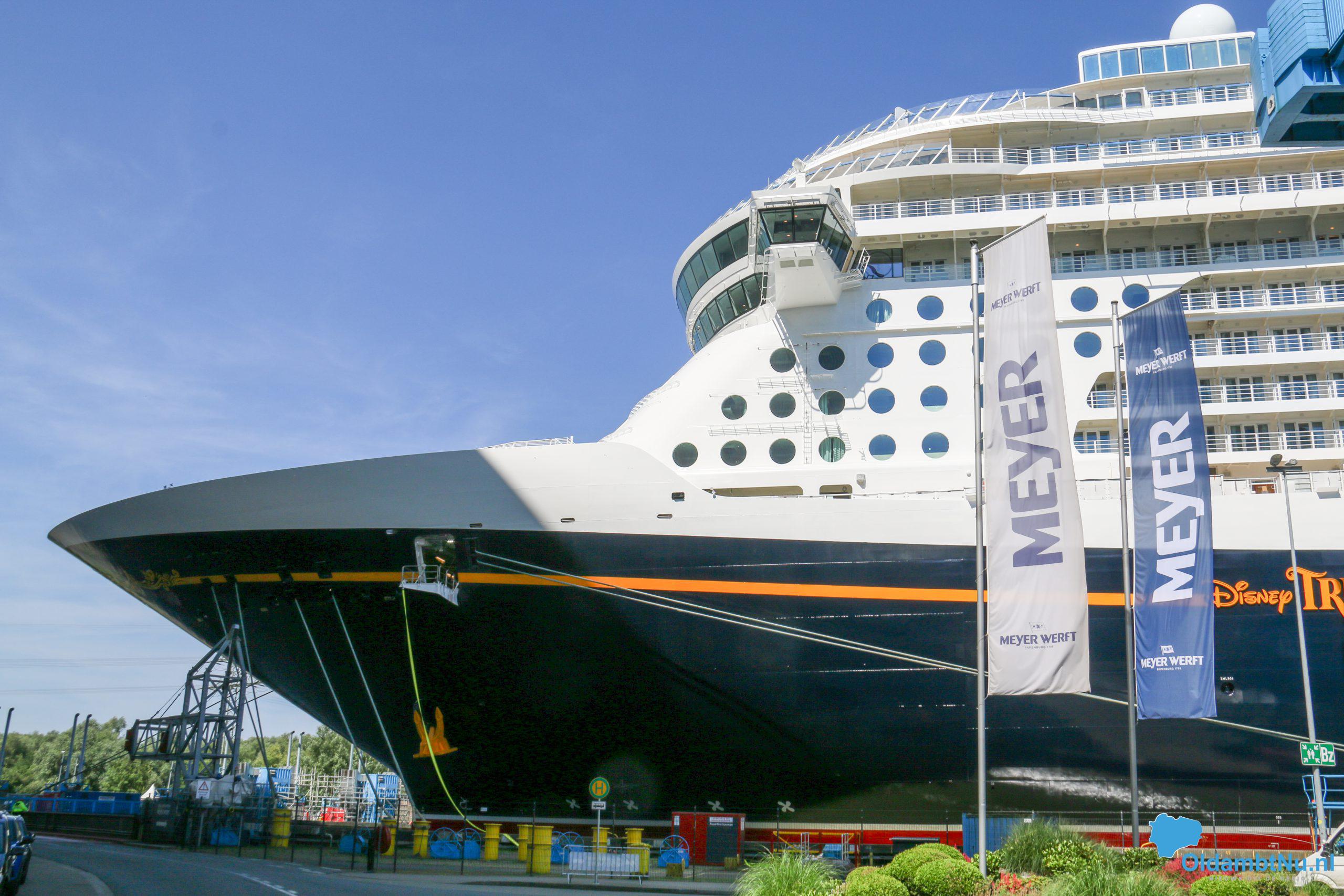 Papenburg – Afgelopen weekend is het nieuwe cruiseschip voor Disney Cruise Line, de Disney Treasure, uitgedokt op de scheepswerf Meyer Werft in Papenburg. Het nieuwe schip kwam met vuurwerk de enorme bouwloods uit waar Mickey het nieuwe schip stond op te wachten. Op het achtersteven van het schip zijn Kapitein Haak en Peter Pan te zien.