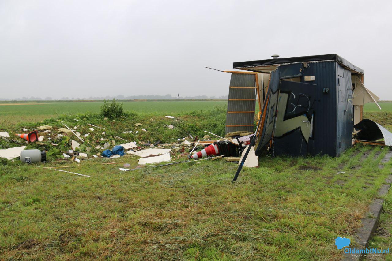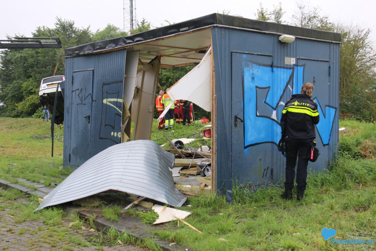 Auto rijdt door keet Marechaussee en belandt in sloot bij Bad Nieuweschans