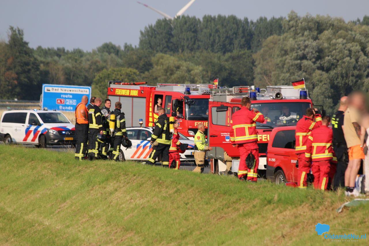 Brandweer Bunde en Bad Nieuweschans ingezet voor autobrand op de A7