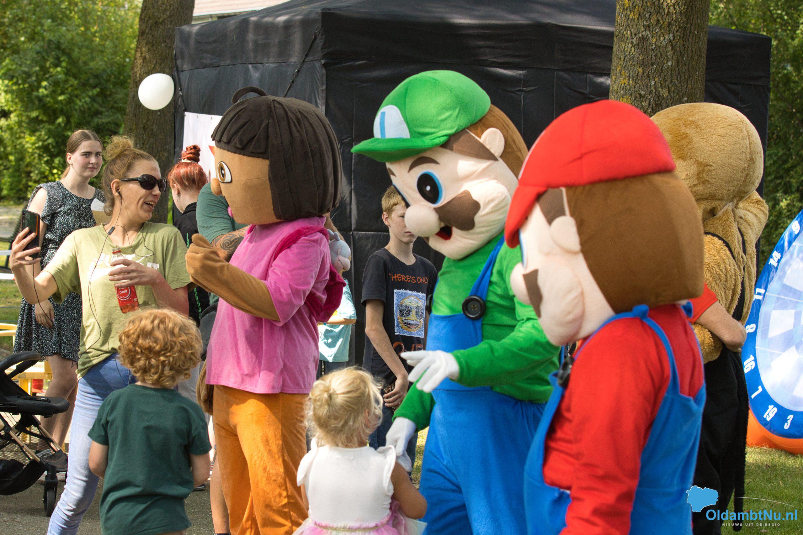 Het was een gezellige en vrolijke dag met tal van attracties. De kinderen werden getrakteerd op suikerspin en popcorn, konden zich laten schminken, sprongen uitbundig op het springkussen en ontmoetten hun favoriete karakters zoals Dora, Bink, Mario en Luigi.