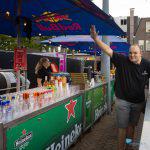 Het Marktplein was afgezet met grote schermen en via de goed beveiligde entree kon het publiek binnenkomen. Rondom waren diverse bars waar drinken kon worden gehaald tegen muntjes. En uiteraard waren er toiletten en was er een keurige EHBO post.