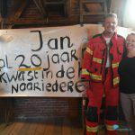 Met een uitzicht over het dorp werd Jan in de kerktoren gefeliciteerd met zijn dienstjaren. Bij de terugreis naar de kazerne werd een groot spandoek aan de tankautospuit bevestigd met de tekst: “Jan al 20 jaar met de kwast in de hand, naar iedere brand!” Dit was een verwijzing naar zijn dubbele rol als vrijwillige brandweerman en als schilder met zijn eigen bedrijf, Börchers Schilder- en Restauratiewerken.