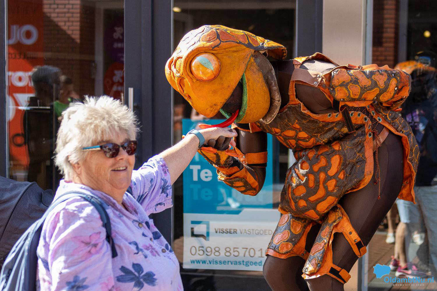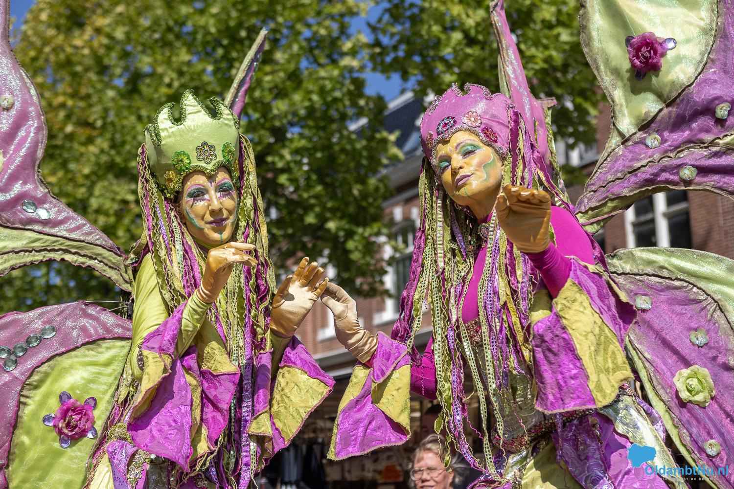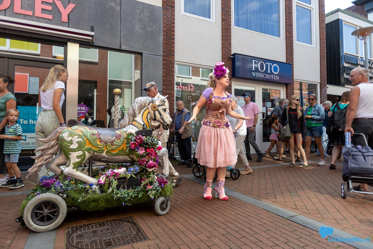 En vele 40-50 plussers herkenden direct de historisch bekende Citroën Ami 6. Deze oldtimer ging met een flinke dosis positivisme dansend, flirtend de confrontatie met het publiek aan. Ook de Blauwe Elfjes konden rekenen op een warm onthaal in een feestend Winschoten. Deze elfjes kwamen uit een magische wereld en zijn echte natuurbeschermers. Met hun betovering en liefdevolle aanwezigheid konden ze rekenen op de omarming van het publiek.