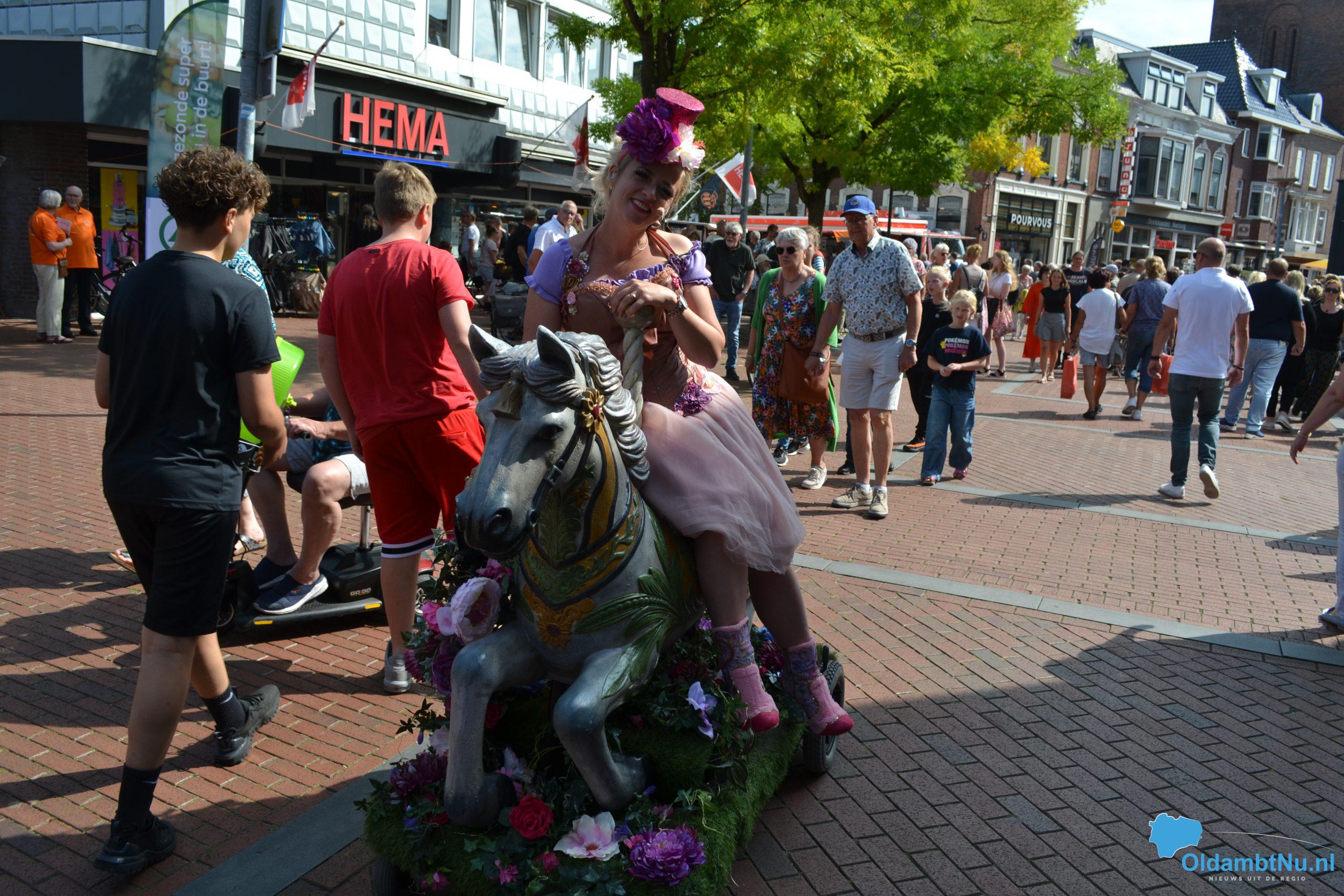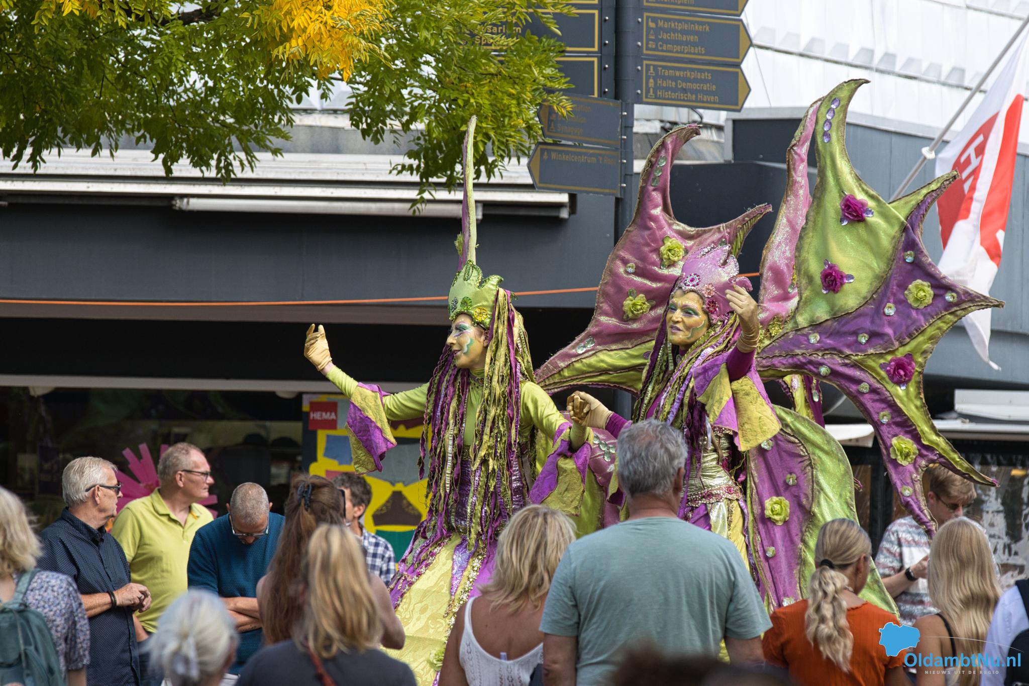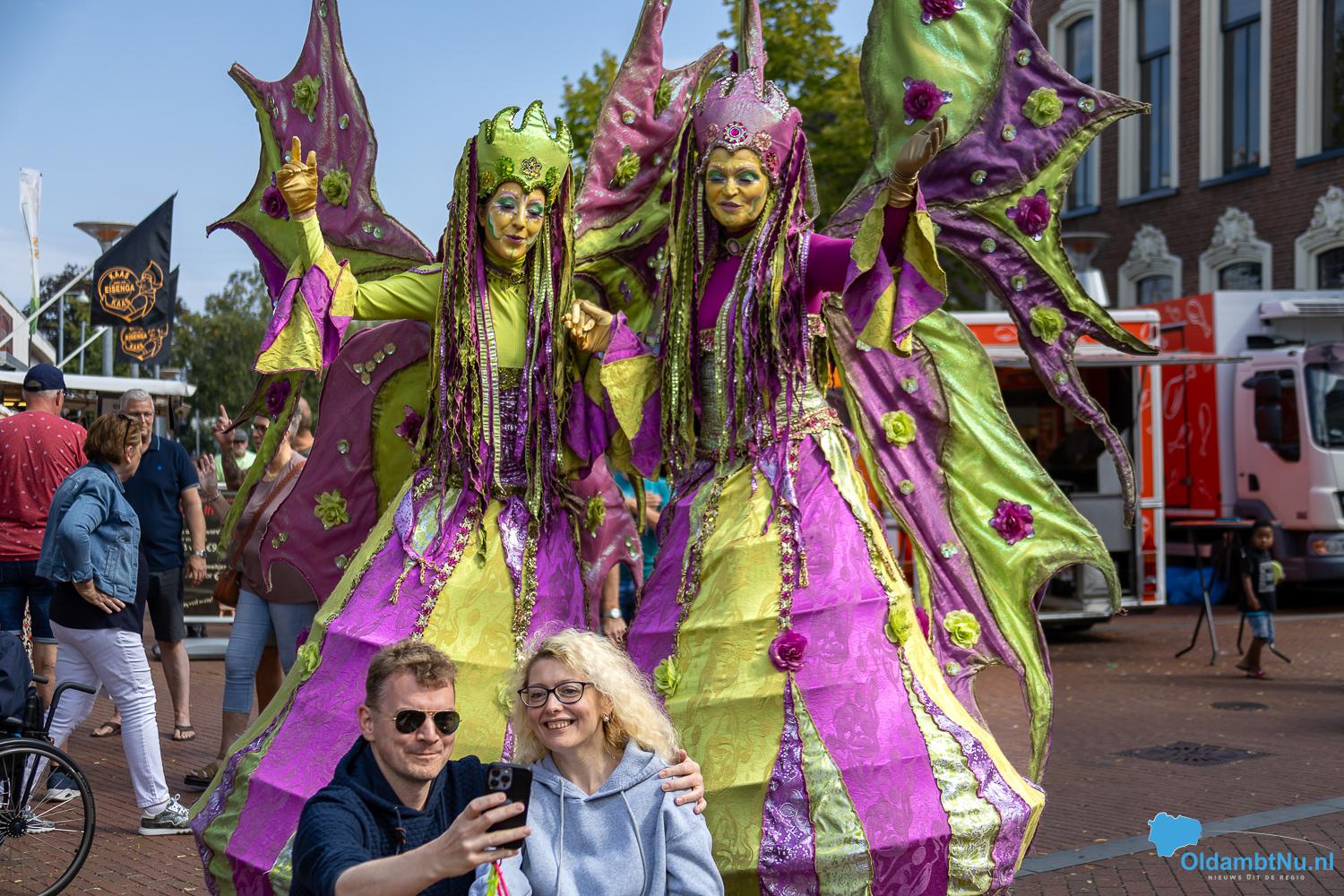 En vele 40-50 plussers herkenden direct de historisch bekende Citroën Ami 6. Deze oldtimer ging met een flinke dosis positivisme dansend, flirtend de confrontatie met het publiek aan. Ook de Blauwe Elfjes konden rekenen op een warm onthaal in een feestend Winschoten. Deze elfjes kwamen uit een magische wereld en zijn echte natuurbeschermers. Met hun betovering en liefdevolle aanwezigheid konden ze rekenen op de omarming van het publiek.