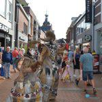 Ook het Kermispaardje met een schone dame die oudhollandse liedjes live voor het publiek zong, was een echte eyecatcher. Evenals de Kikkers die springend en kwakkend door de Langestraat trokken, konden rekenen op een grote aantrekkingskracht. Heel bijzonder waren ook de Giraffes. Met hun lange nek, die statig en onverstoorbaar voortschrijdend vredelievend door het publiek zijn gegaan.