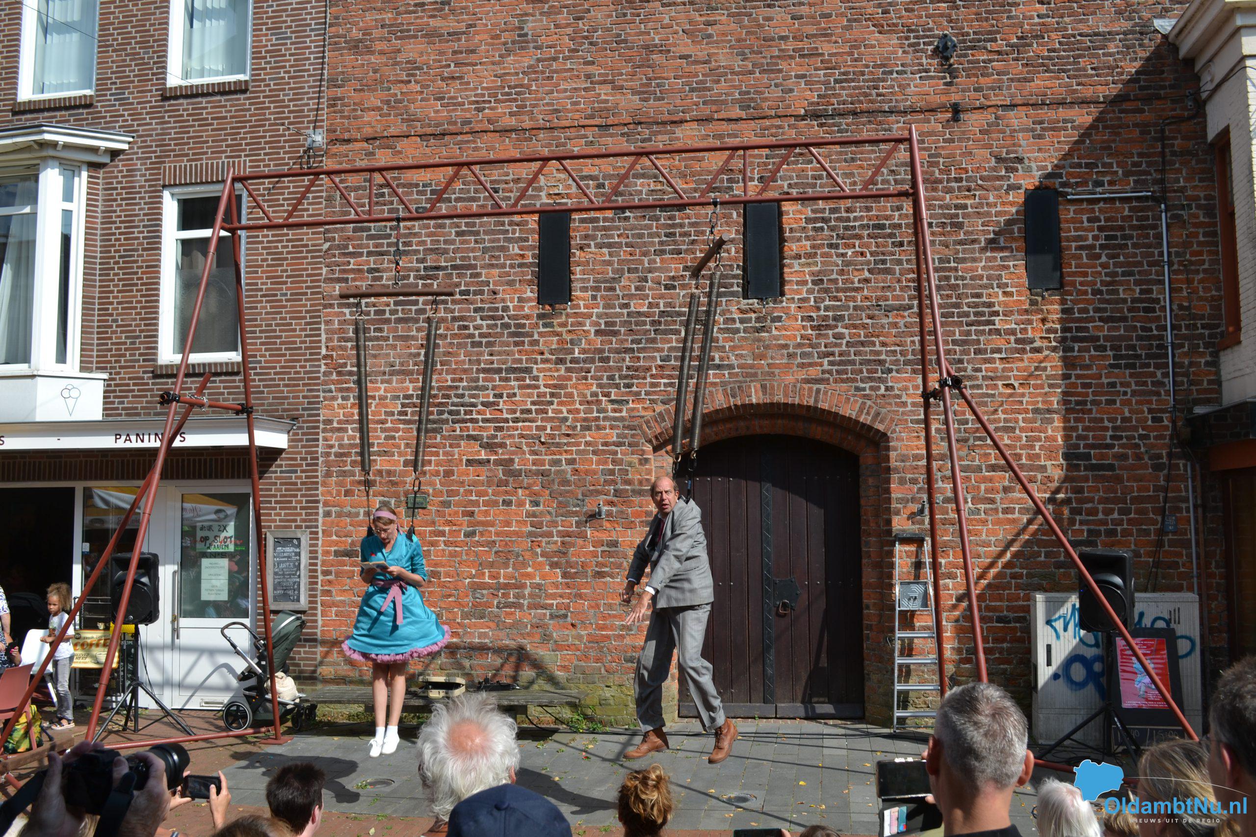 Winschoten – Onder een stralende zon was zaterdag de grote Waterbei dag. Met zoveel artiesten en attracties dat je veel moeite moest doen om ze allemaal te kunnen zien. Veel artiesten verplaatsten zich door de stad, als Nar en Harlekijn die tussen de mensenmassa een humoristisch en improvisatiespel speelden.