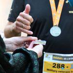 Visser overhandigde ook nog een speciale herinneringscoin, een soort herinneringsteken voor veteranen, aan burgemeester Cora-Yfke Sikkema. Ook alle lopers van de twee deelnemende veteranenteams krijgen na afloop deze coin.