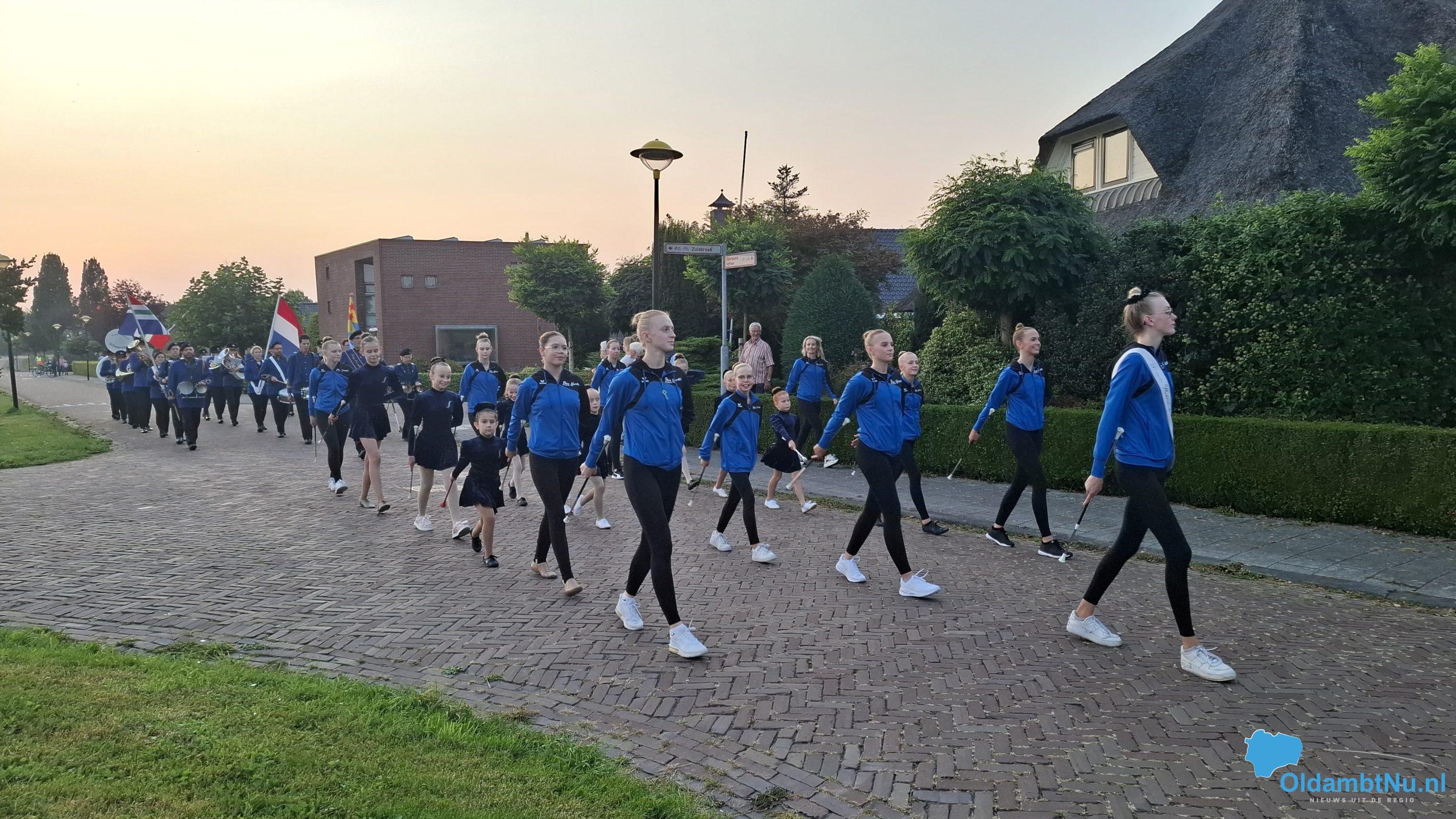 De muzikanten, met onder andere trompetten, trommels en bugels, zorgden voor een muzikale avond. De rondgang is inmiddels een vaste traditie geworden.
