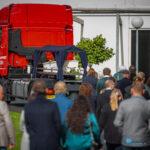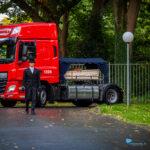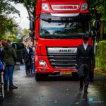De plechtigheid begon bij Eefting Uitvaartzorg, waar de kist op zijn vrachtwagen werd geplaatst. René werkte als chauffeur bij transportbedrijf Vredeveld uit Hoogersmilde.