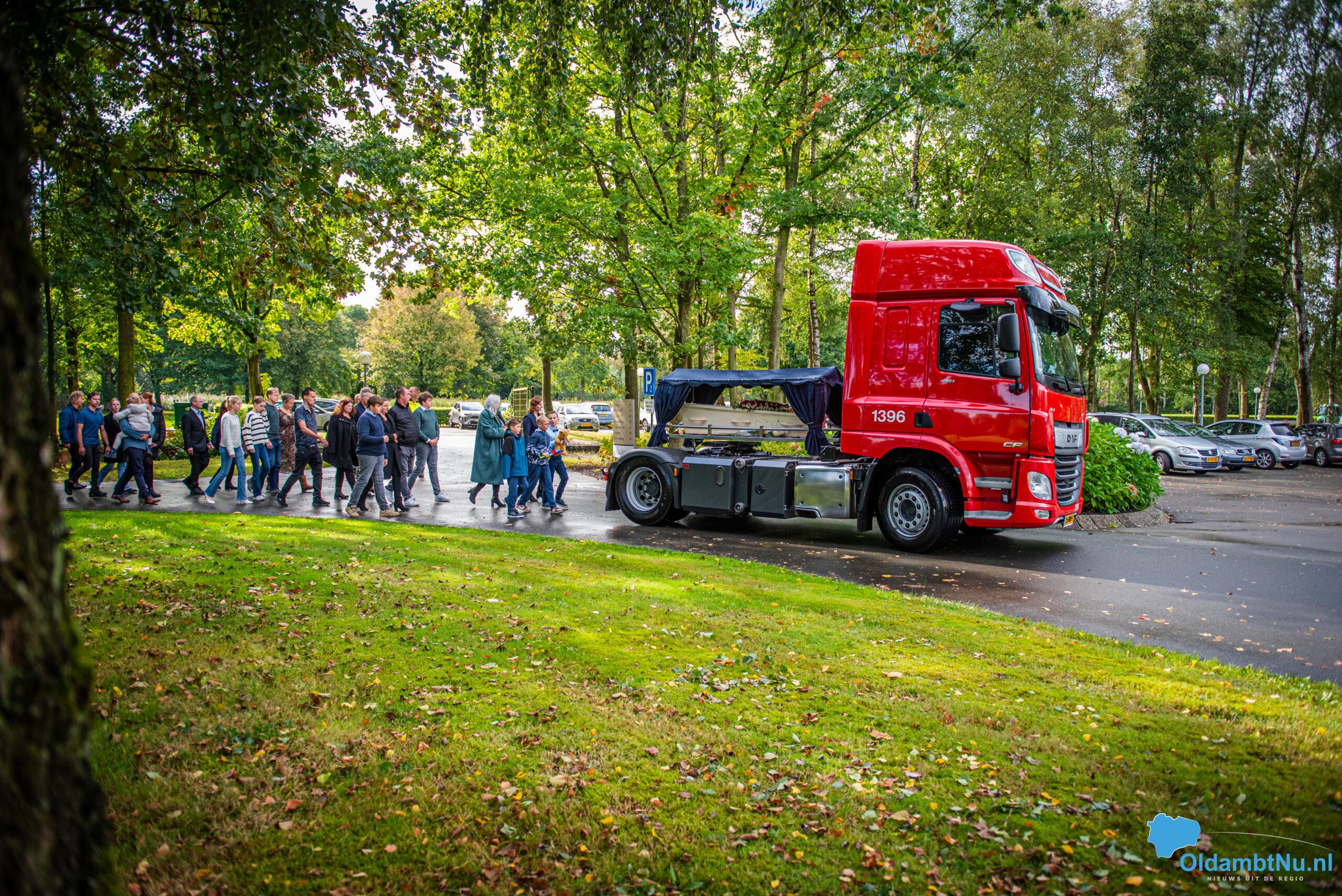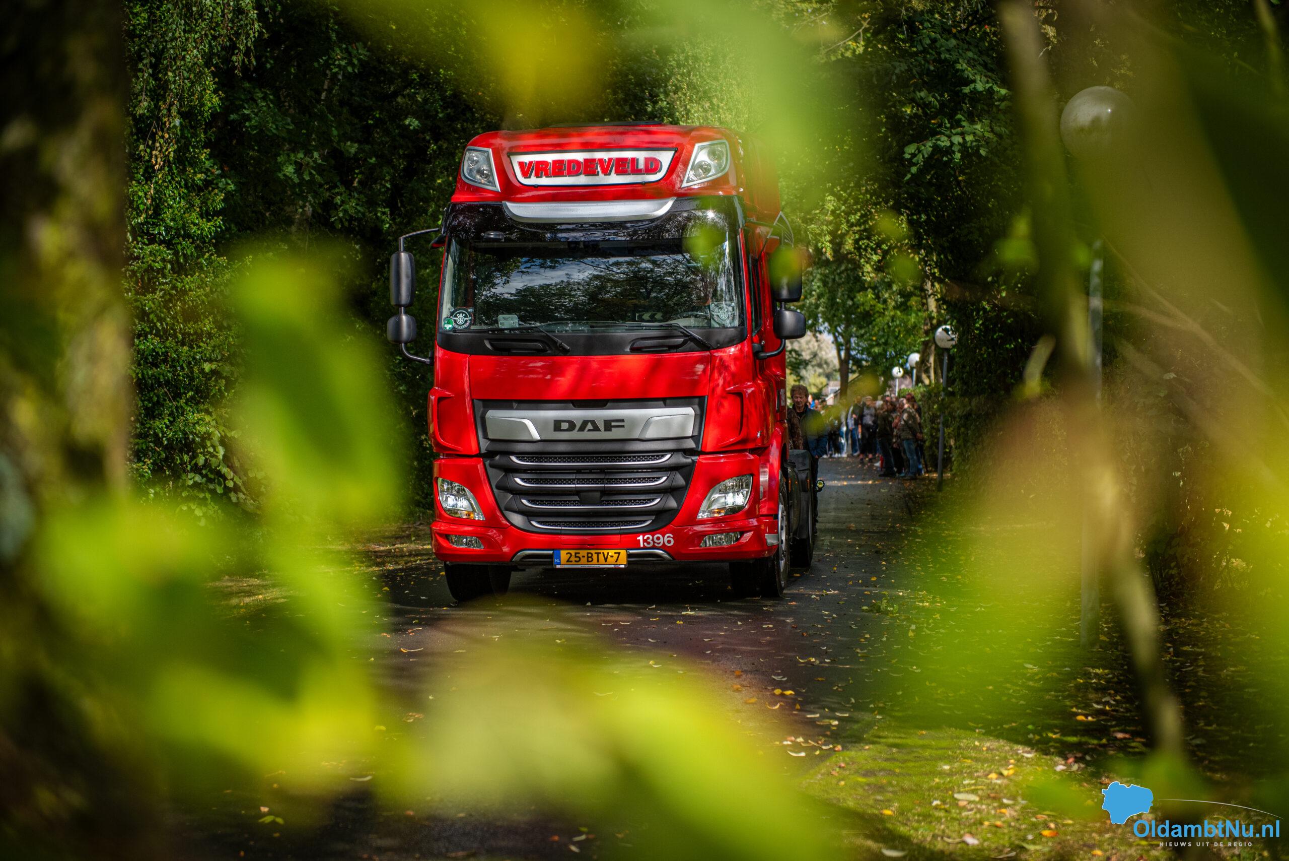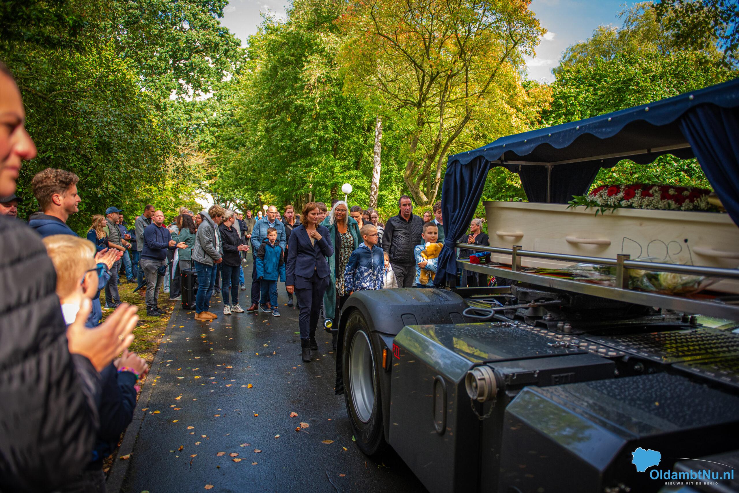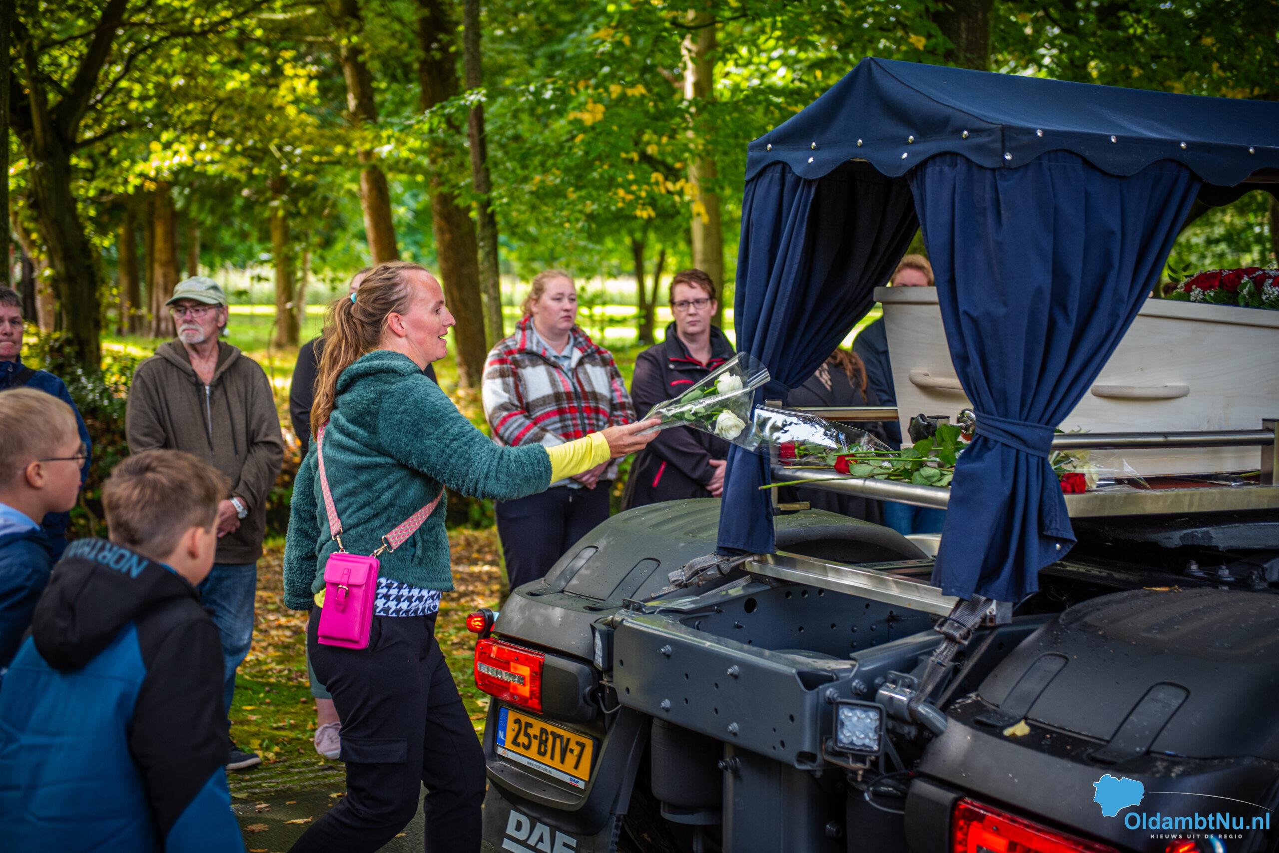 De plechtigheid begon bij Eefting Uitvaartzorg, waar de kist op zijn vrachtwagen werd geplaatst. René werkte als chauffeur bij transportbedrijf Vredeveld uit Hoogersmilde.