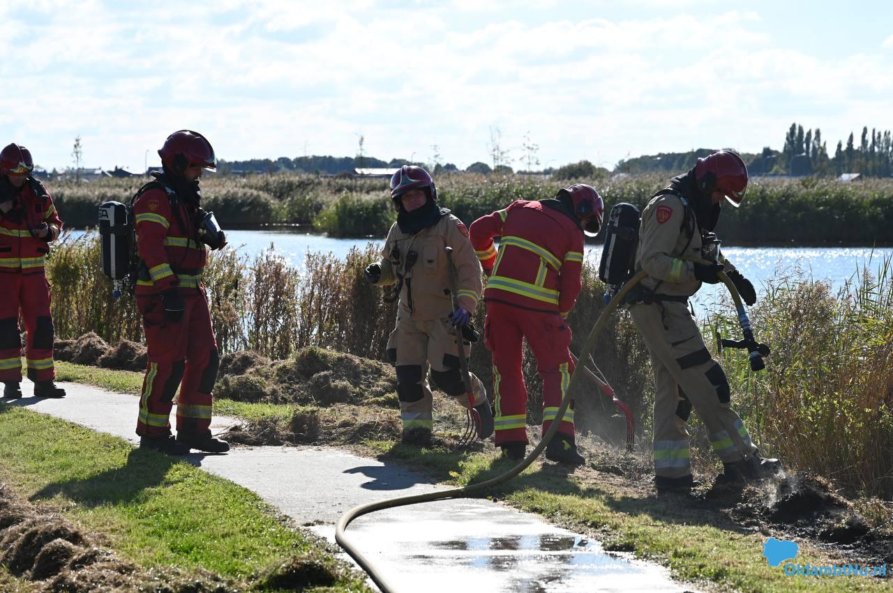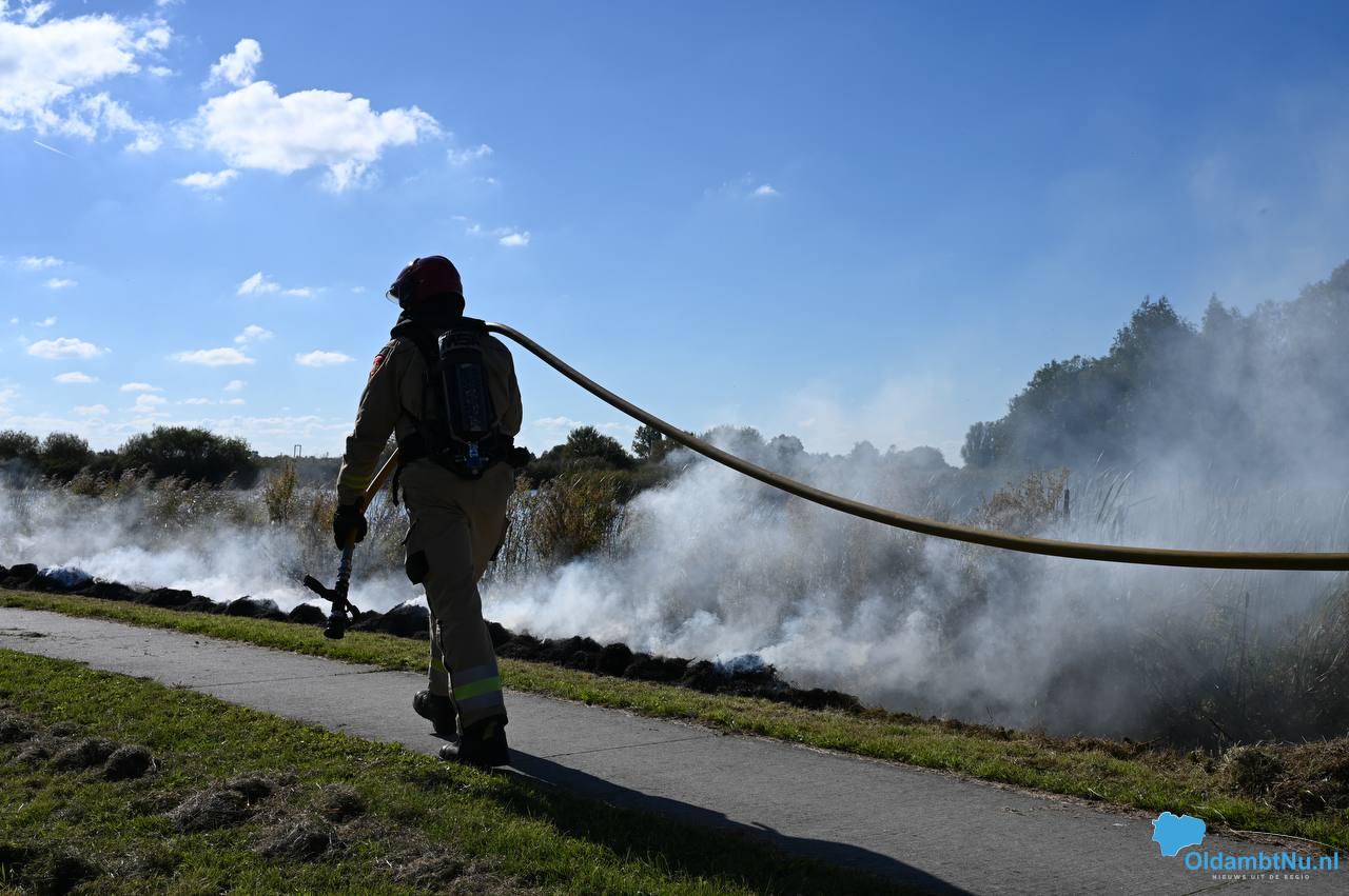 Oostwold – Zaterdagmiddag is langs het fietspad aan de Kromme Elleboog in Oostwold een bermbrand uitgebroken. De brandweer van Finsterwolde werd snel gealarmeerd en arriveerde snel ter plaatse om de vlammen te doven.