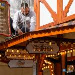 De geur van traditionele lekkernijen, zoals gebrande amandelen, bratwurst en Berliner donuts, vullen de lucht.