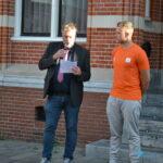Ondertussen was er in de Langestraat voor het gemeentehuis al een groep belangstellenden samen gekomen om stil te staan  bij deze Coming Out dag en dat de regenboog vlag gehesen zal worden. Top volleyballer Jeffrey Klok, spelend voor Nova Technology Lycurgus, was uitgenodigd om samen met wethouder Gert Engelkens iets te vertellen over hoe belangrijk de acceptatie is.