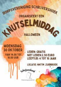 Op de woensdagmiddag 30 oktober organiseert het NNTTM samen met de dorpsvereniging ‘Schrijvershoek’ uit Zuidbroek een knutselmiddag met het thema ‘Halloween’ in het Museumcafé. Toegang tot de knutselmiddag is gratis voor leden van de dorpsvereniging (niet-leden betalen € 2,50). Het museum kan door kinderen deze maand sowieso gratis worden bezocht.