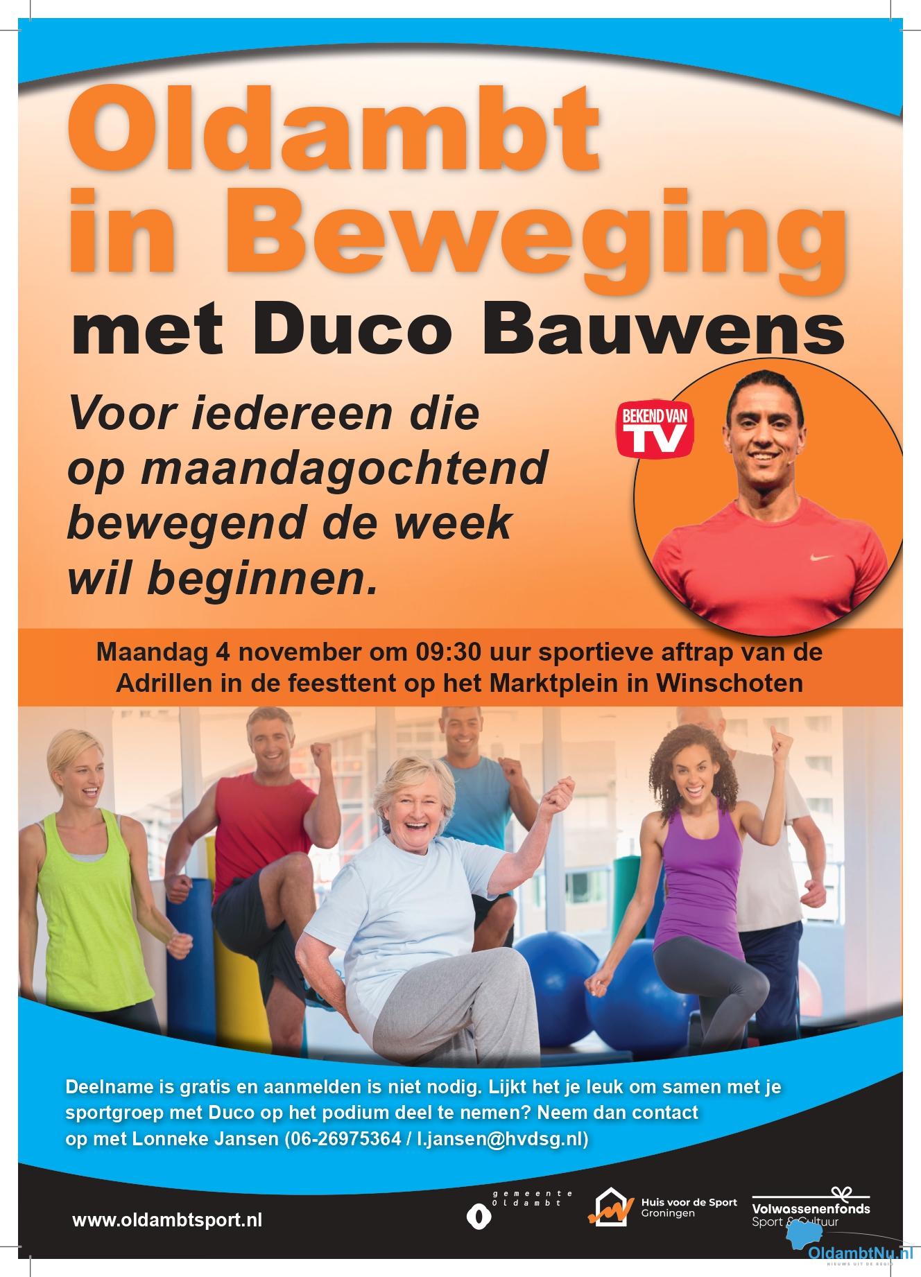 Voor iedereen die op maandagochtend bewegend de week wil beginnen, doe mee aan Oldambt in Beweging met Duco Bauwens. Duco is bekend van het landelijke tv-programma Nederland in Beweging.