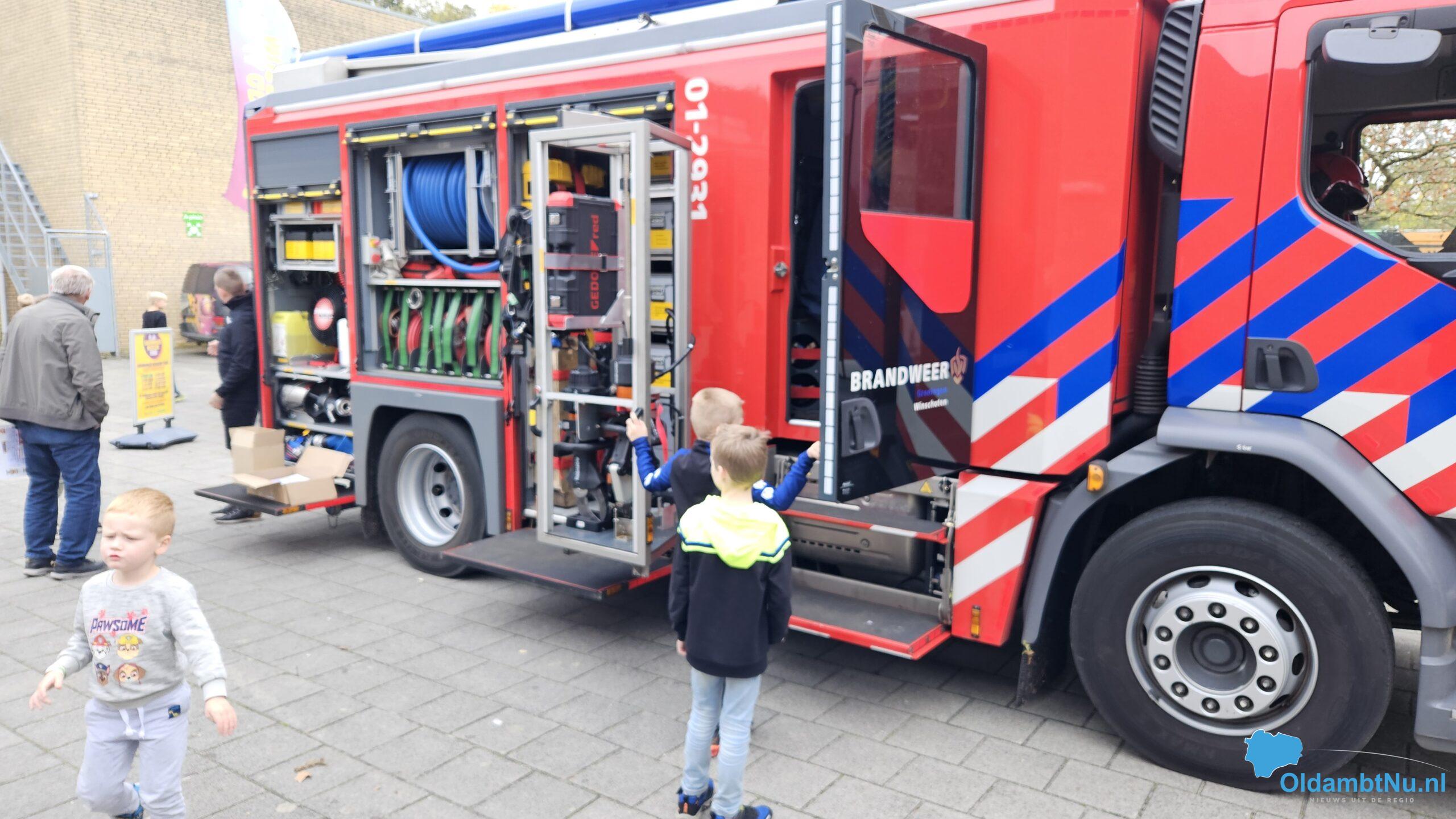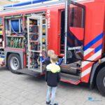 Gisteren was de politie te gast en vandaag konden kinderen een kijkje nemen hoe een brandweerauto er van binnen uitziet en kregen uitleg hoe de brandweer werkt.