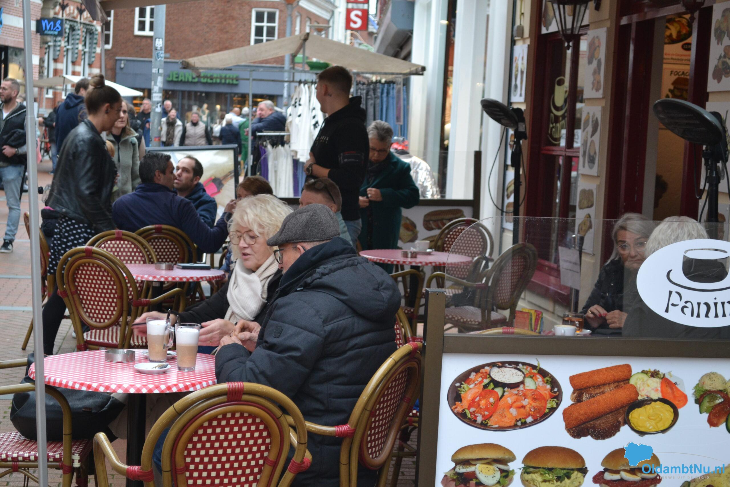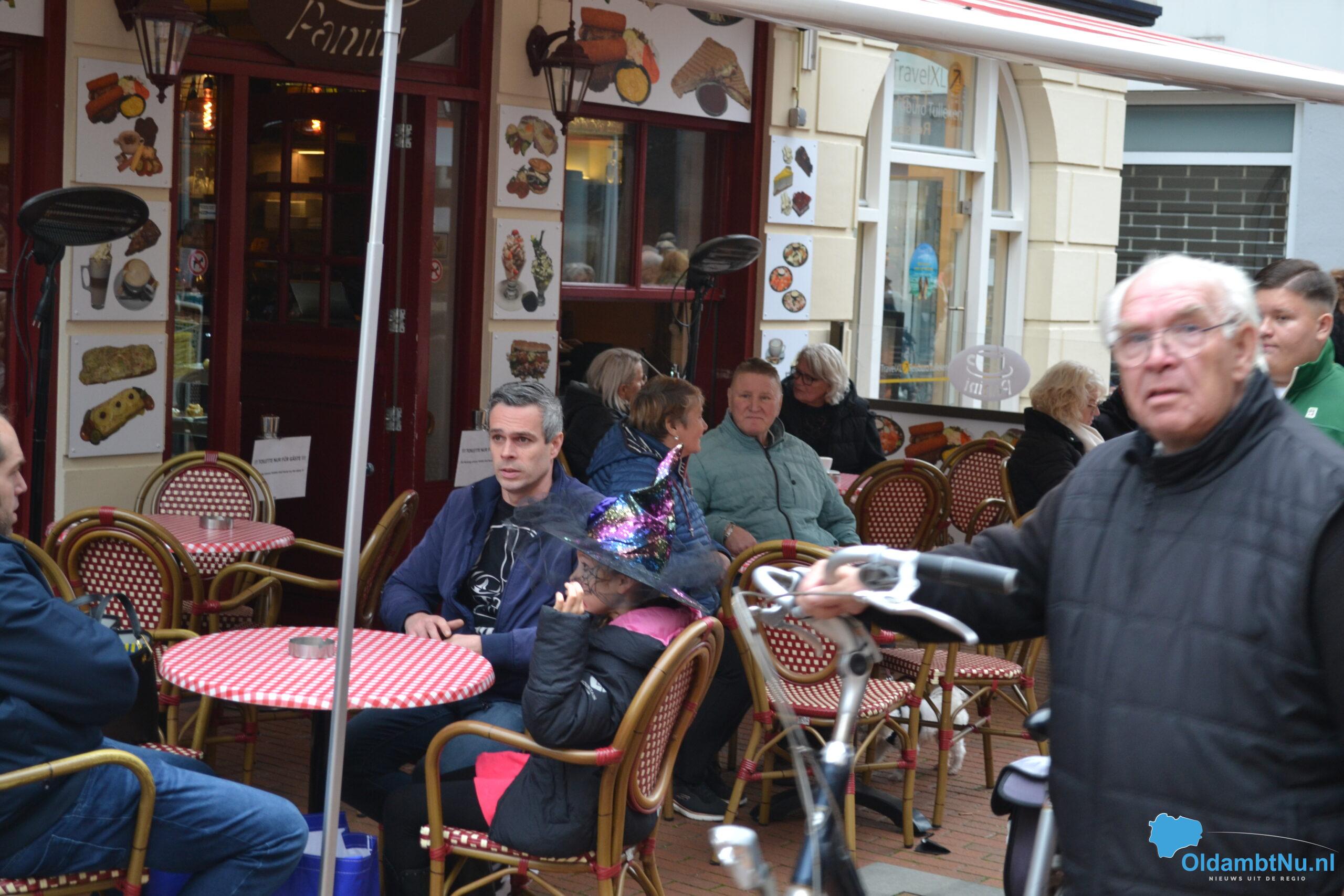 Maar waar het in Winschoten om ging was om lekker ontspannen te winkelen en te genieten van de terrassen. Ook Halloween liefhebbers kwamen aan hun trekken. Zo liep er door de Langestraat een club uit Leer, helemaal verkleed in Halloweer sfeer.