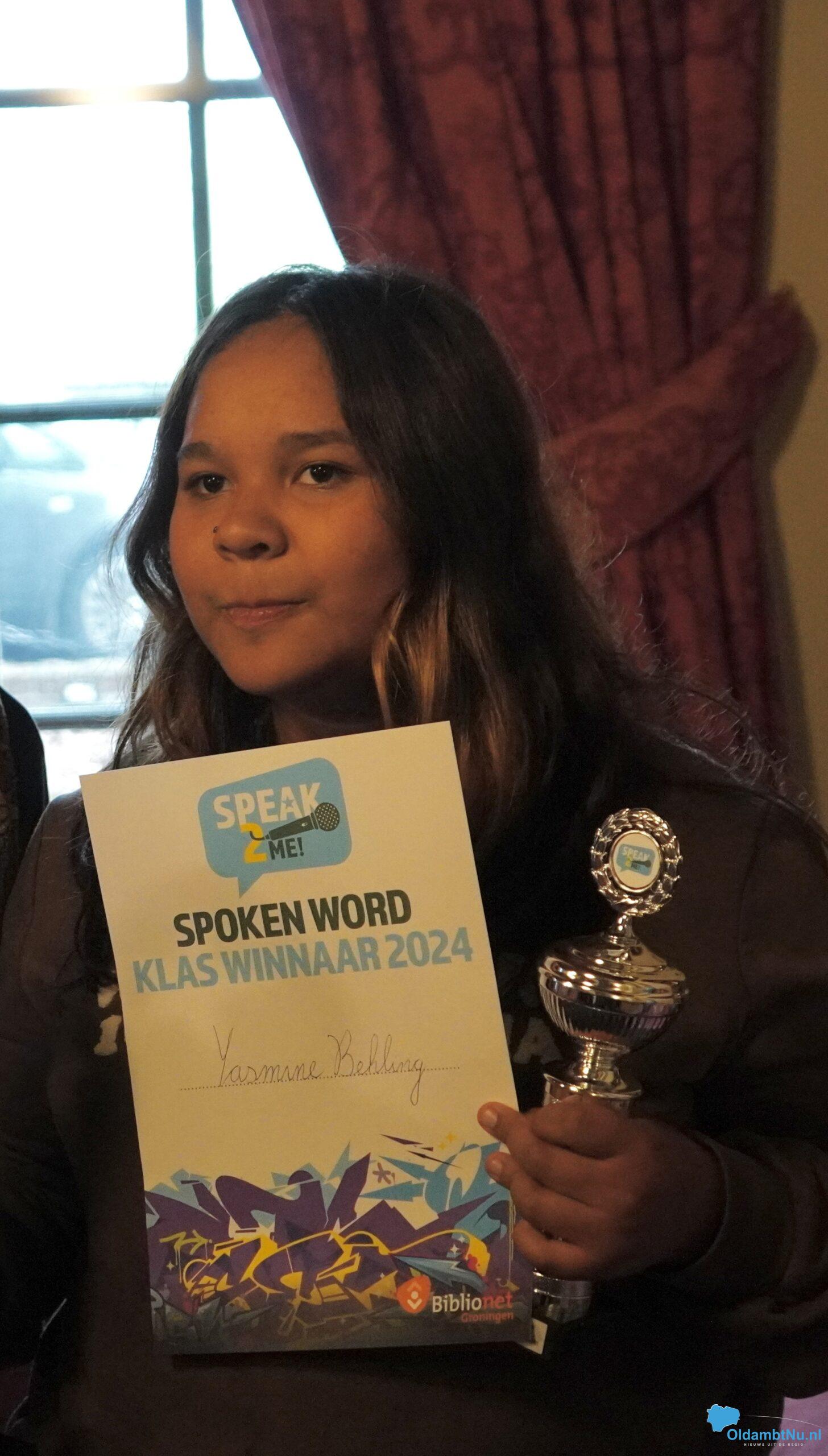 Speak2me, zoals het project heet, wordt ondersteund door De Versterking, Biblionet en Stichting Lezen. Vandaag, donderdag 7 november, werd de prestatie gevierd op school. Vestigingsdirecteur Arjen Rouw benadrukte dat leerlingen van het praktijkonderwijs niet alleen goed zijn met hun handen, maar ook met hun hoofd. ‘Voor een zaal met mensen je zelfgeschreven tekst performen is een ontzettende prestatie. En als je dan ook nog de beste bent van de provincie Groningen, is dat zeker een dubbeldik applaus waard!’