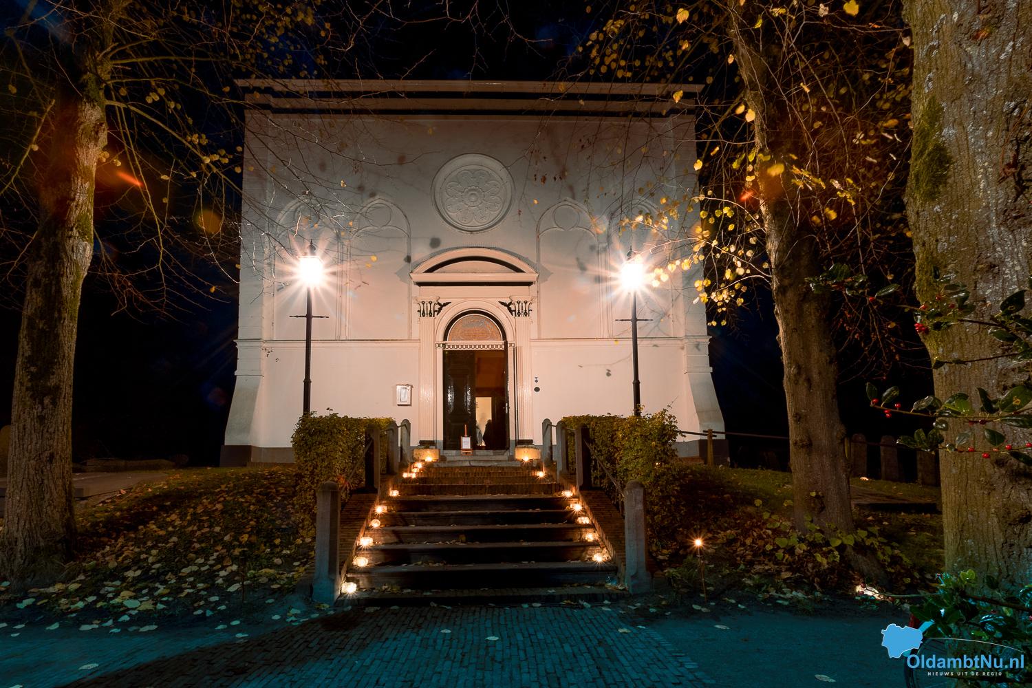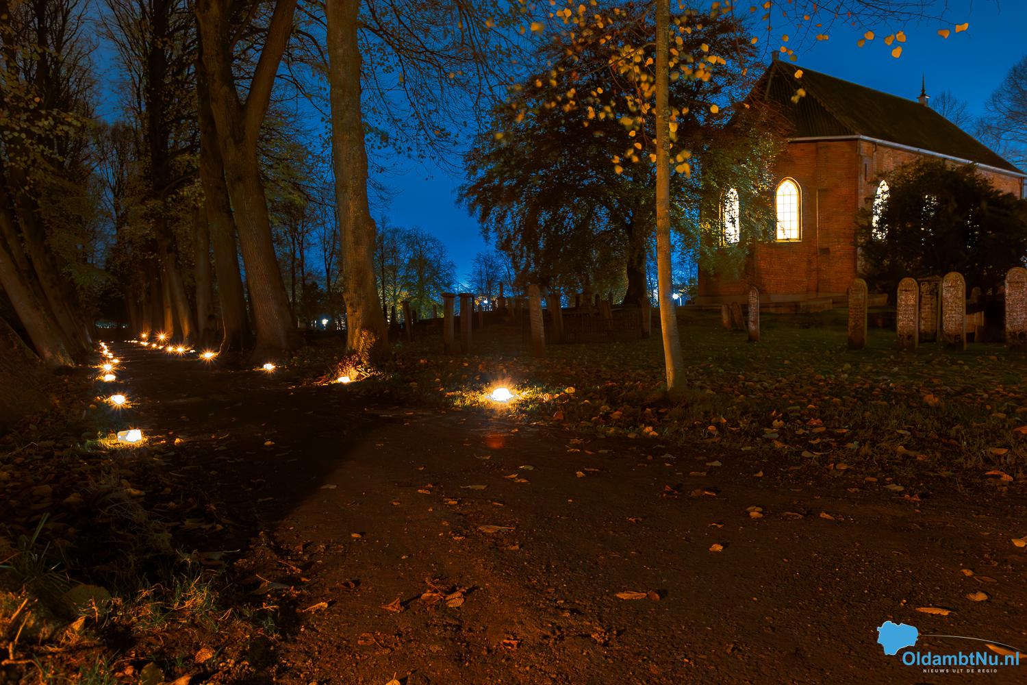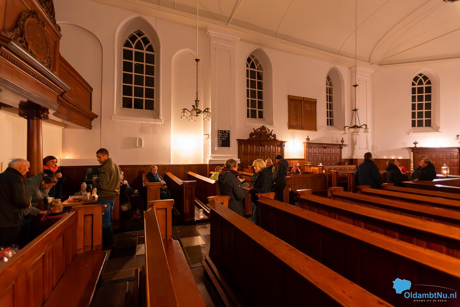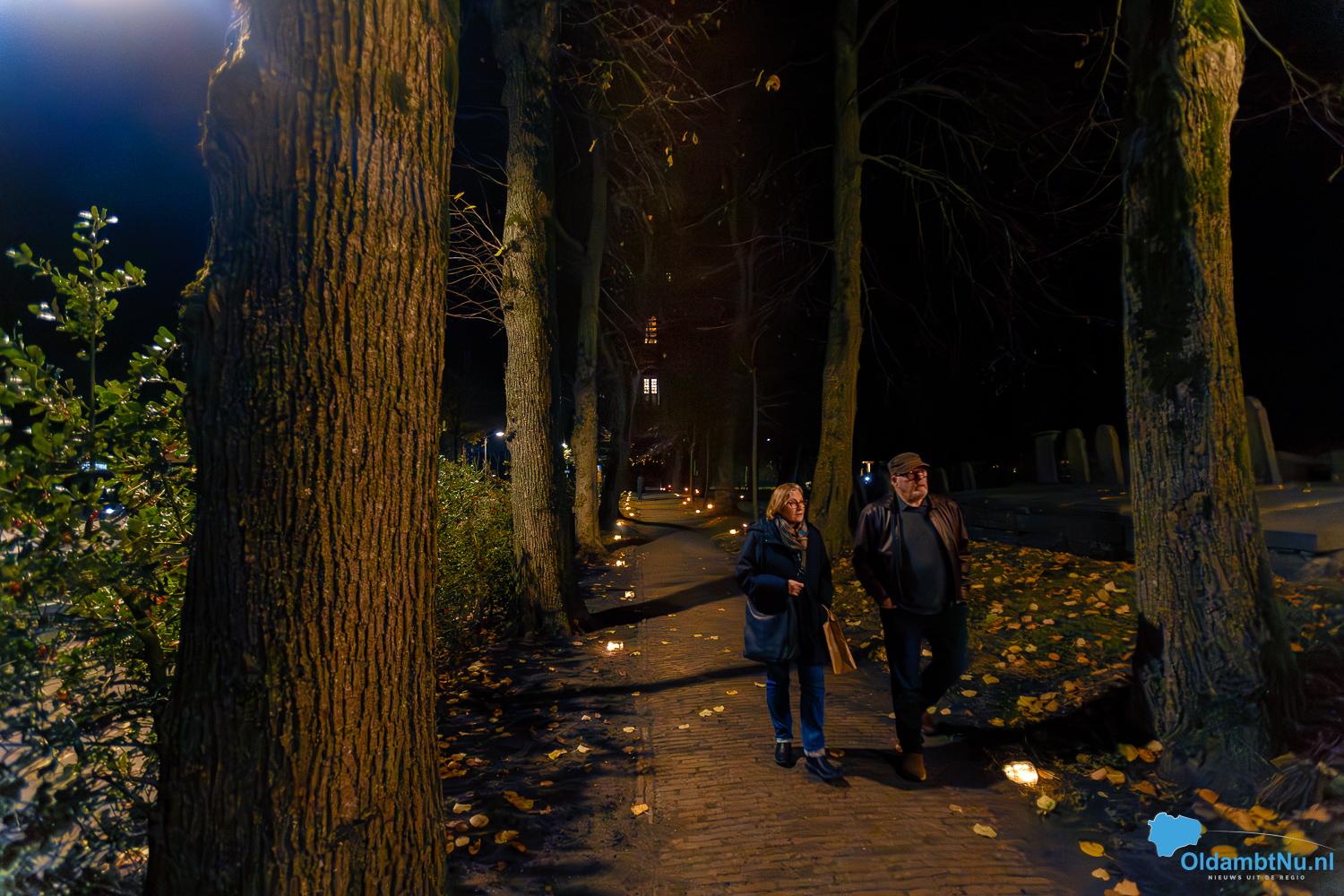 Meer dan 1000 lichtjes en 100 fakkels rondom de kerk, bij de toren en op de begraafplaats en twee grote branders bij het hek aan de Hoofdweg verlichtten het terrein sfeervol. “We vinden het fijn dat de kerk toegankelijk is voor iedereen,” vertelt Titia Schillhorst van Veen van de werkgroep. “Tijdens de Lichtjesavond kan iedereen die iemand mist, even op een speciale manier en op een prachtige plek, denken aan hen die er niet meer zijn.” In de kerk was er voor de bezoekers een lekkere kop koffie of thee.