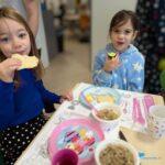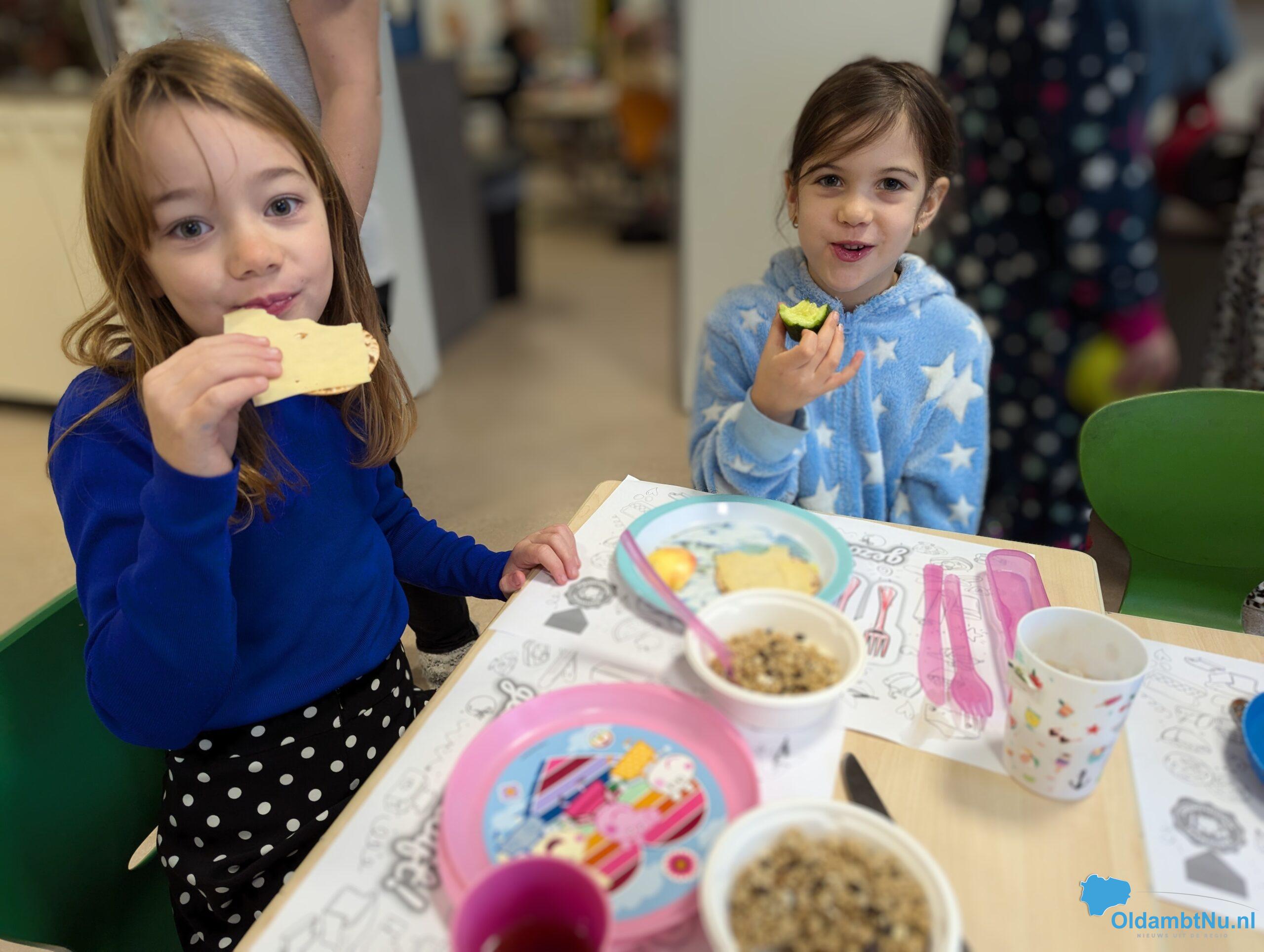 Jonge en oudere kinderen zaten naast elkaar aan tafel en hielpen elkaar met een broodje smeren, het inschenken van drinken, het maken van een bakje yoghurt of het snijden van het fruit. Daarna kon er heerlijk gesmuld worden van een gezond ontbijt. Zo’n feestelijk ontbijt gaf positieve energie voor de rest van de schooldag!