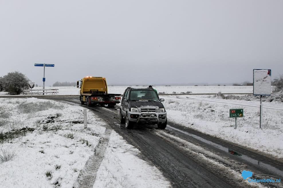 Oudeschans – Op de afrit van de A7 bij Oudeschans is vanmiddag een auto van de weg geraakt en in een greppel tot stilstand gekomen.